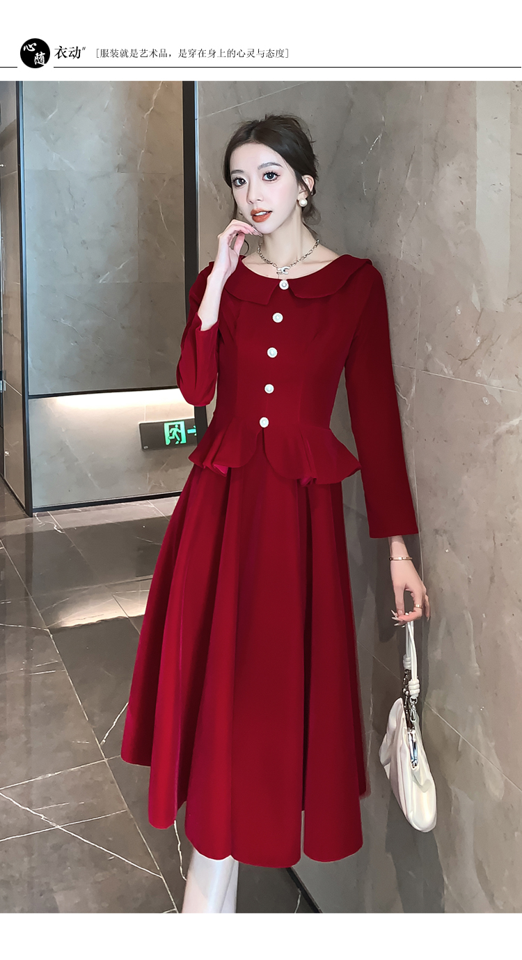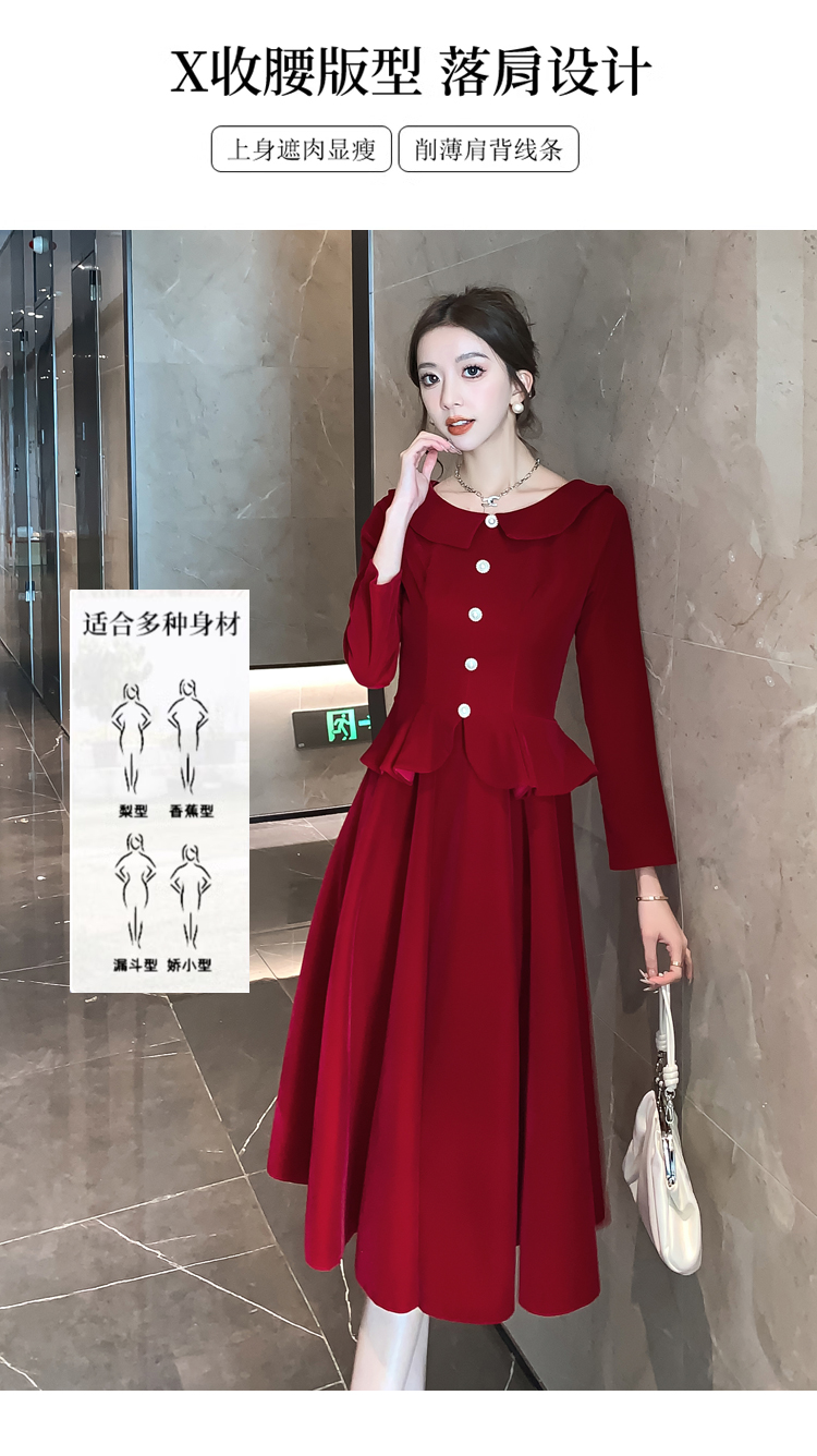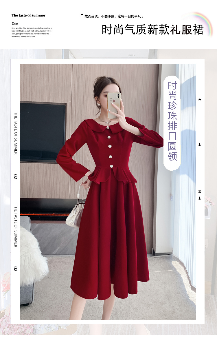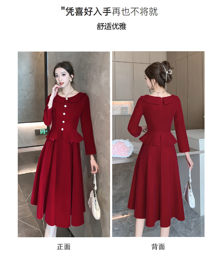 RM25876#长袖敬酒服新娘小个子2023新款秋冬季红色订婚礼服连衣裙回门