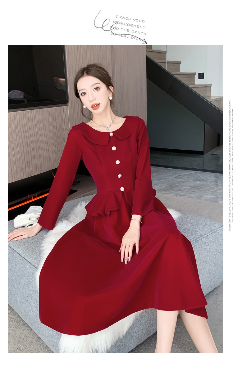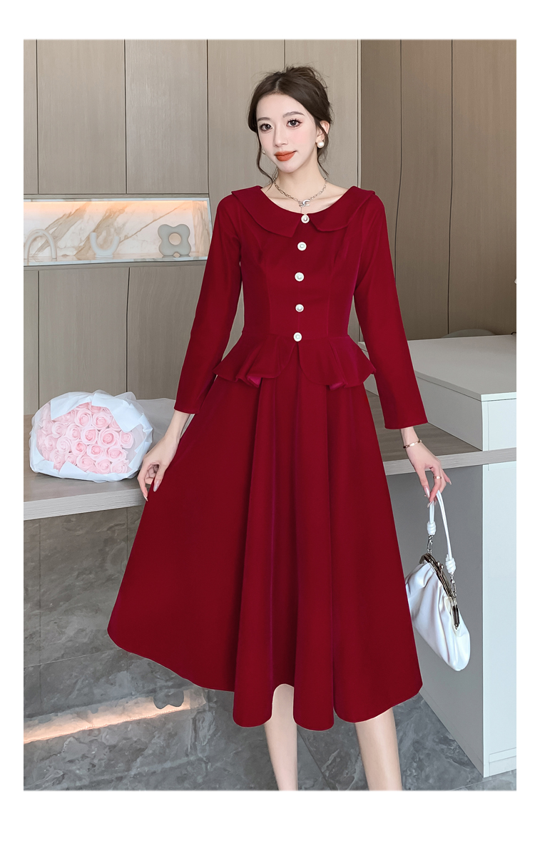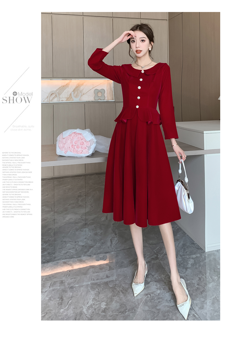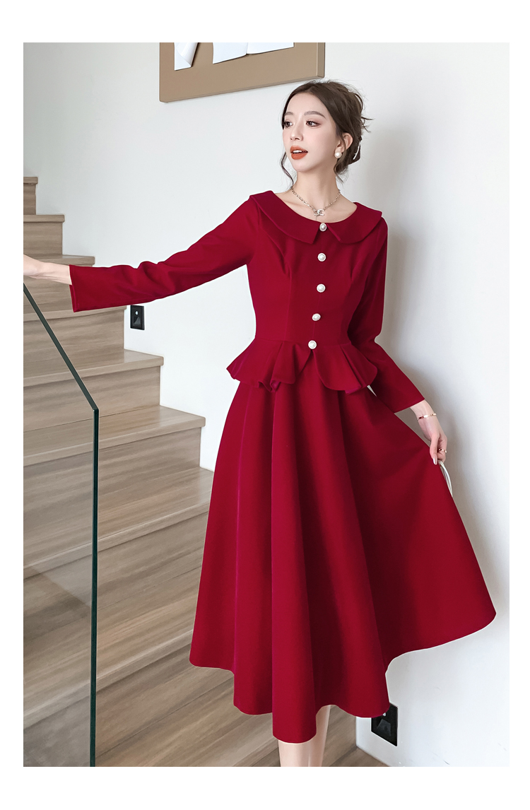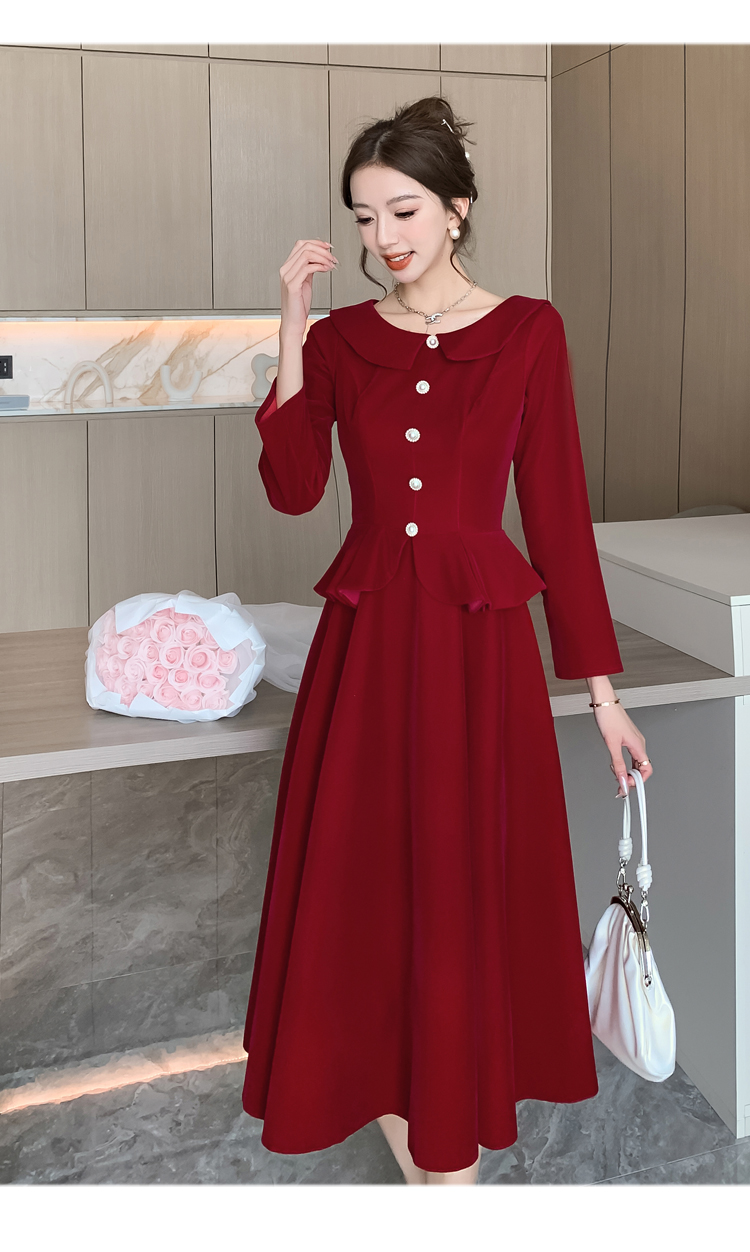 RM25876#长袖敬酒服新娘小个子2023新款秋冬季红色订婚礼服连衣裙回门