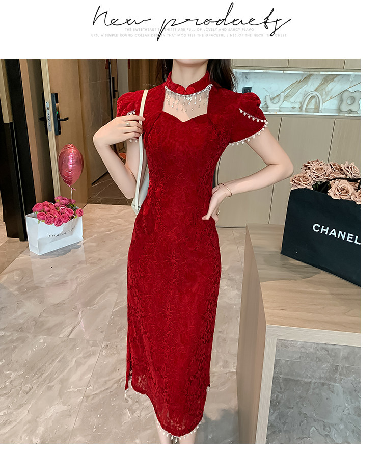 RM25879#旗袍敬酒服新娘夏季小个子酒红色订婚礼服裙中式回门蕾丝结婚改良