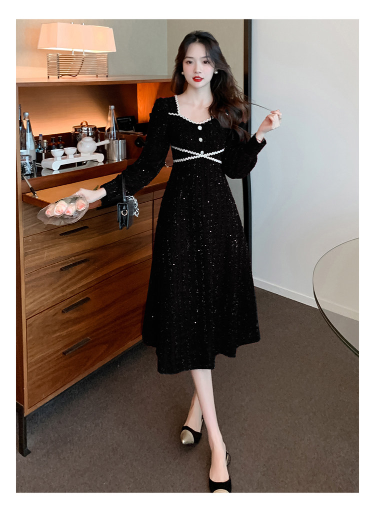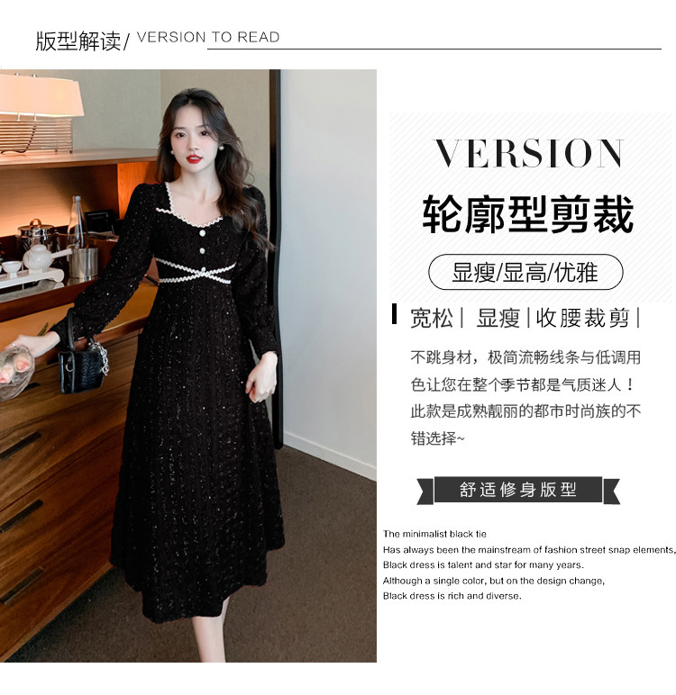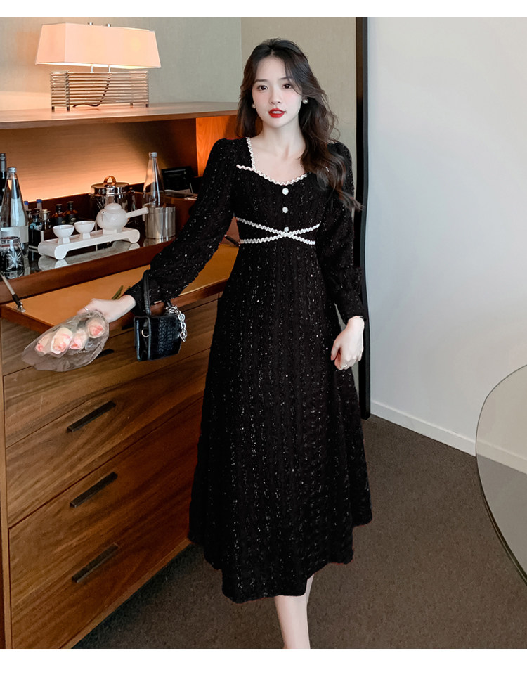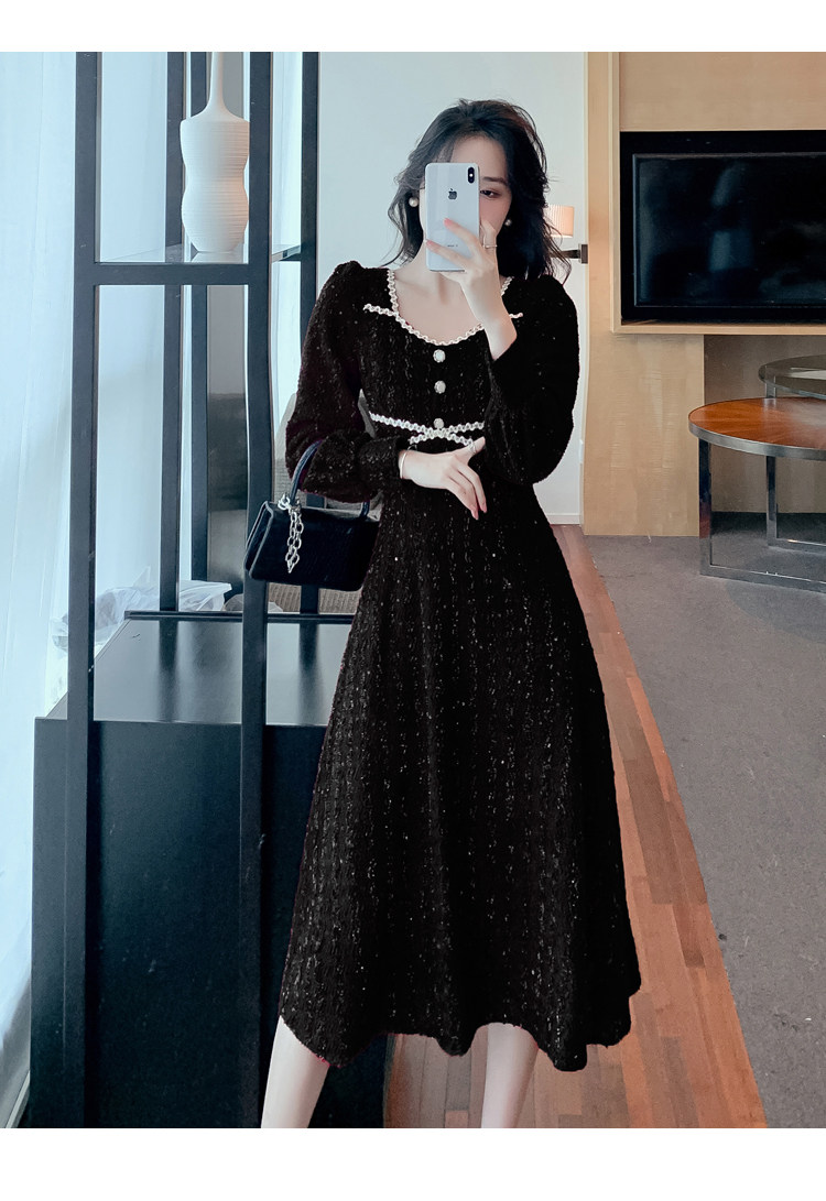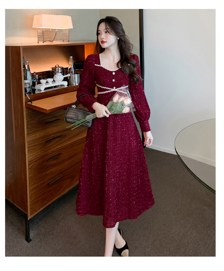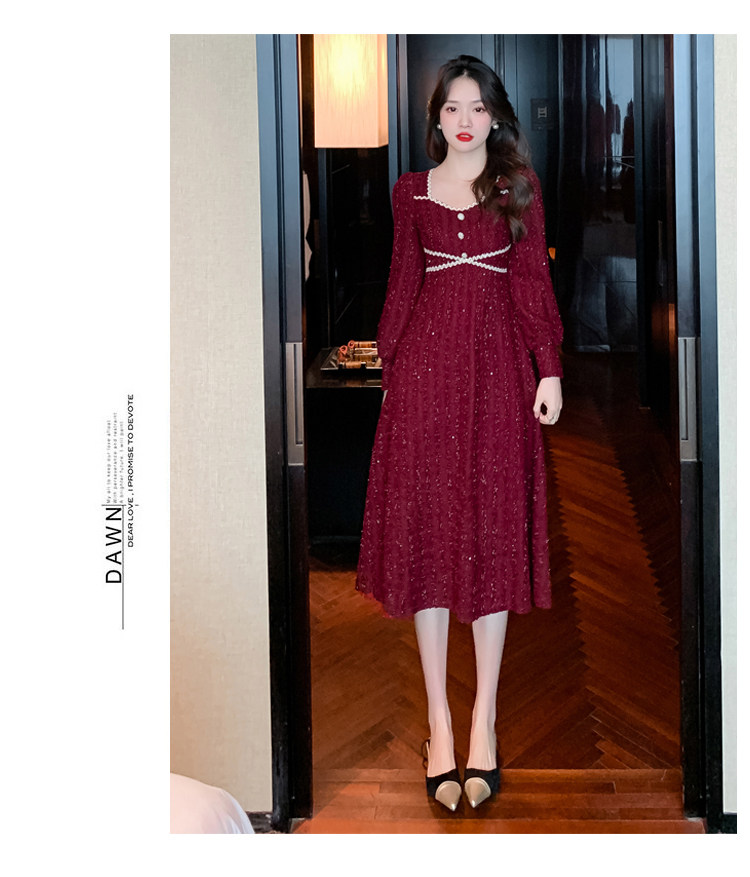 RM25888#红色小香风连衣裙女2023年秋冬新款法式喜庆显瘦方领长裙