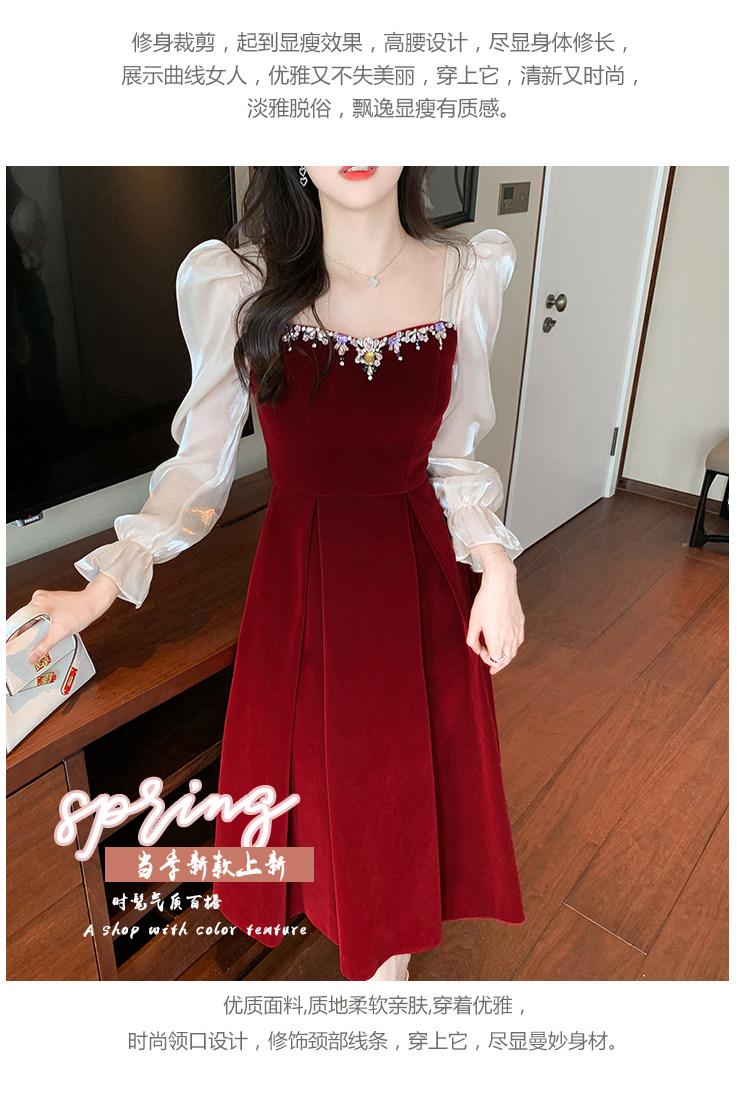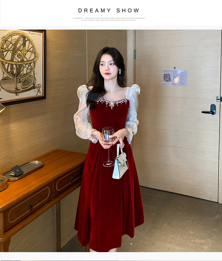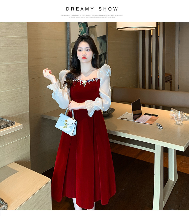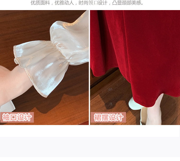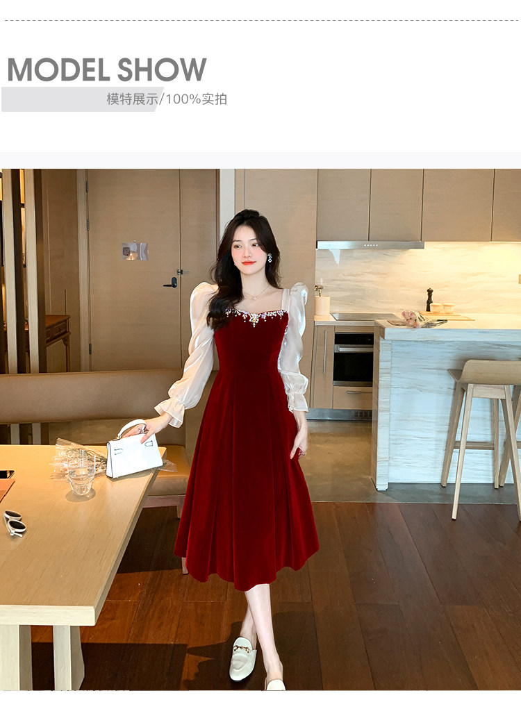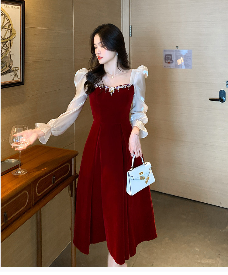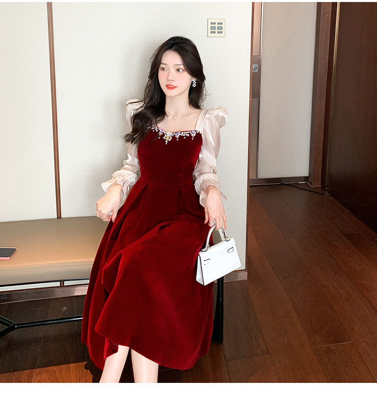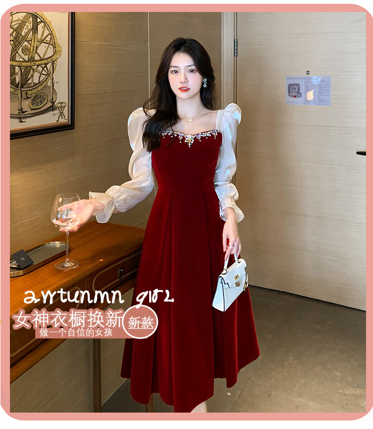 RM25889#敬酒服2023新款新娘酒红色冬季平时可穿纱袖订婚连衣裙出阁宴礼服