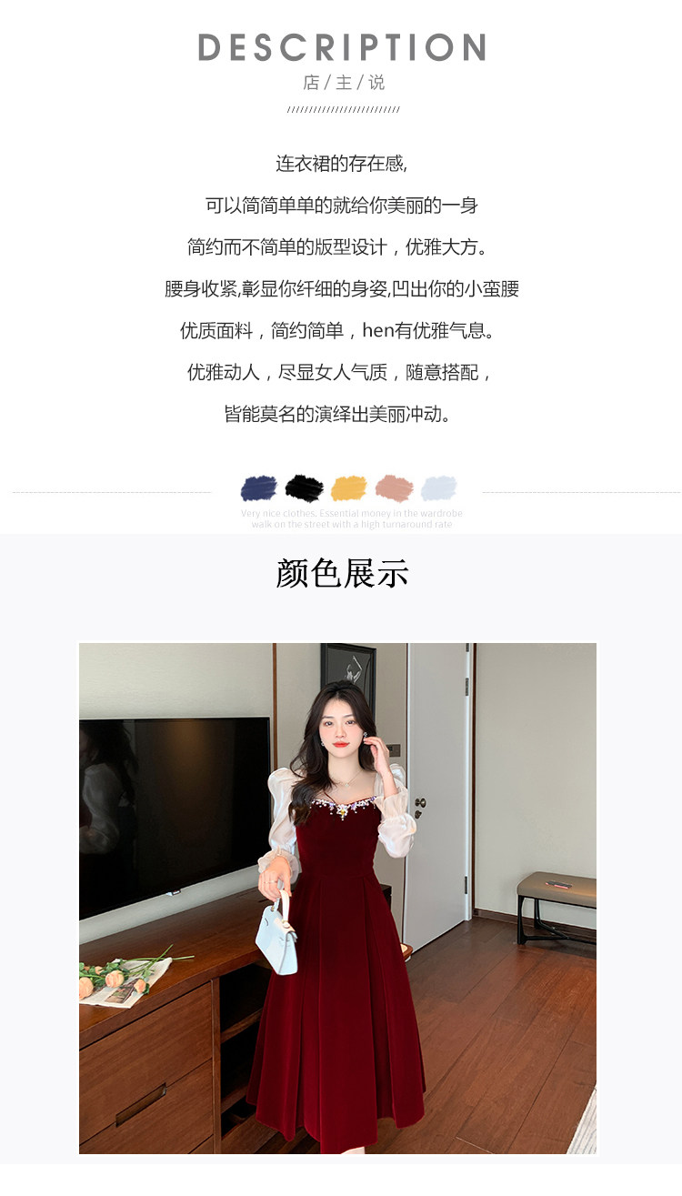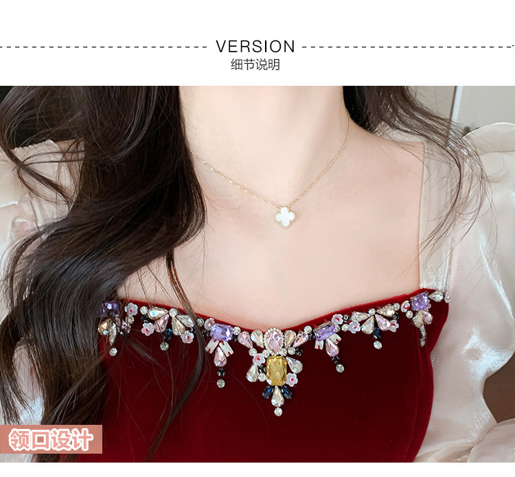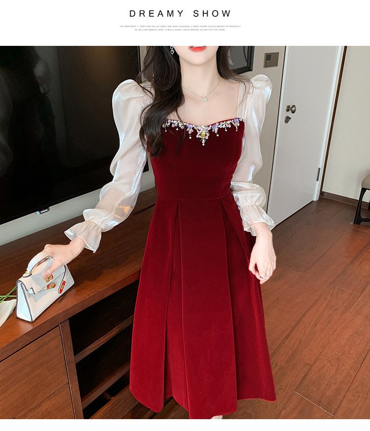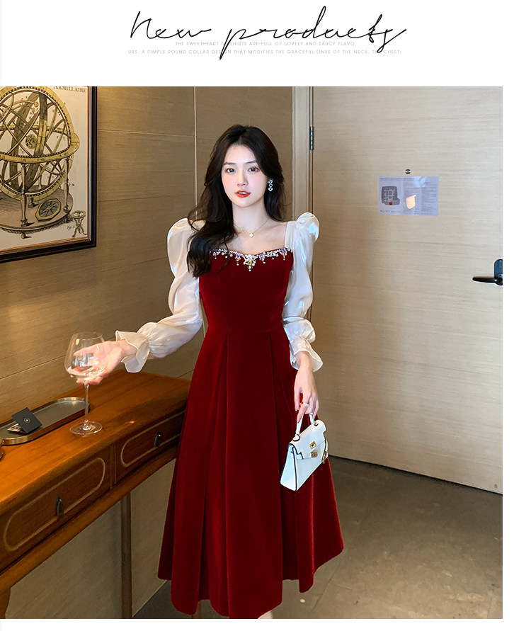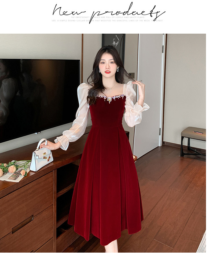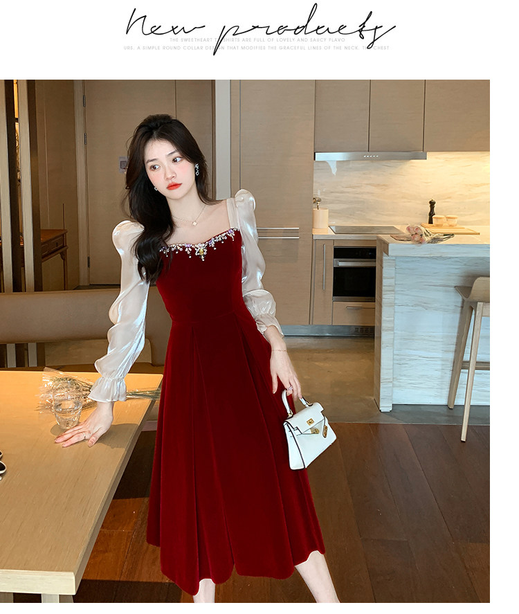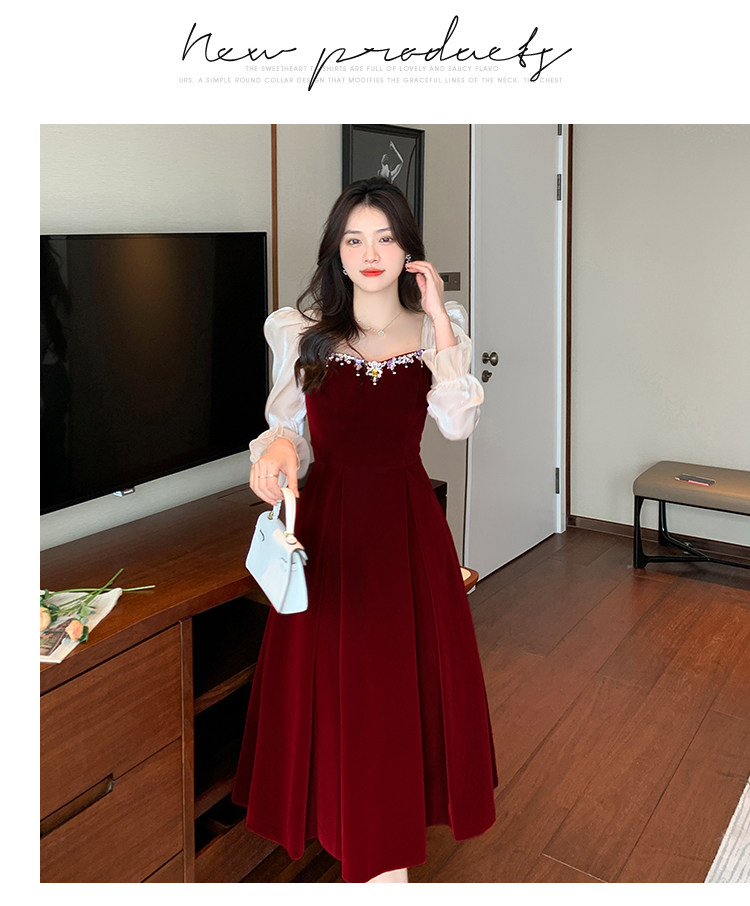 RM25889#敬酒服2023新款新娘酒红色冬季平时可穿纱袖订婚连衣裙出阁宴礼服
