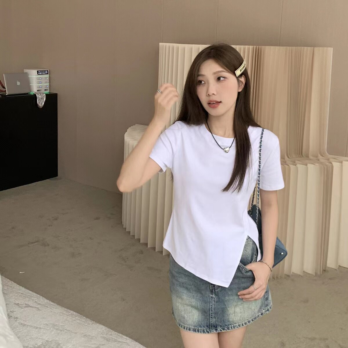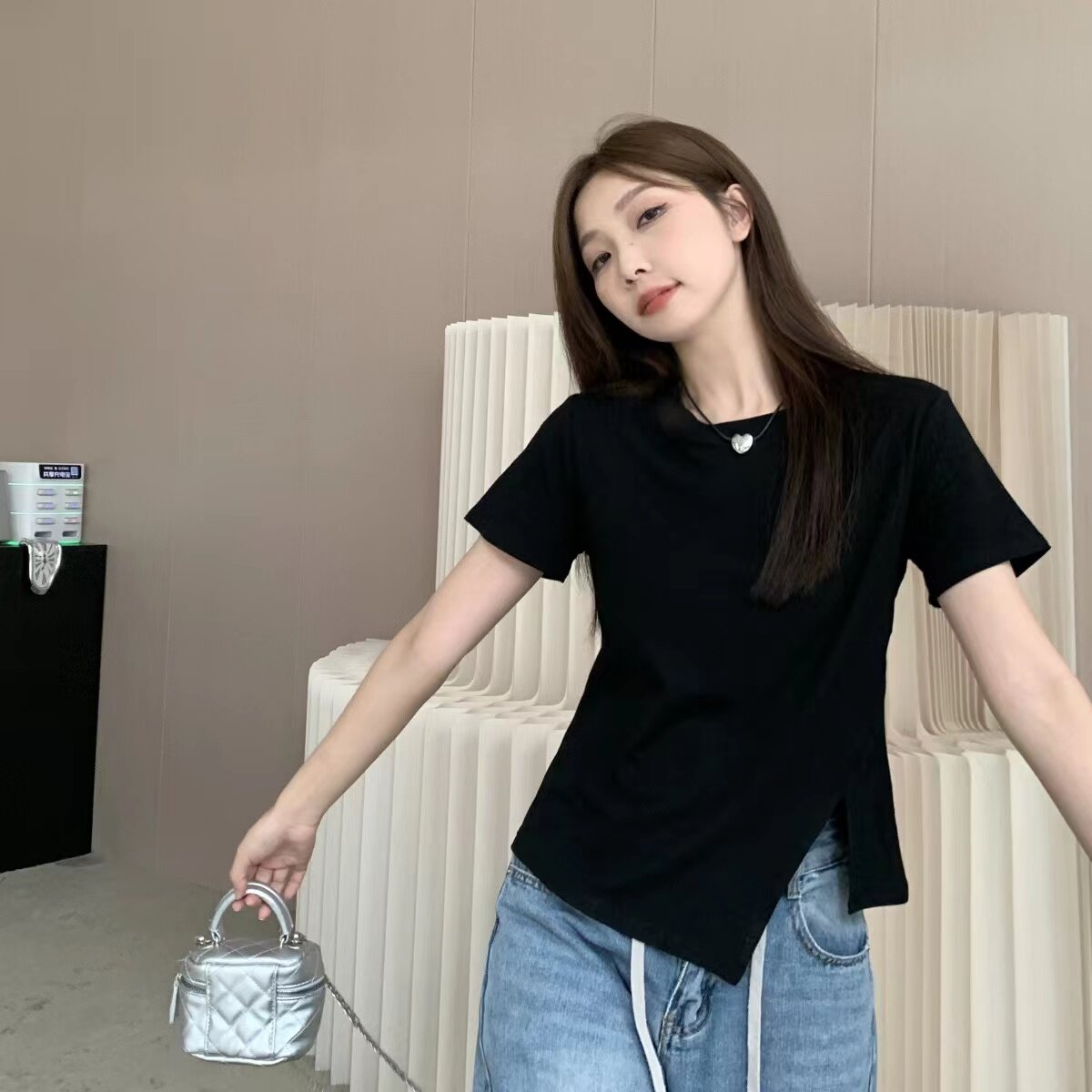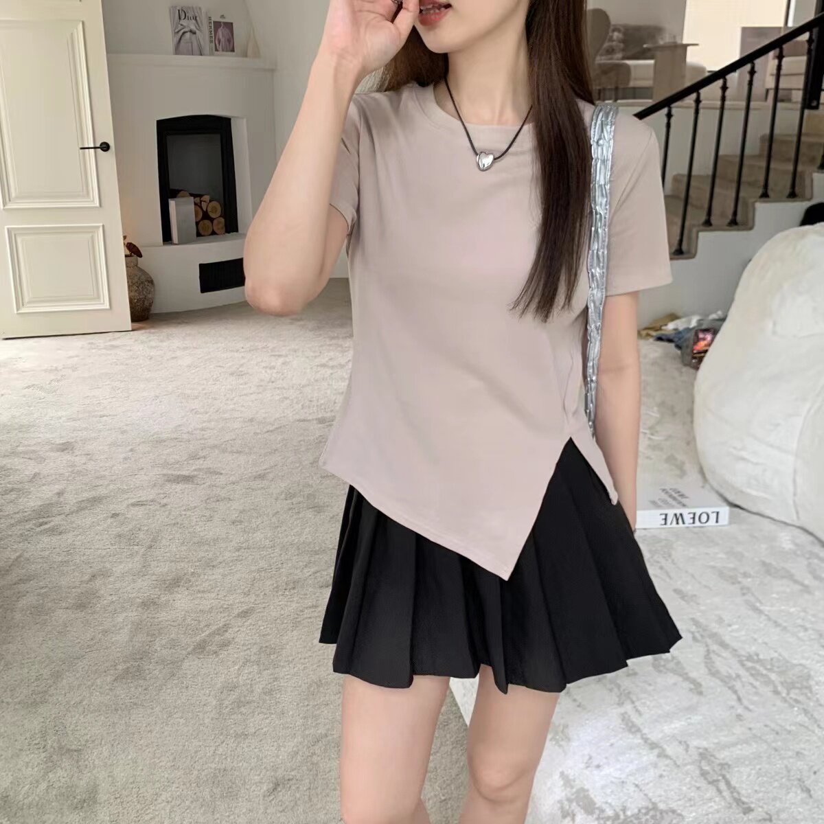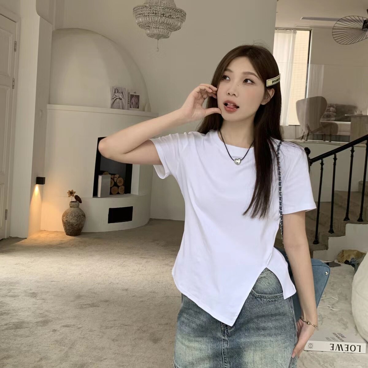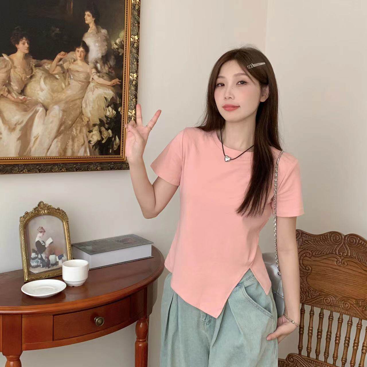 RM25894#胖mm 不规则大码正肩夏季遮肚子显瘦百搭短袖上衣