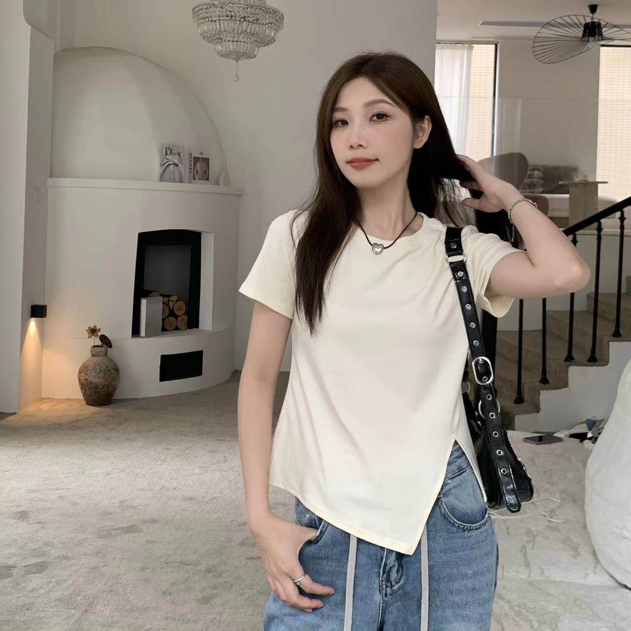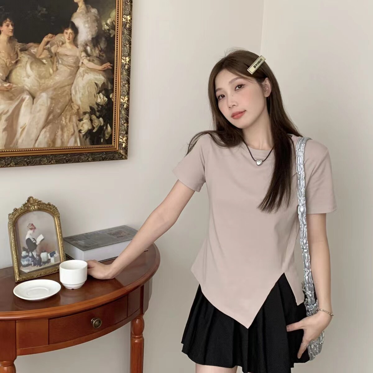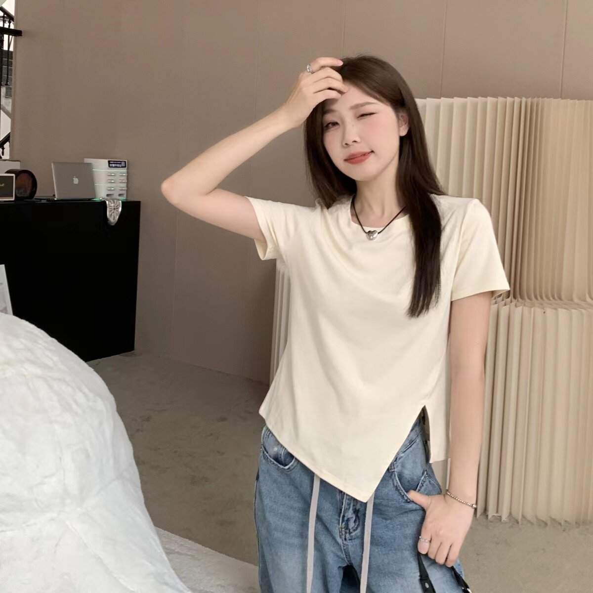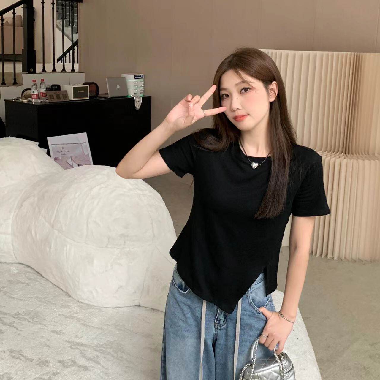 RM25894#胖mm 不规则大码正肩夏季遮肚子显瘦百搭短袖上衣