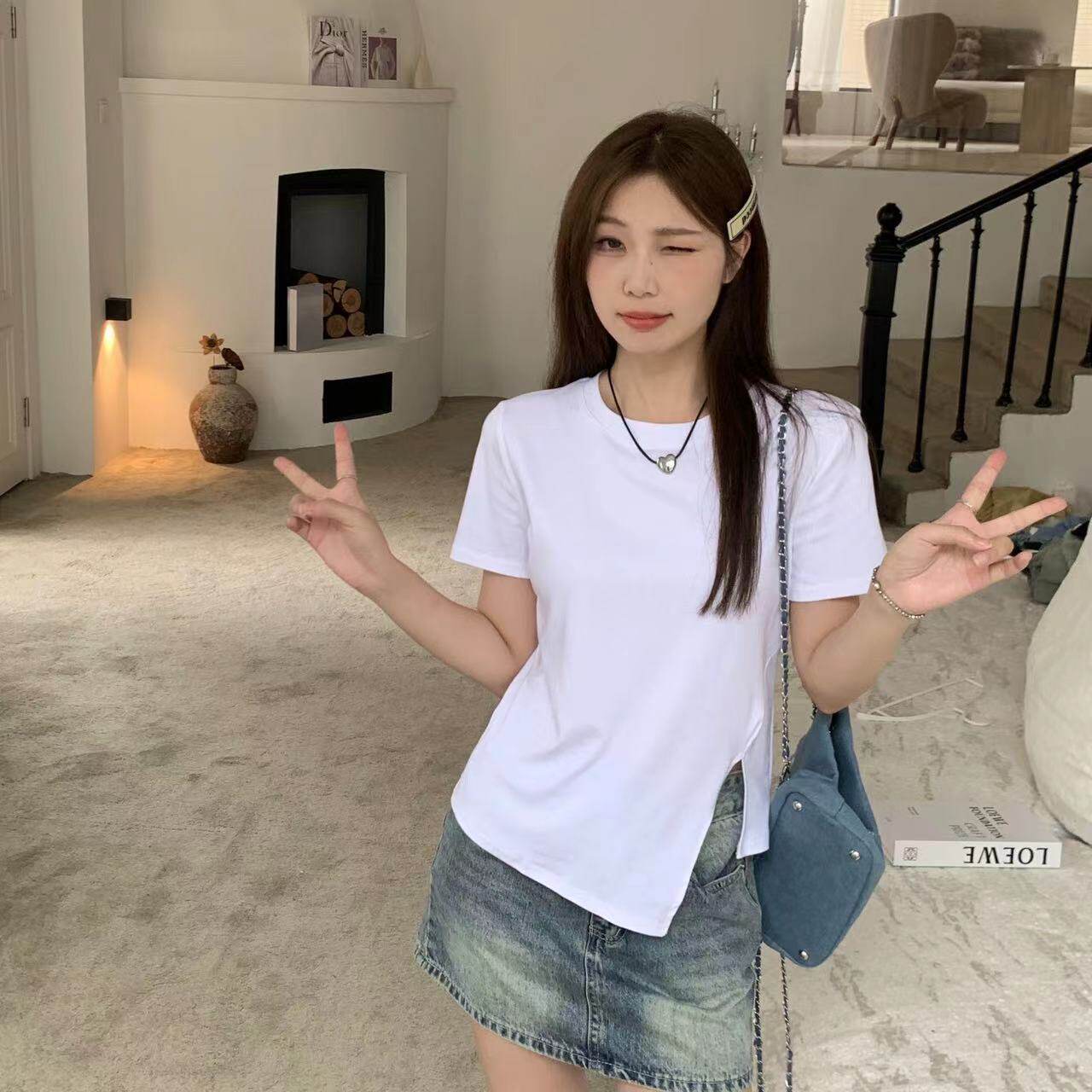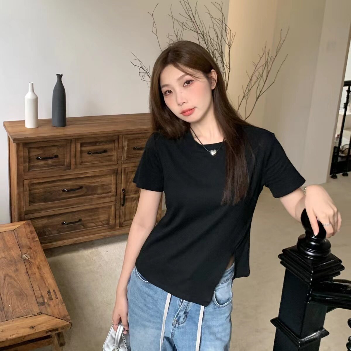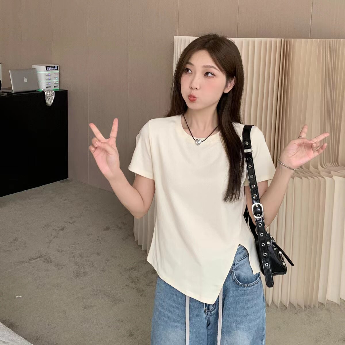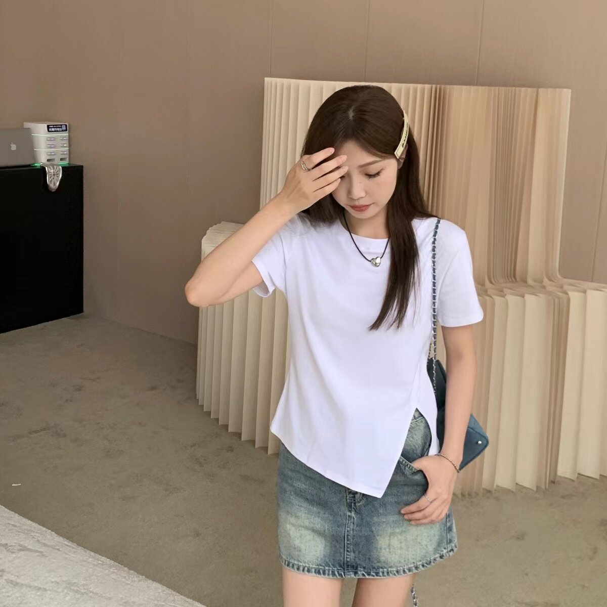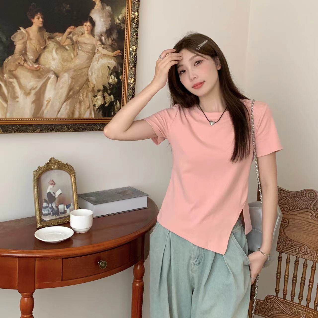 RM25894#胖mm 不规则大码正肩夏季遮肚子显瘦百搭短袖上衣