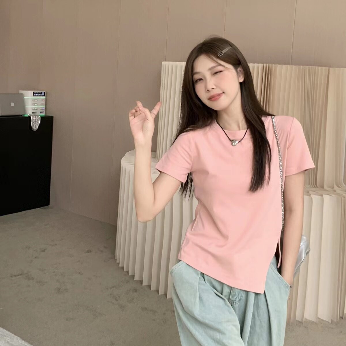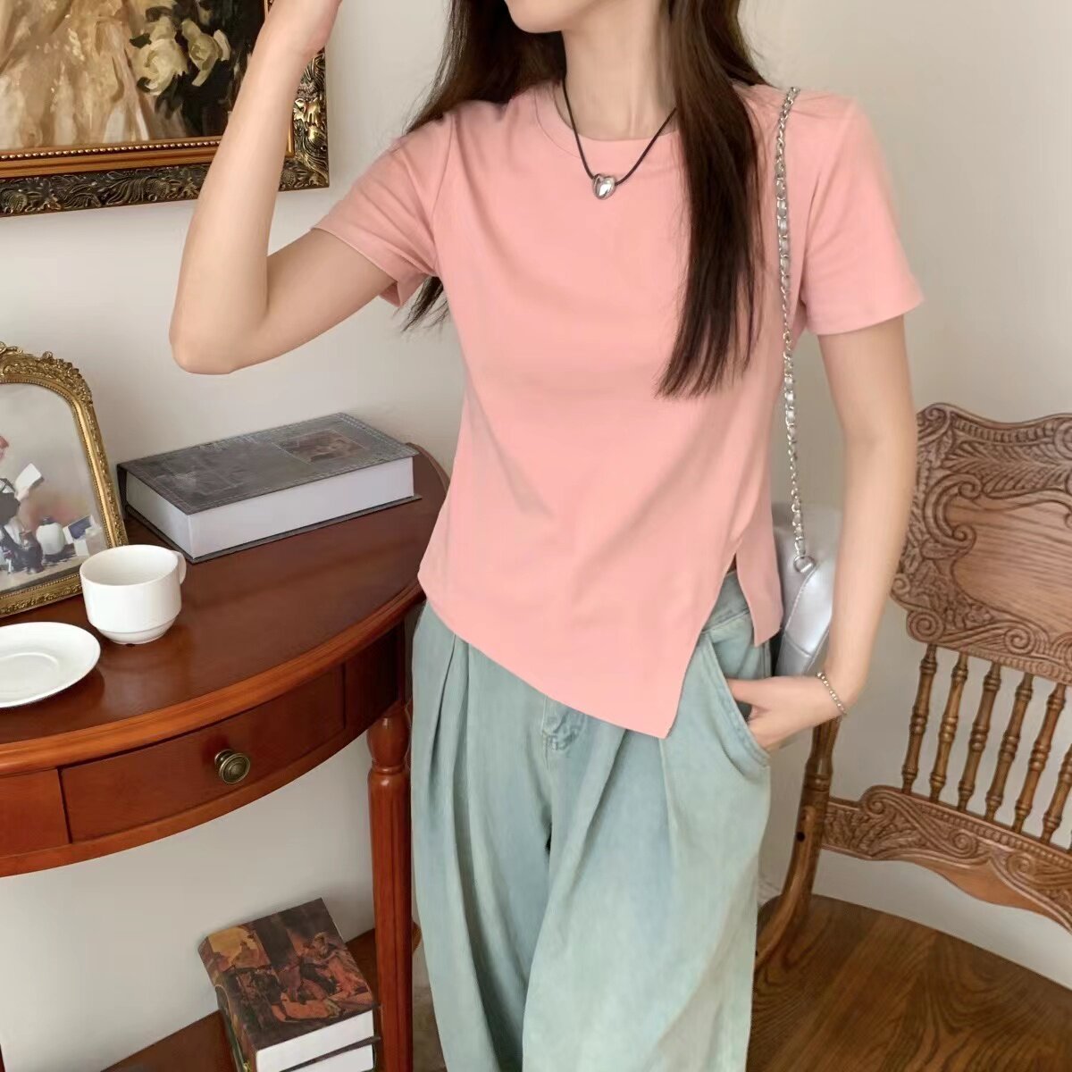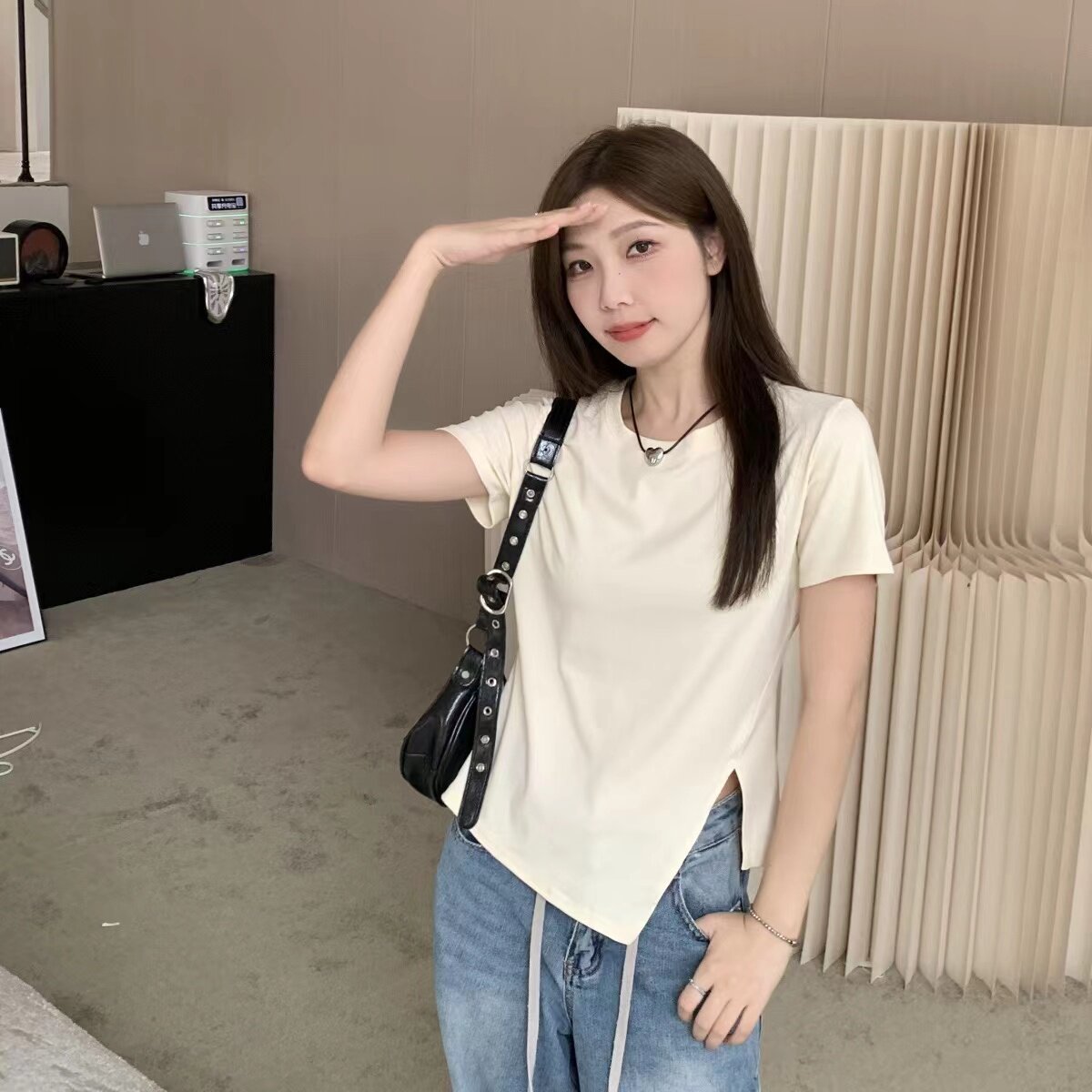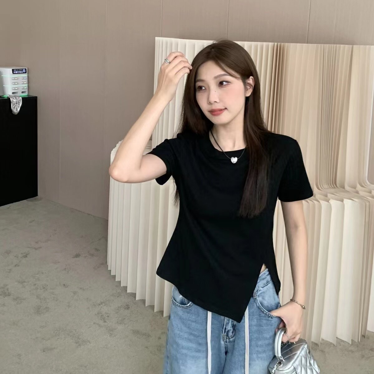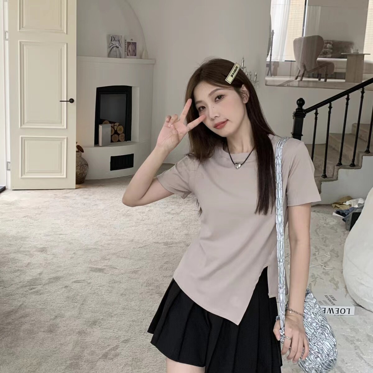 RM25894#胖mm 不规则大码正肩夏季遮肚子显瘦百搭短袖上衣