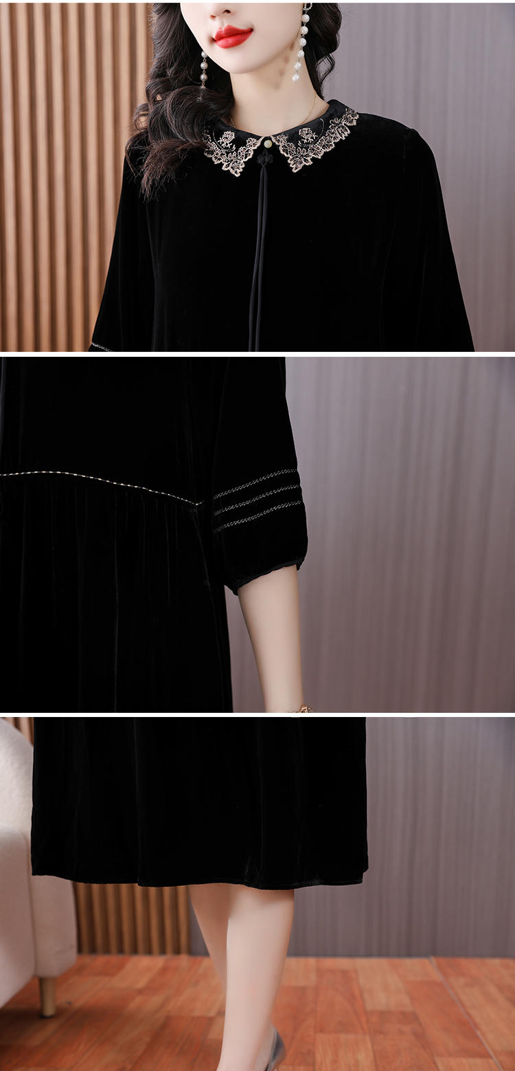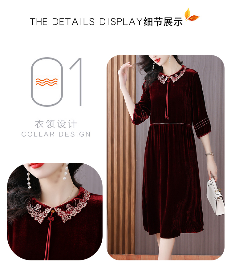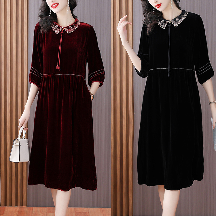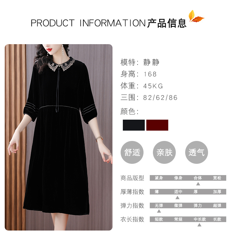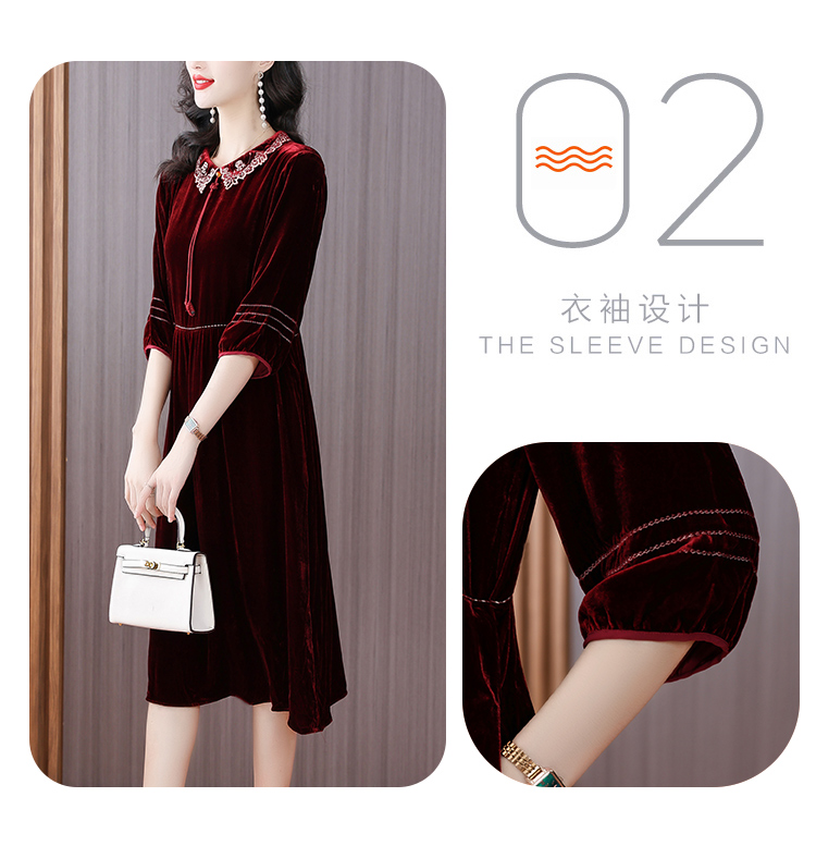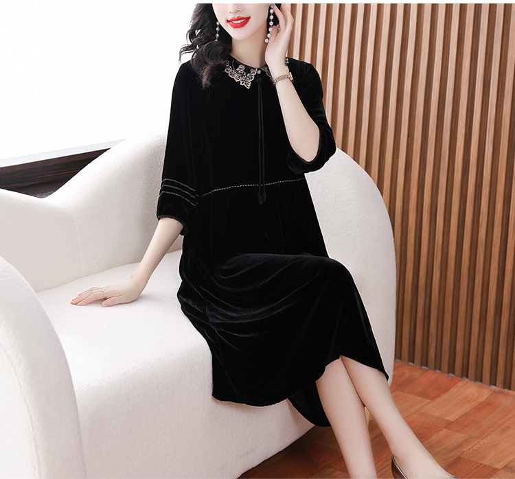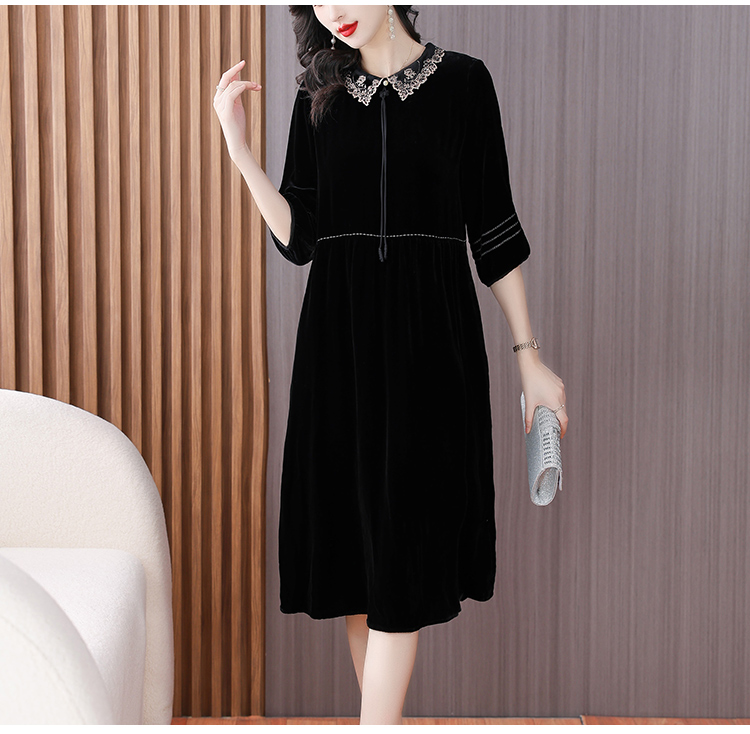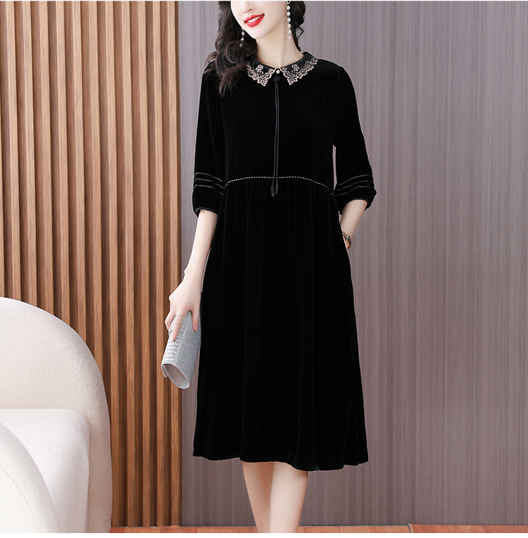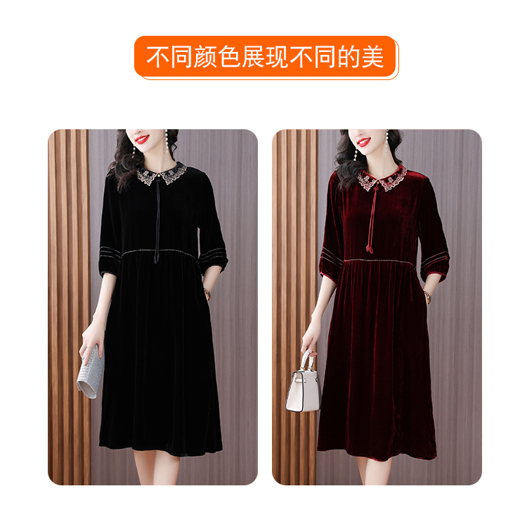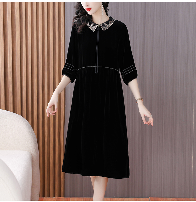 RM25899#打底单穿真丝丝绒连衣裙高级翻领法式轻奢优雅中长裙