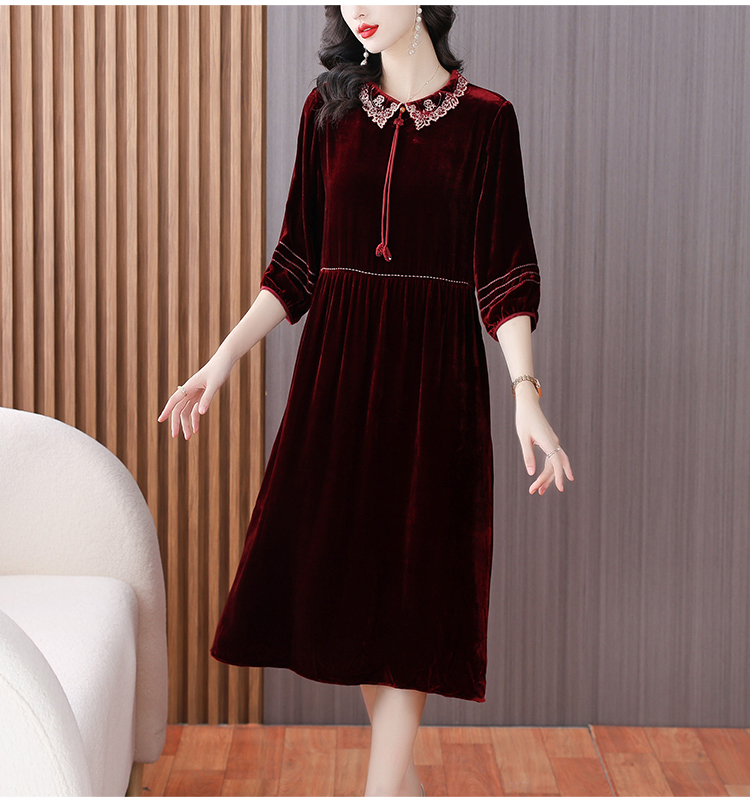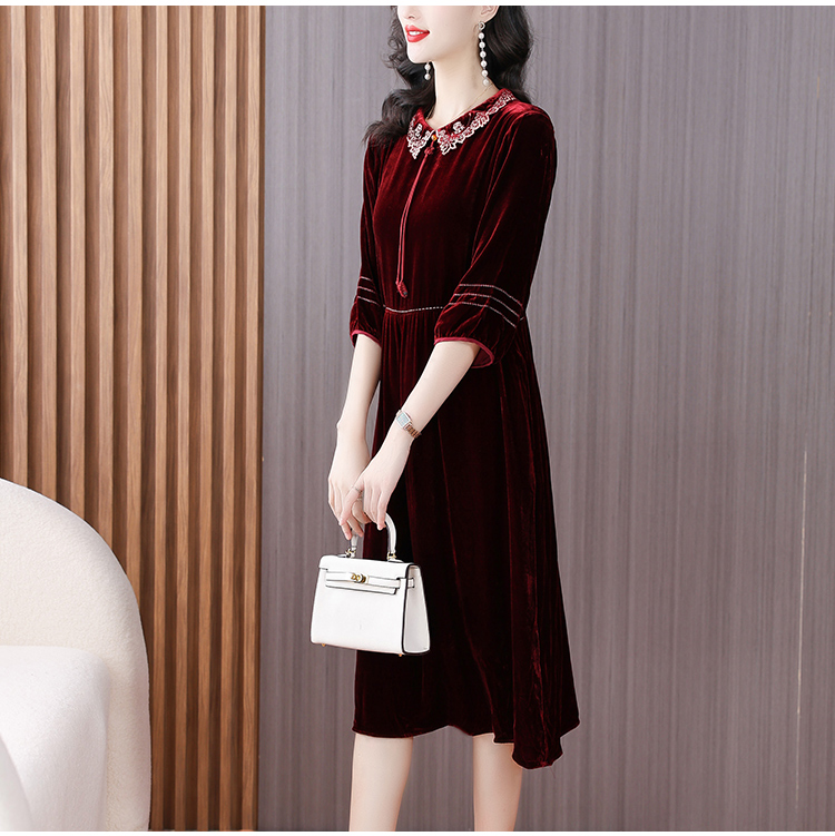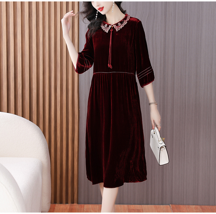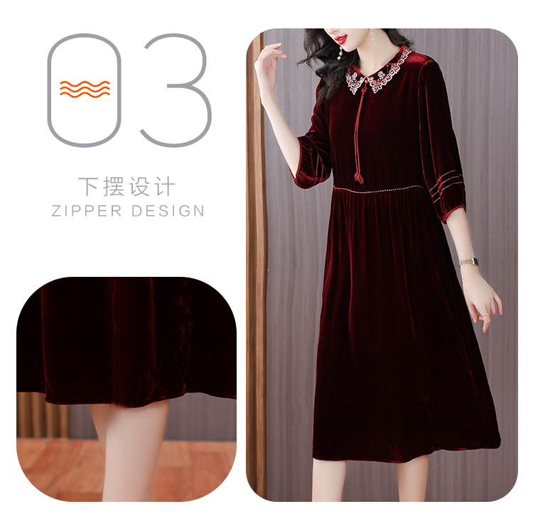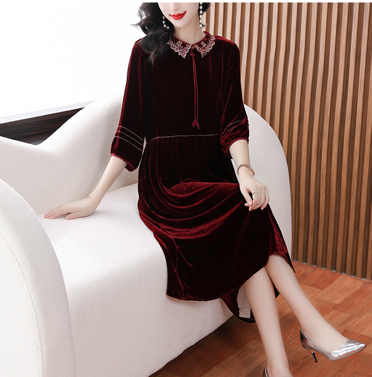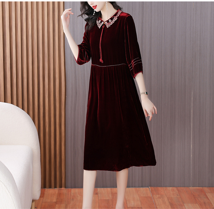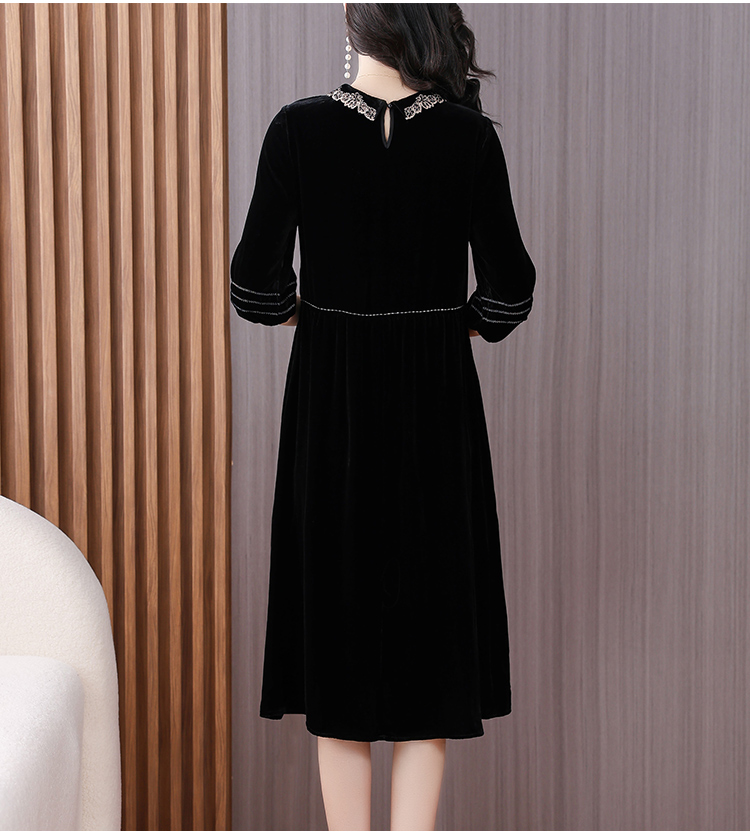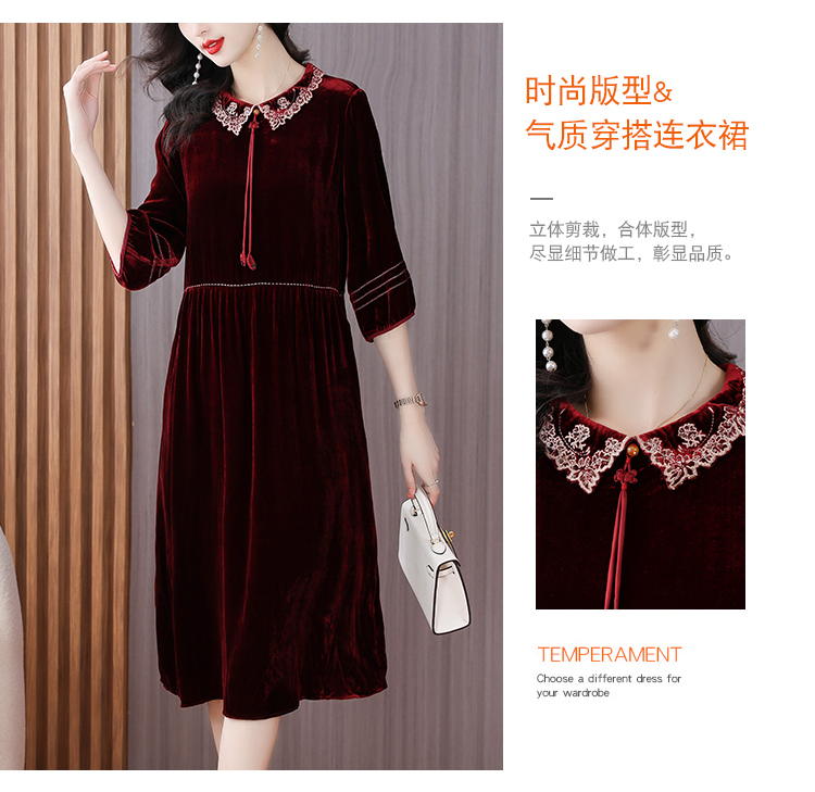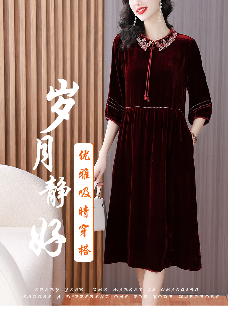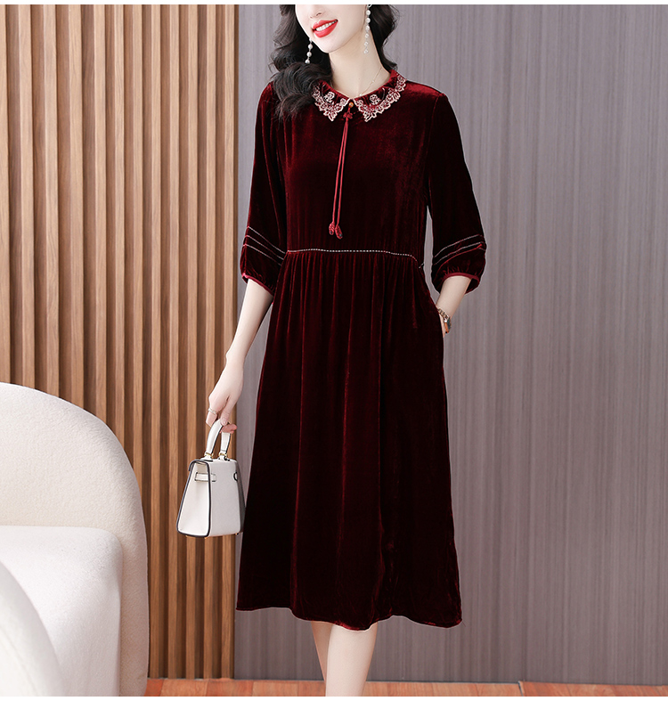 RM25899#打底单穿真丝丝绒连衣裙高级翻领法式轻奢优雅中长裙
