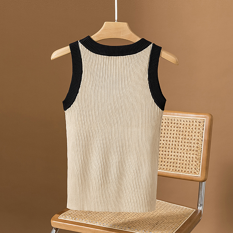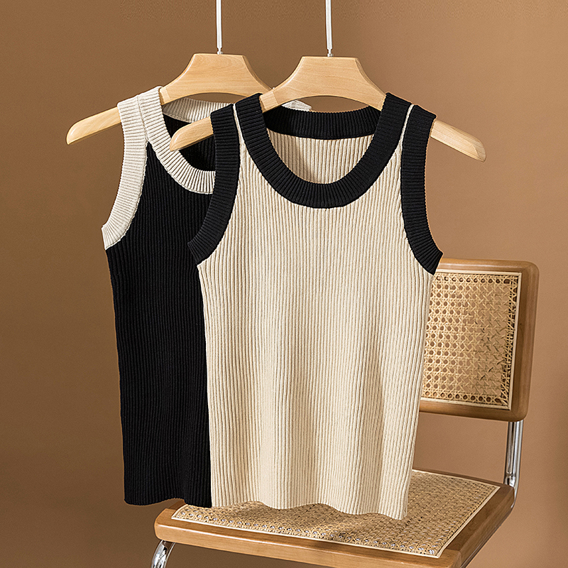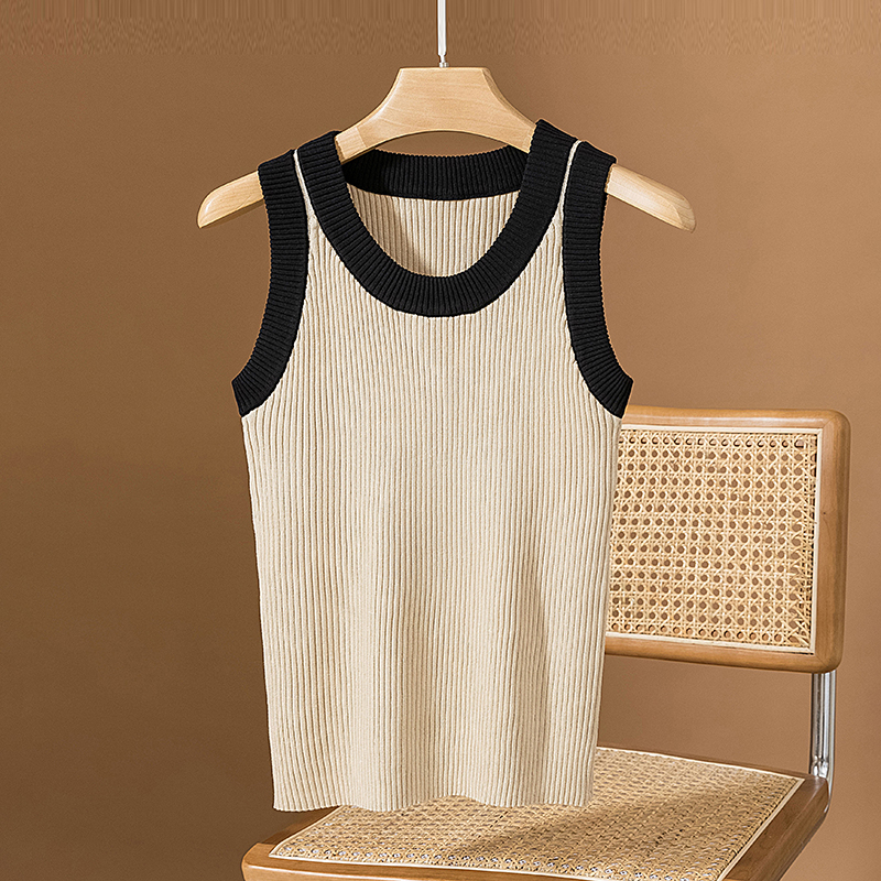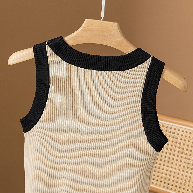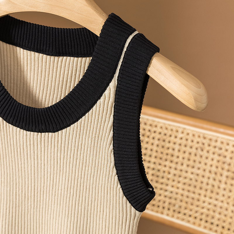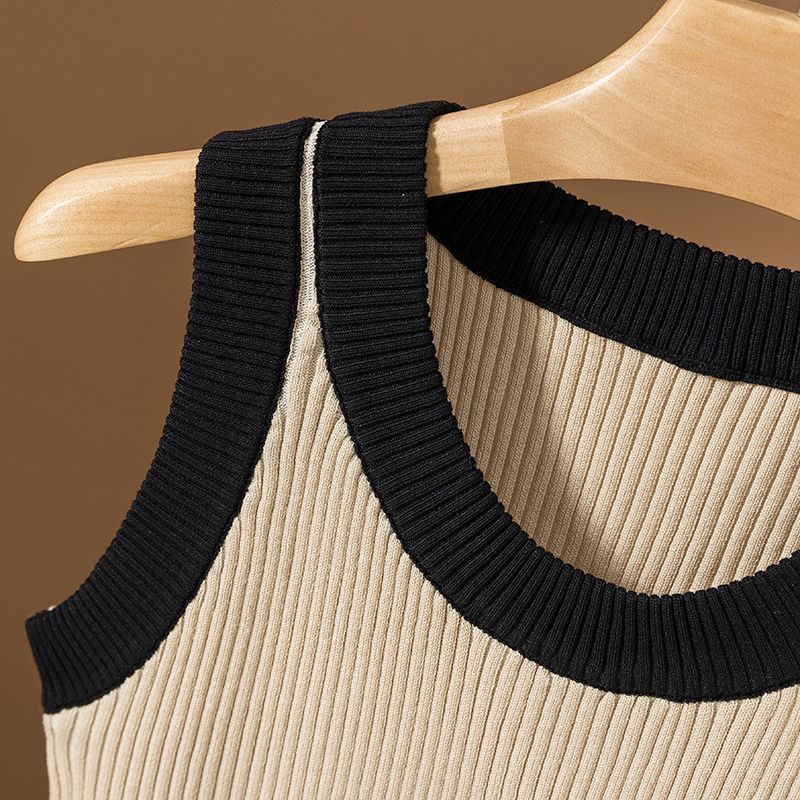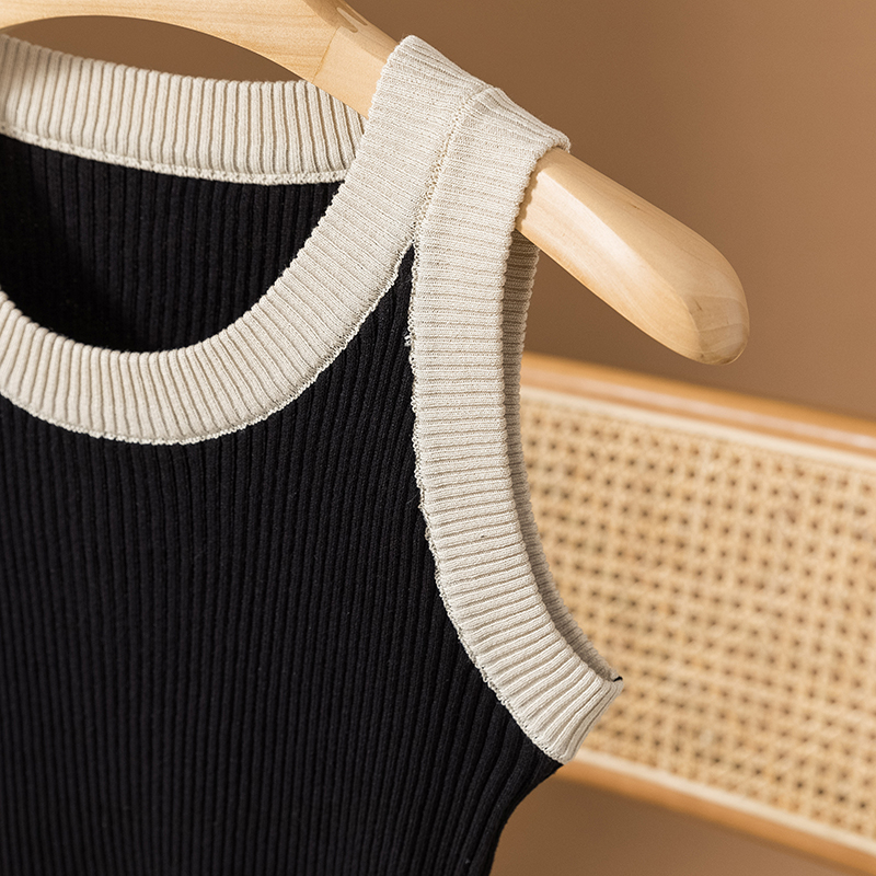 RM25903#胖mm针织圆领撞色背心吊带大码女装胖妹妹无袖t恤上衣