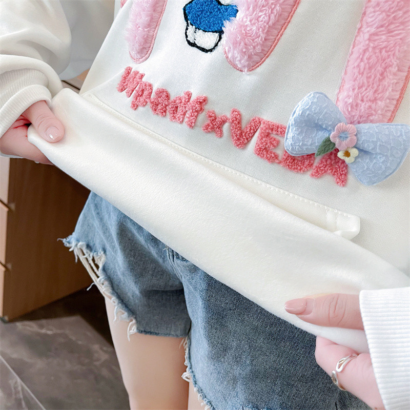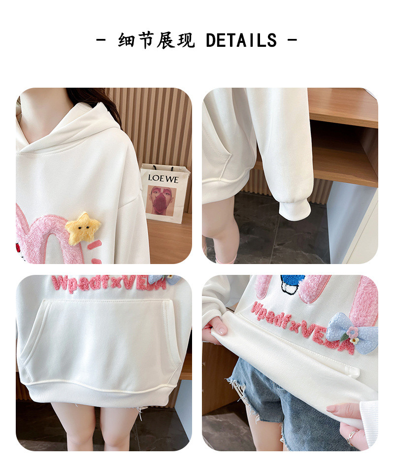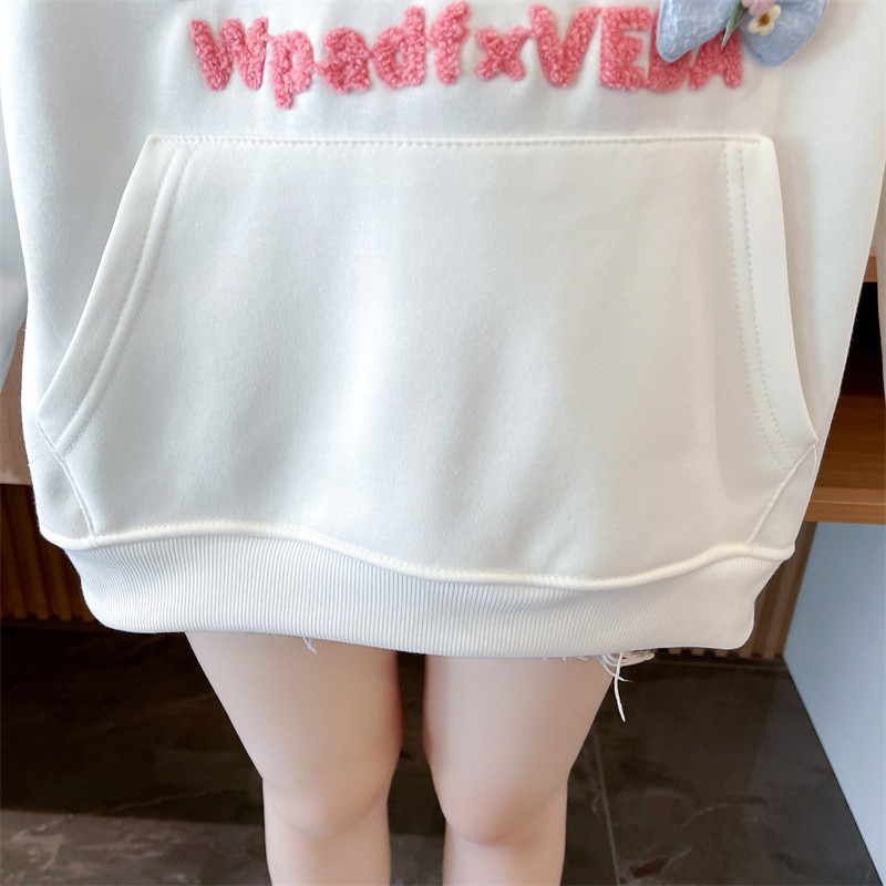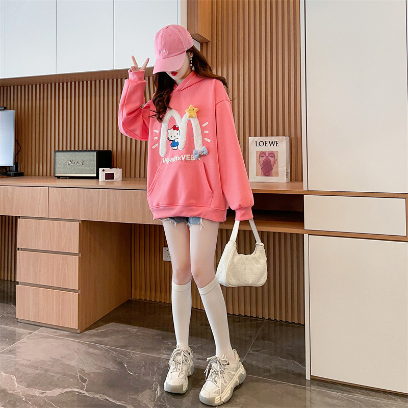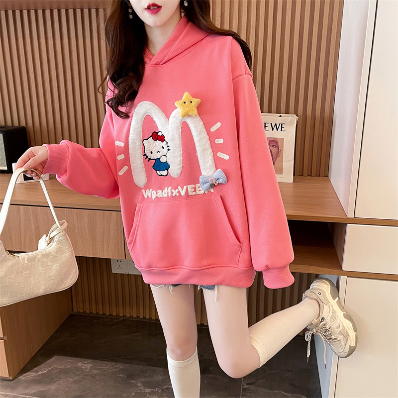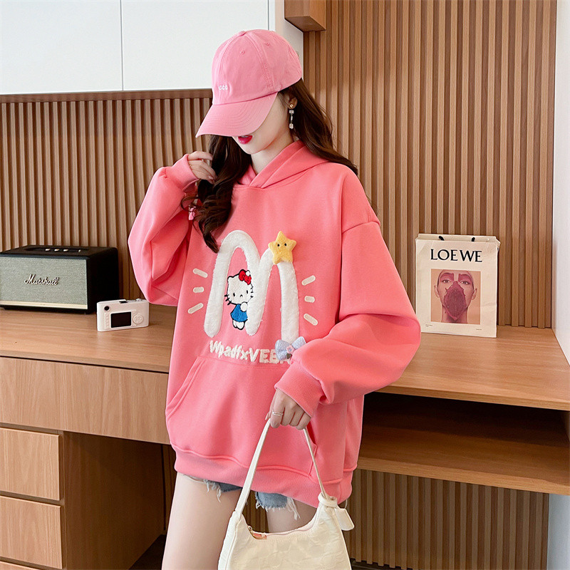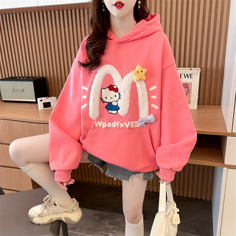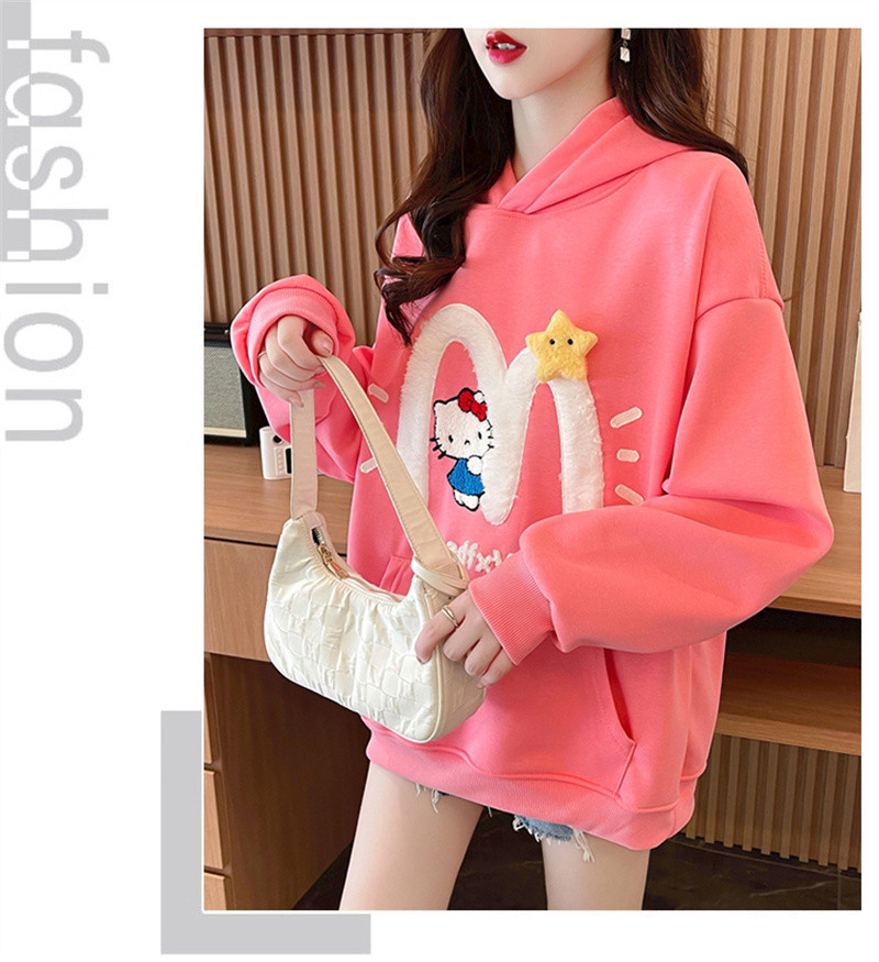 RM25923#纯棉面复合牛奶丝 HelloKitty毛绒刺绣连帽薄款卫衣女秋冬季