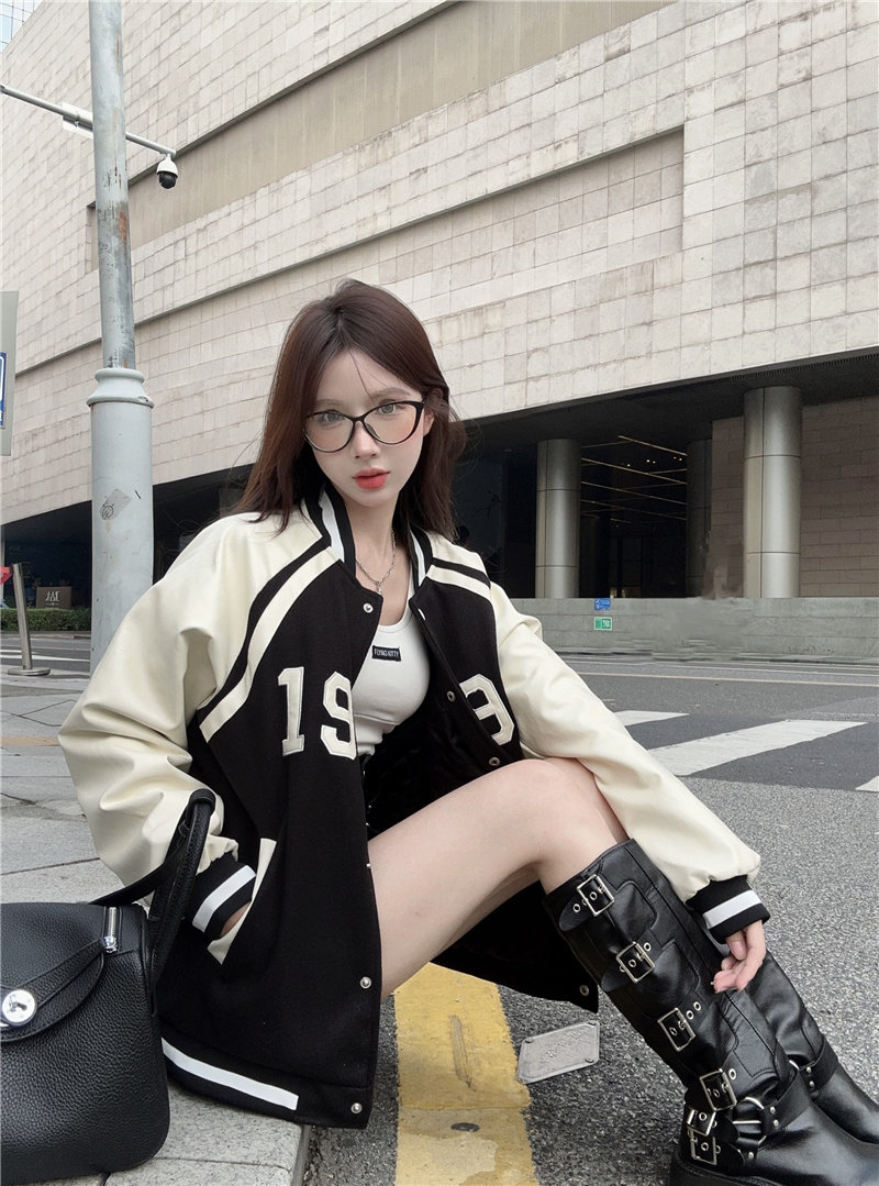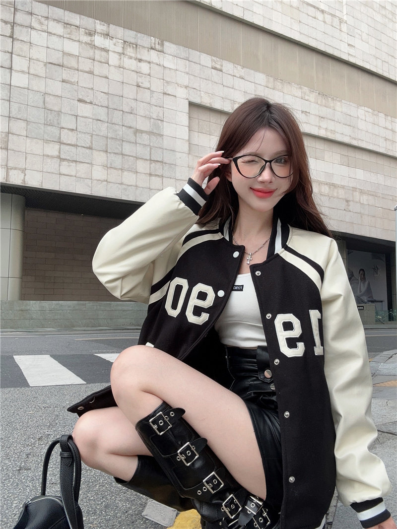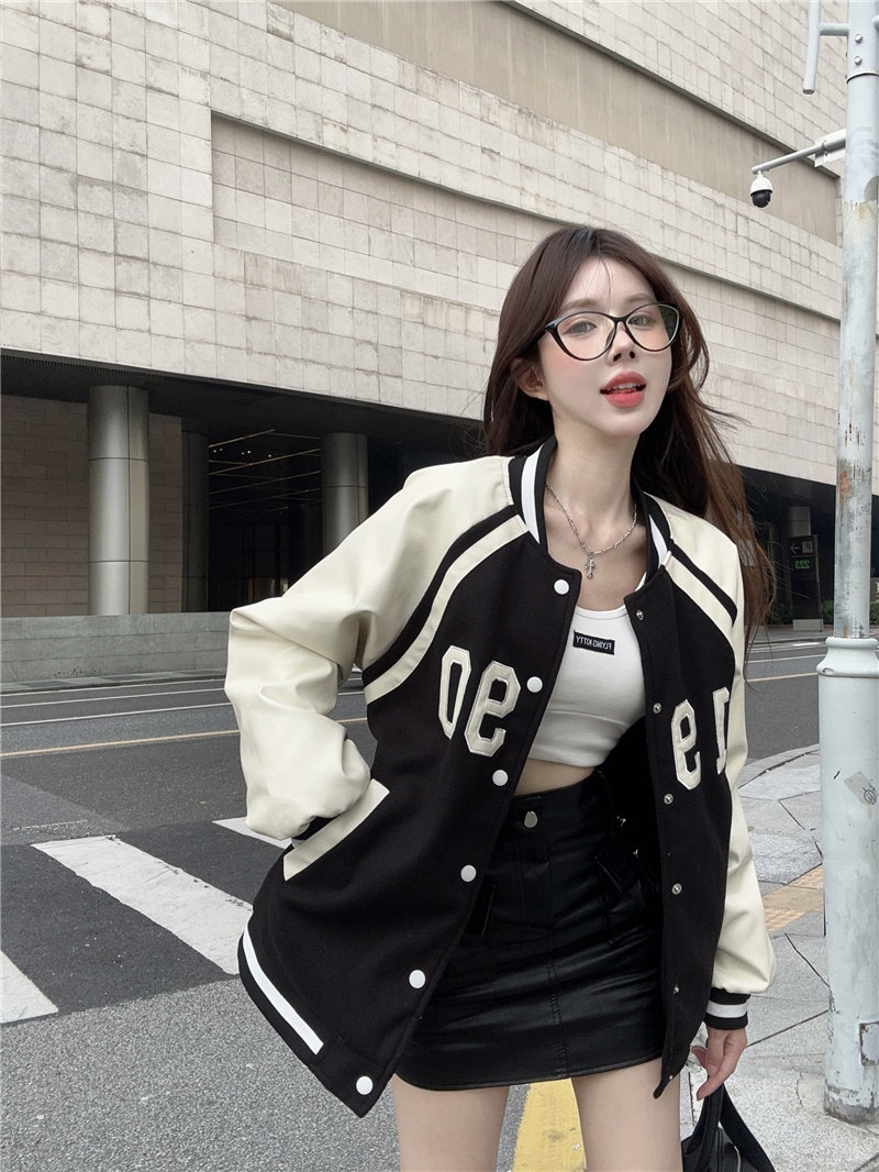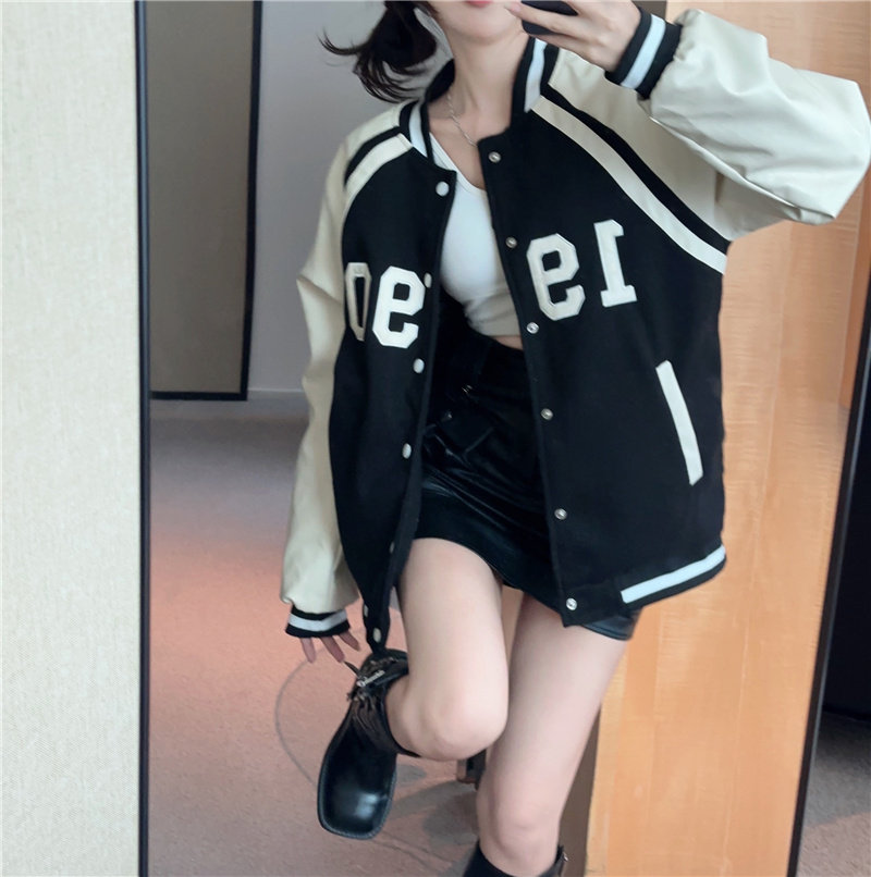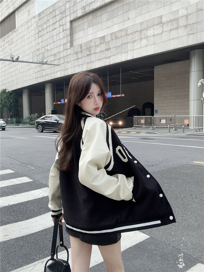 RM25925#新款美式黑色棒球服女秋冬加厚夹棉夹克外套小个子