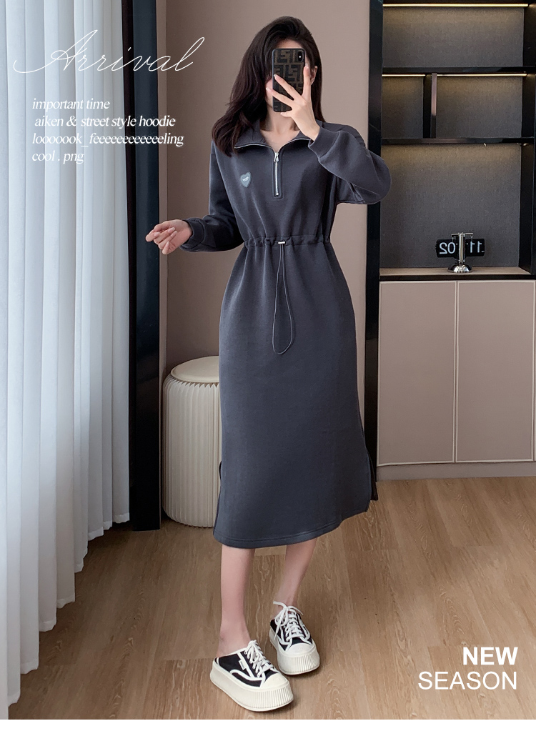 RM25934#韩版休闲长袖卫衣裙女秋季2023新款高级感收腰显瘦气质连衣裙