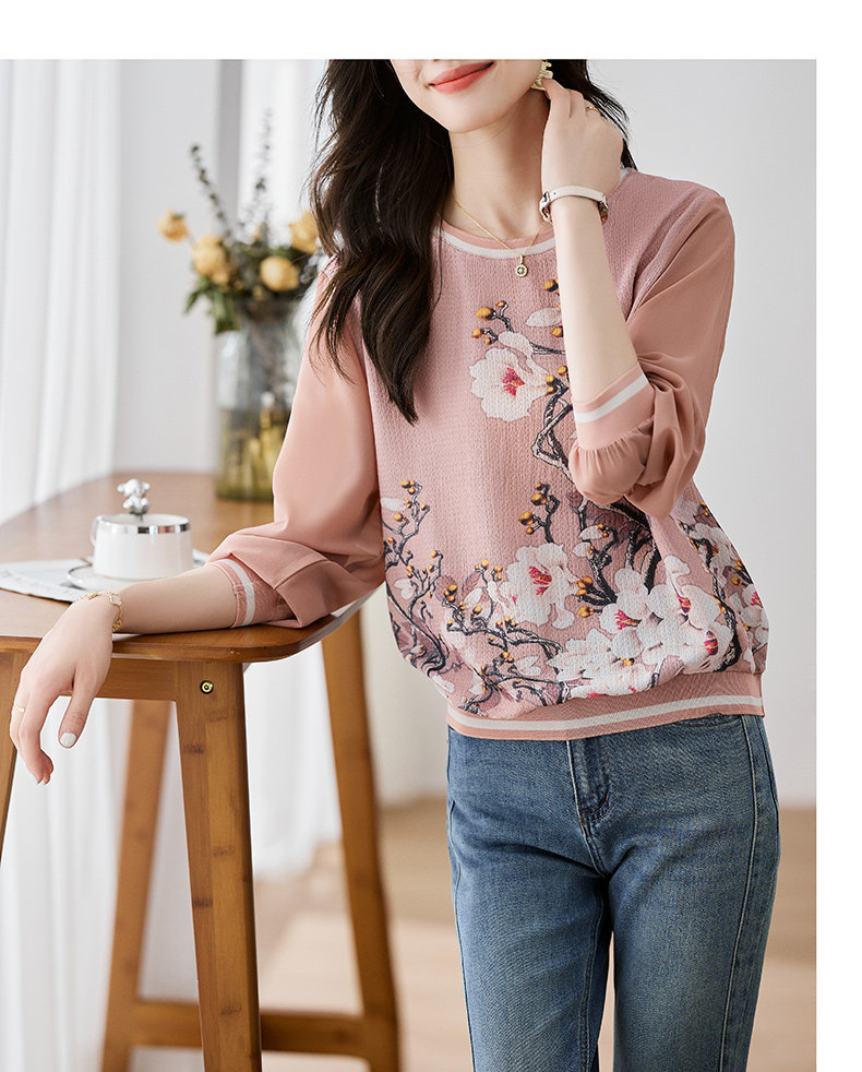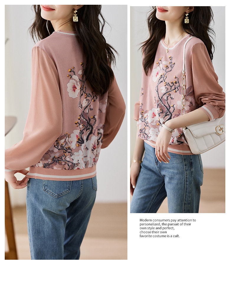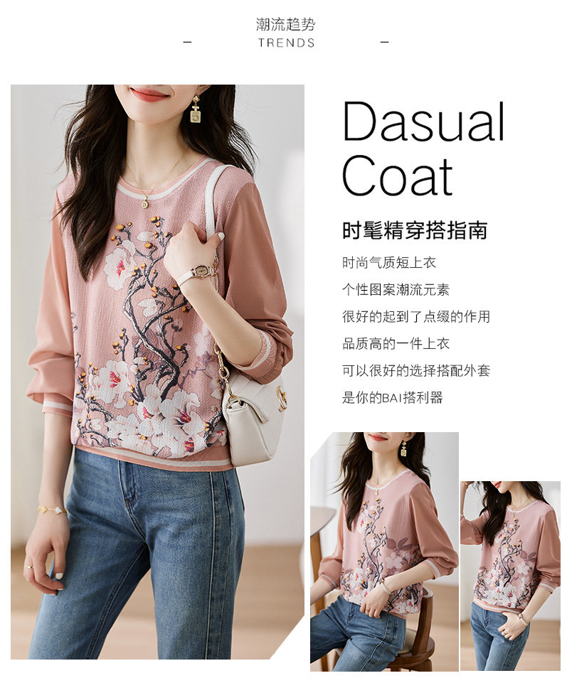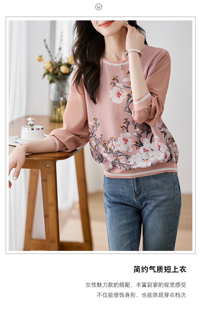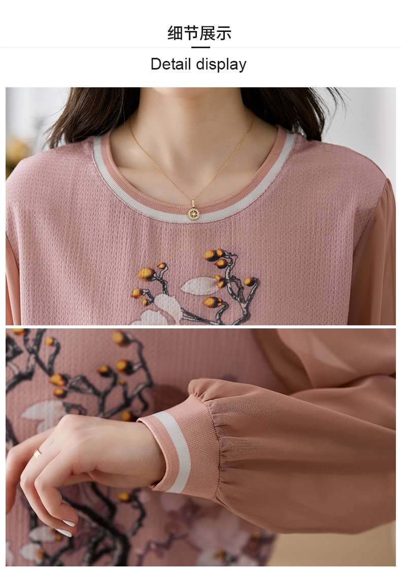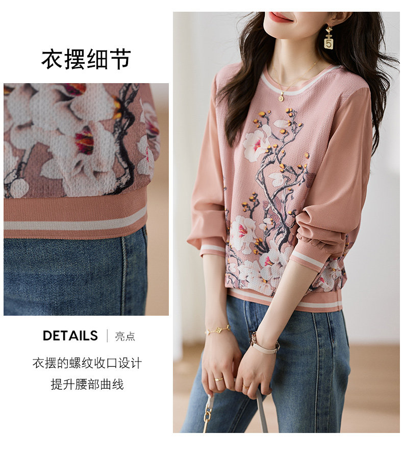 RM25936#新款高端数码针织提花皱长袖宽松拼接气质套头百搭上衣