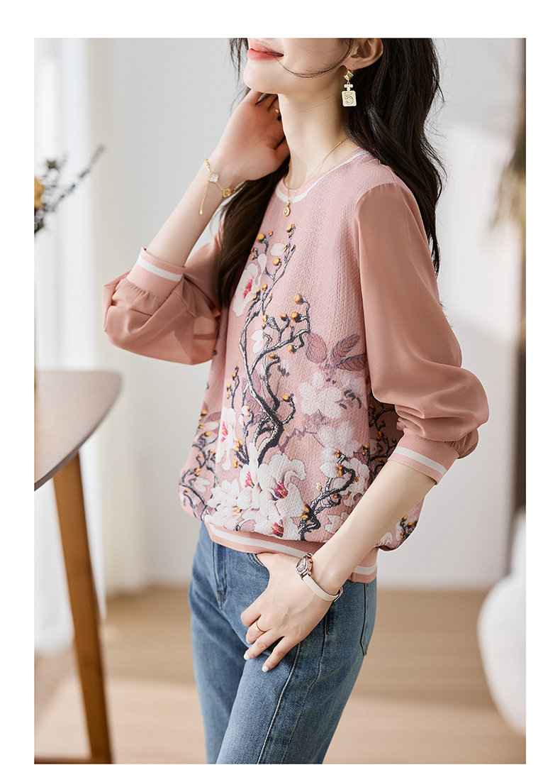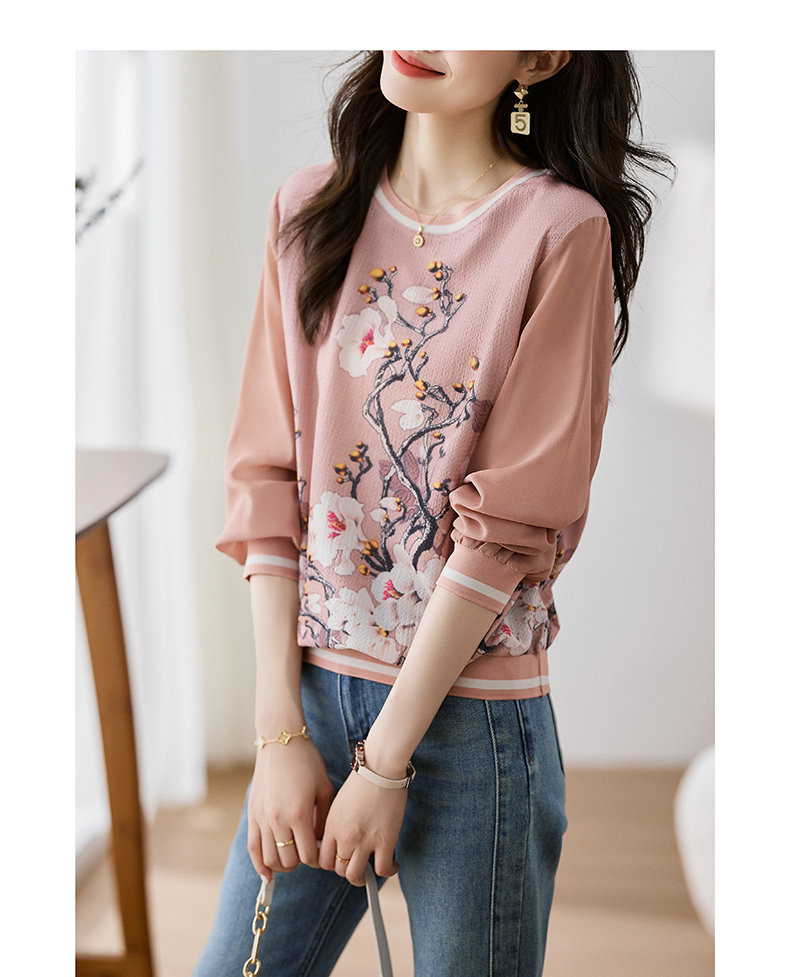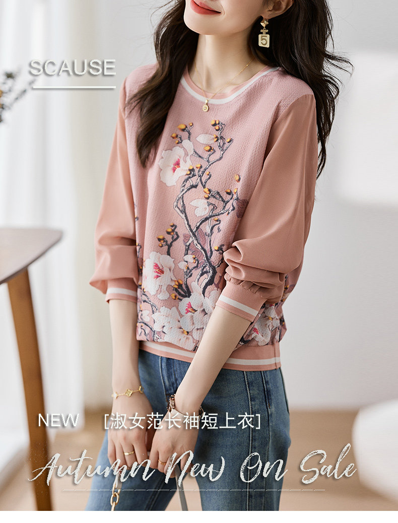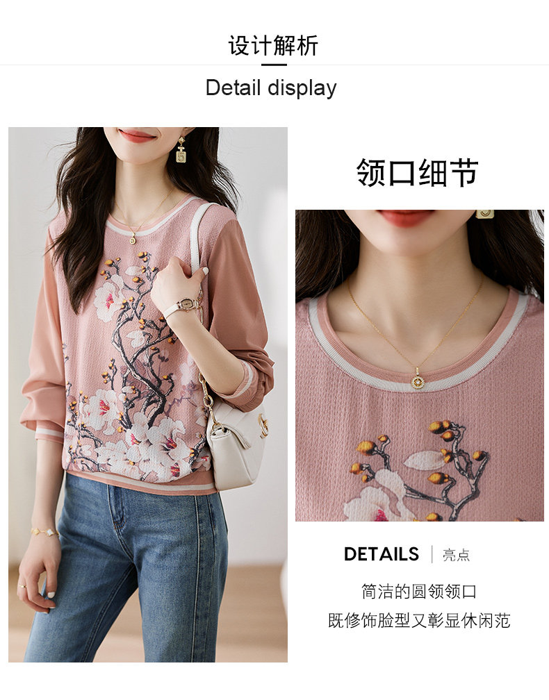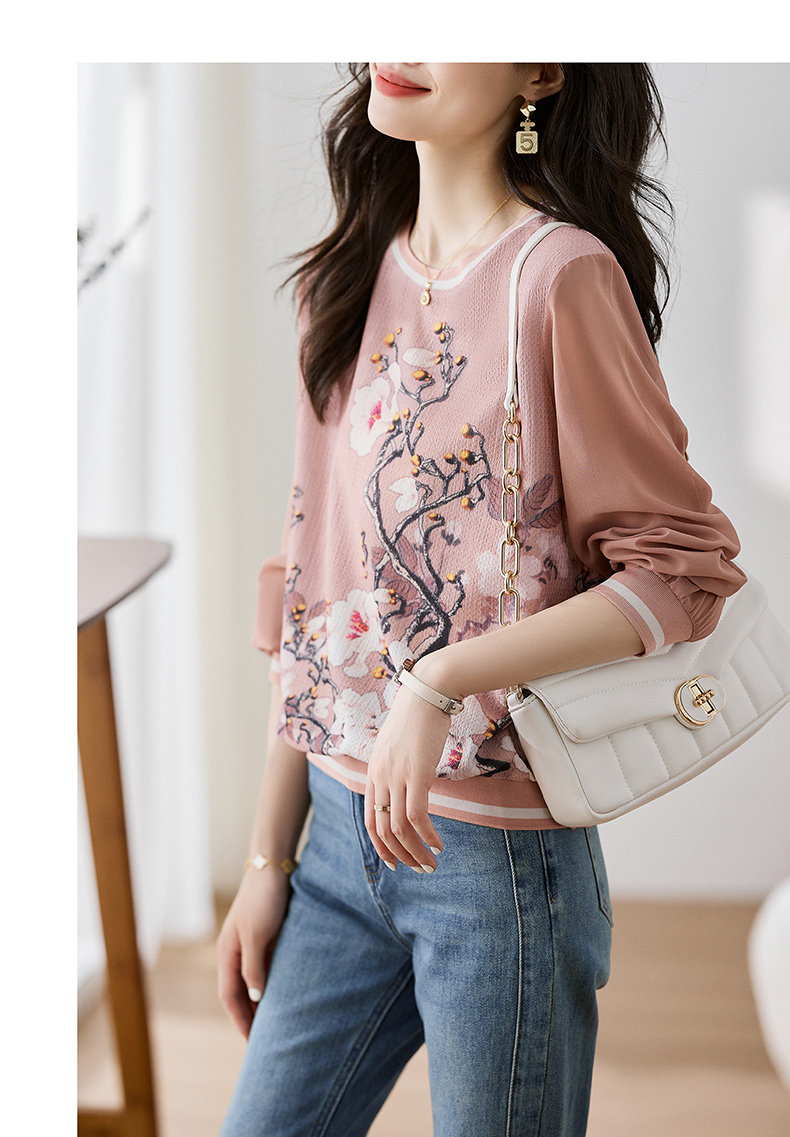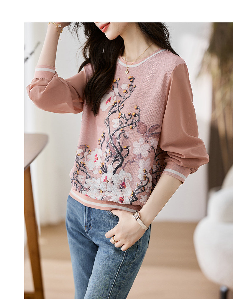 RM25936#新款高端数码针织提花皱长袖宽松拼接气质套头百搭上衣