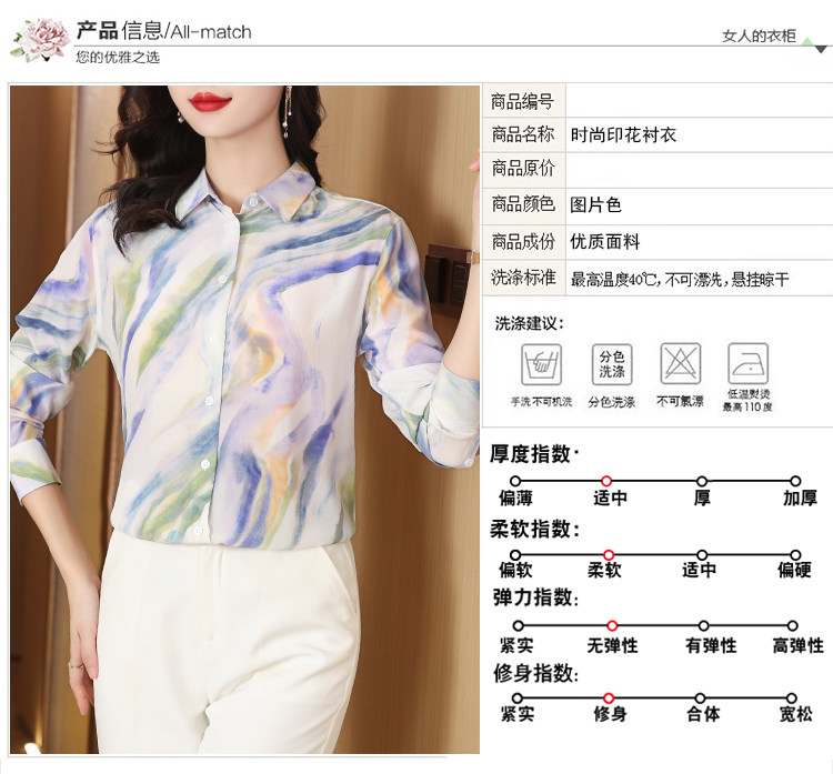 PF22119#真丝衬衫女士长袖新款妈妈洋气复古印花桑蚕丝绸上衣女女裝貨源...