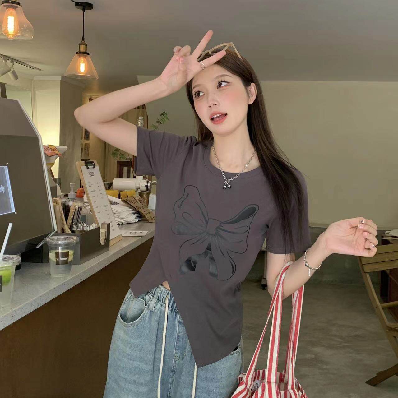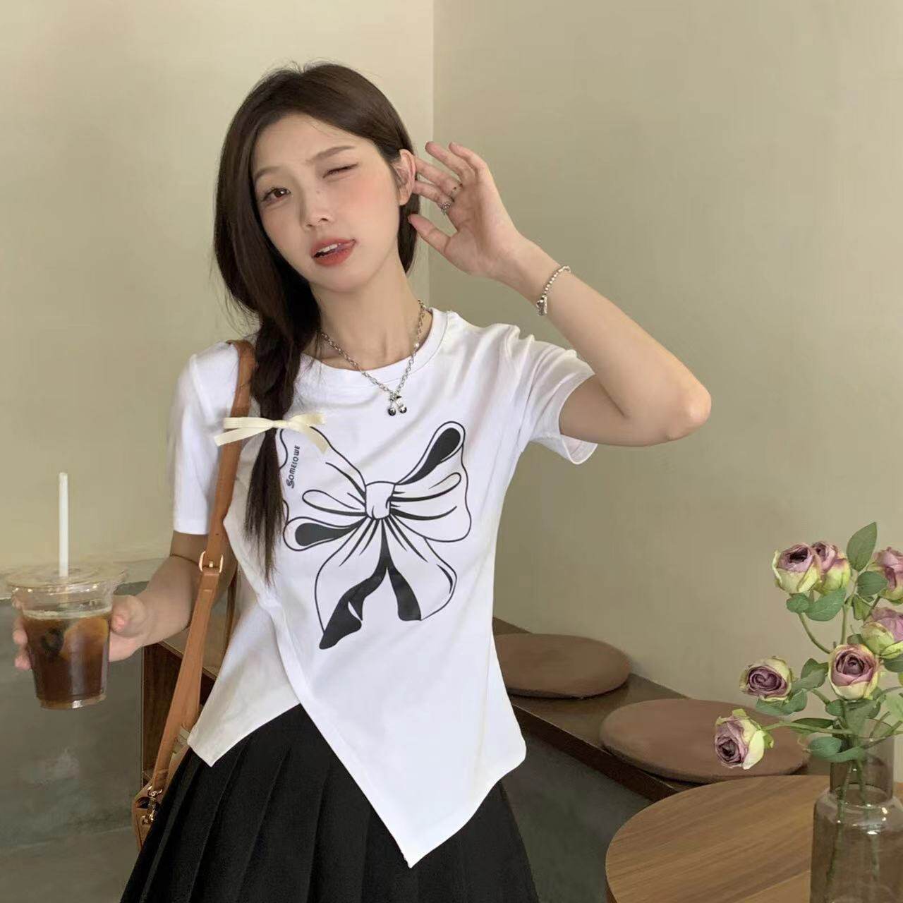 RM25942#新款大码胖MM设计感印花短袖t恤显瘦上衣