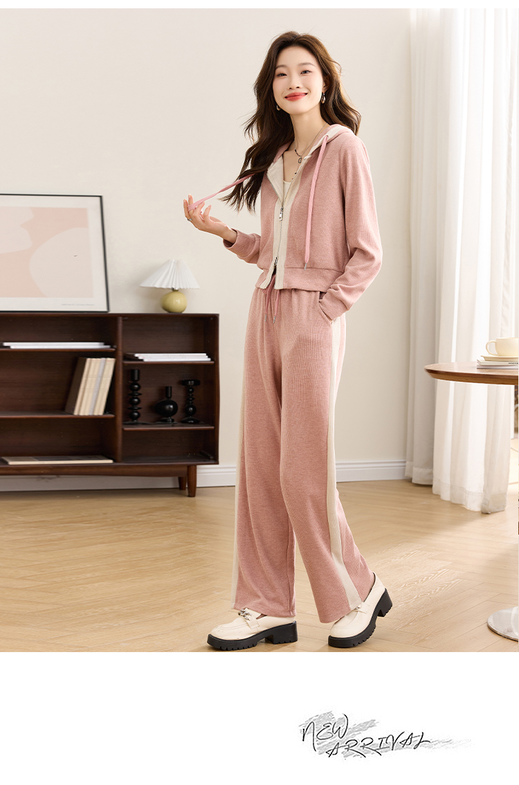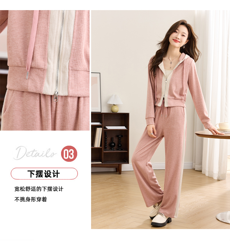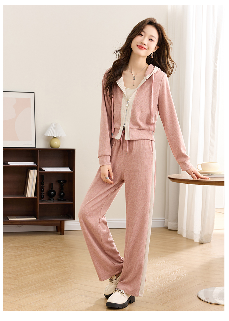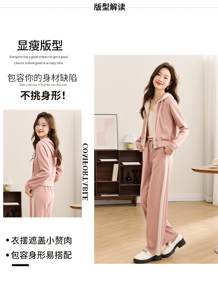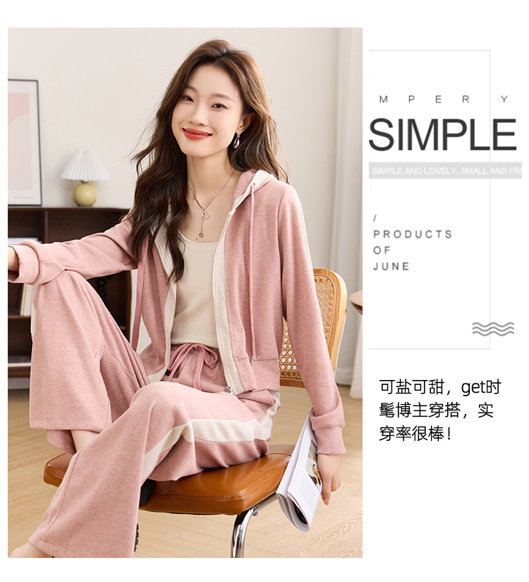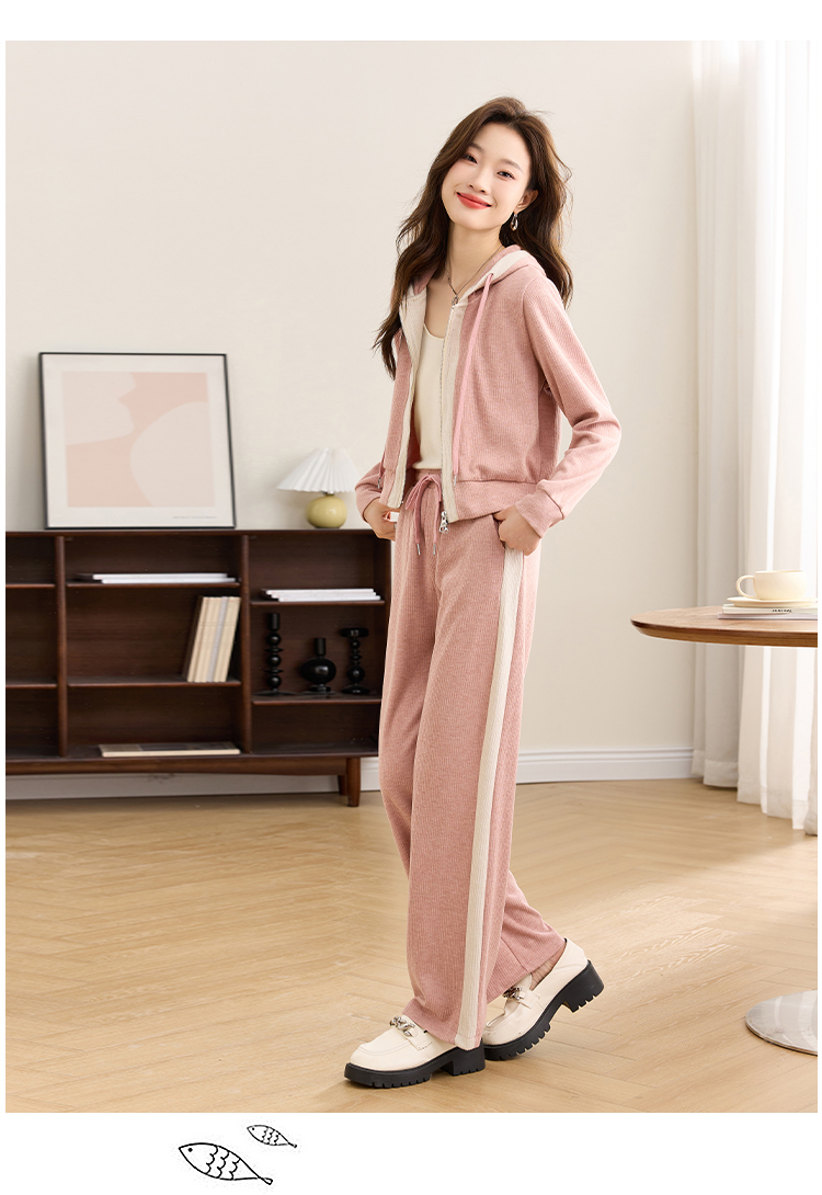 RM25958#运动休闲撞色秋冬季2023年新款外套阔腿裤时尚洋气两件套装女