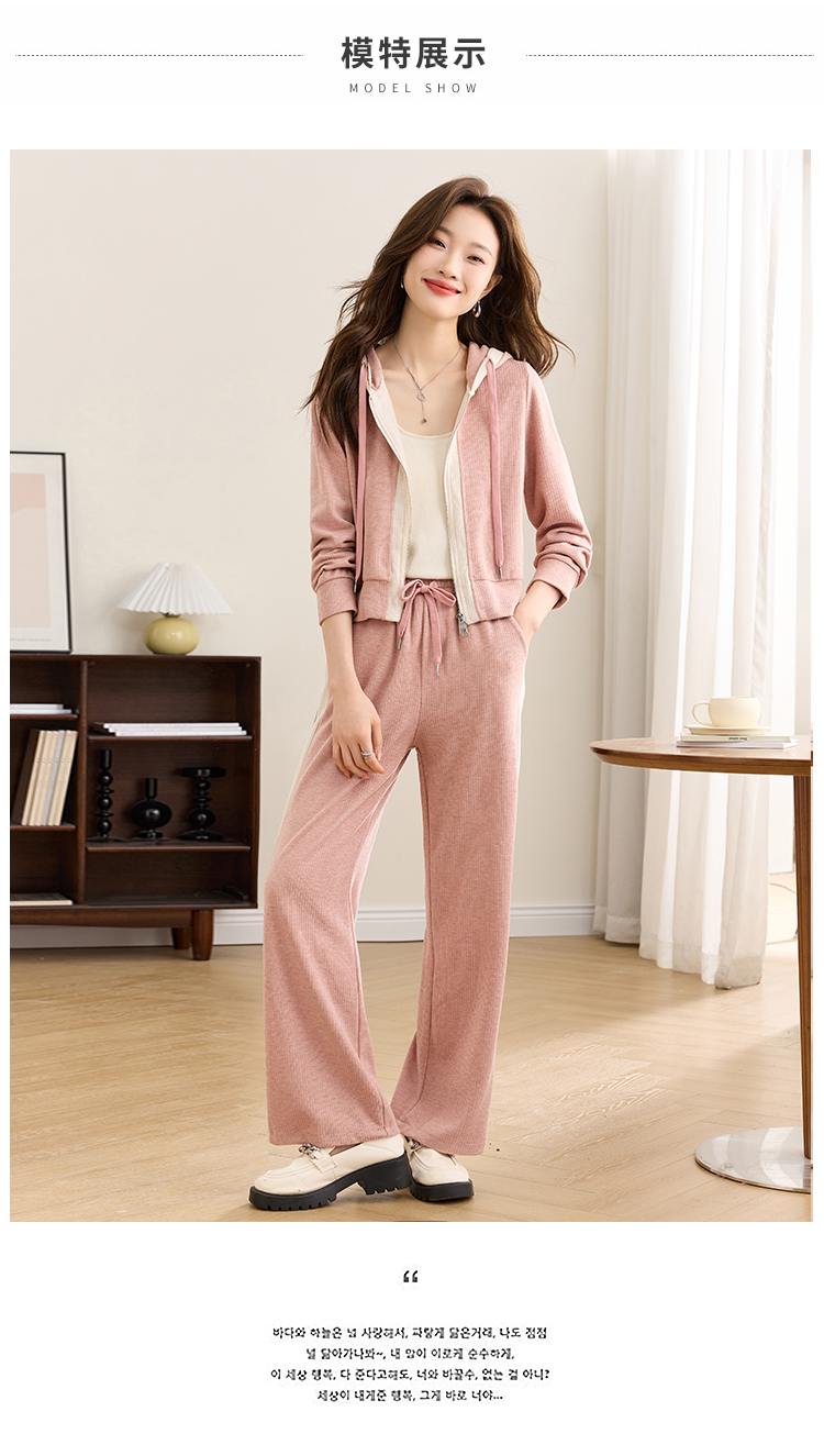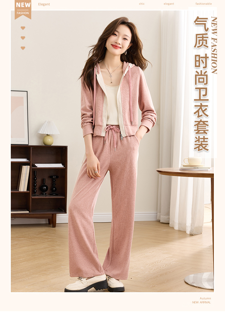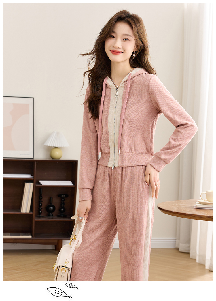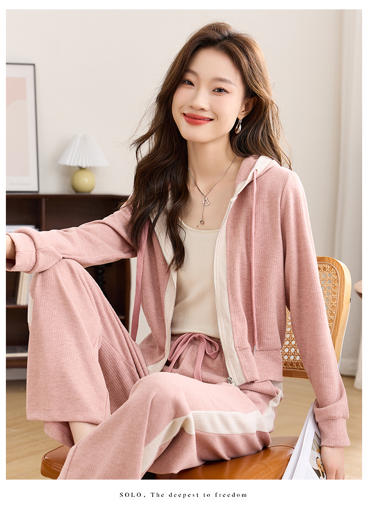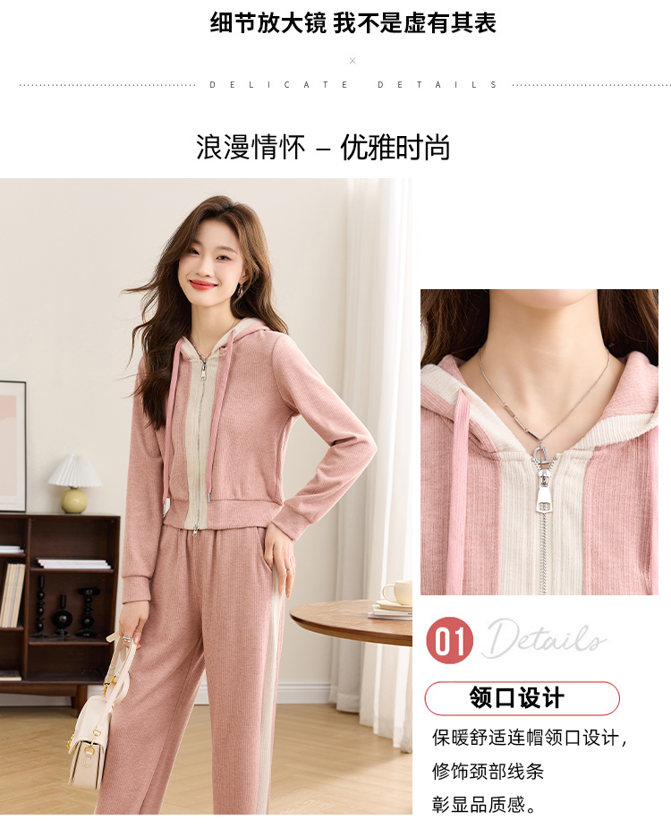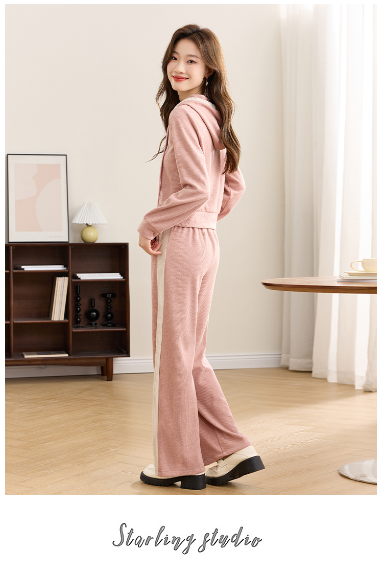 RM25958#运动休闲撞色秋冬季2023年新款外套阔腿裤时尚洋气两件套装女