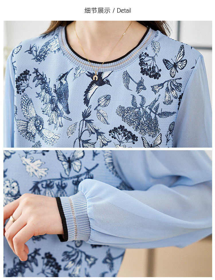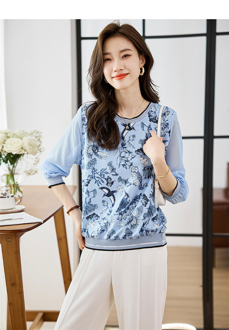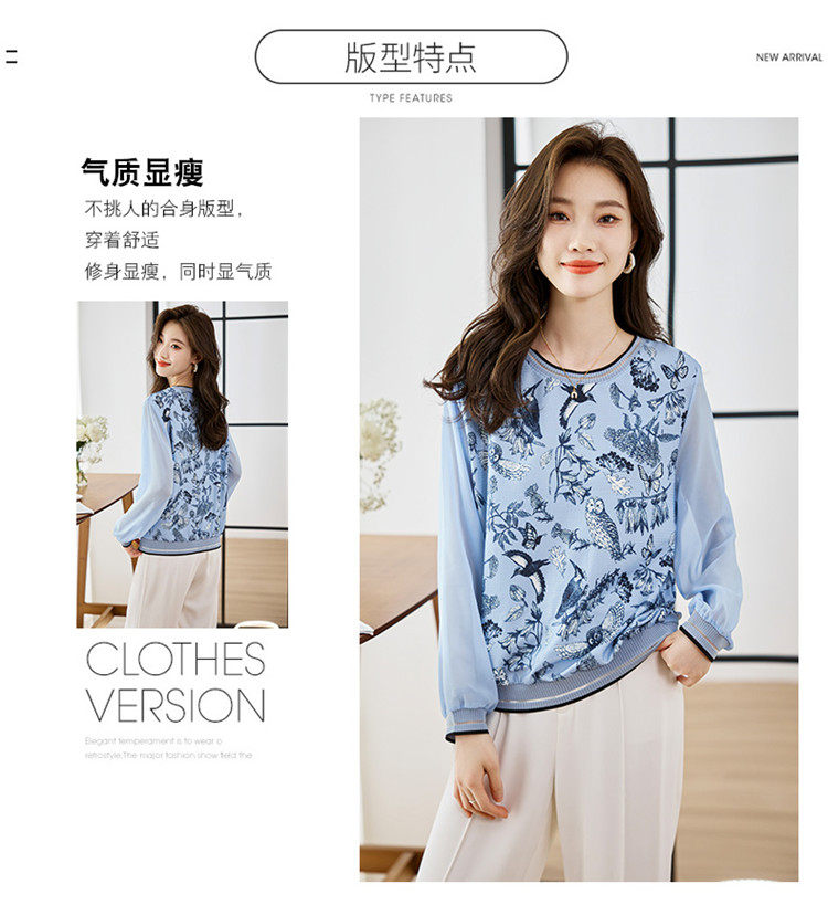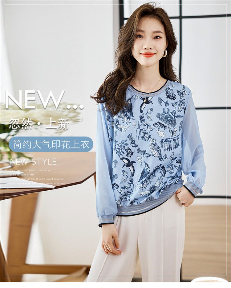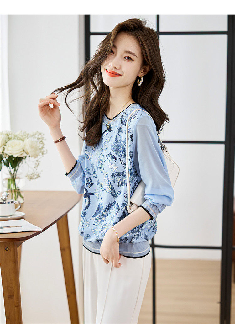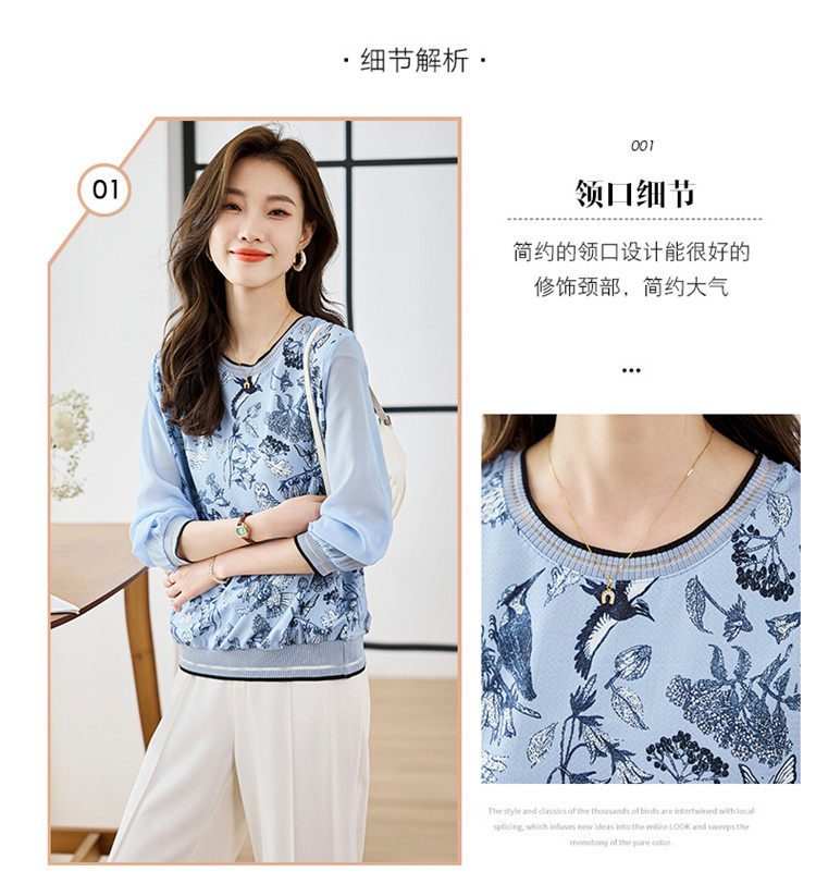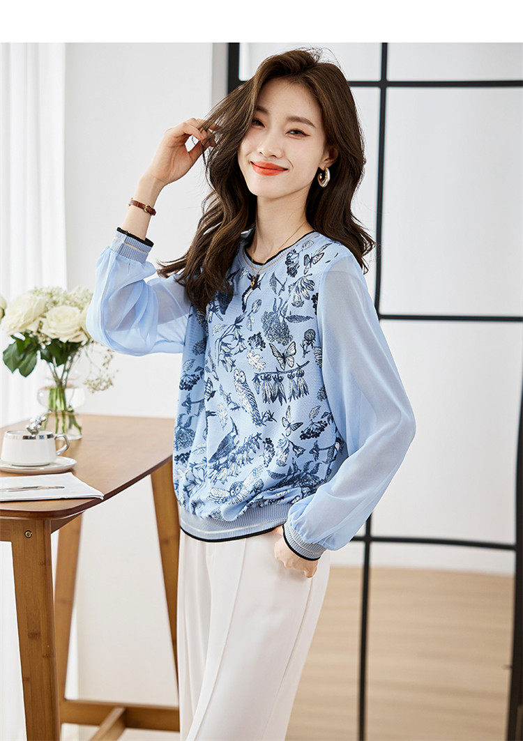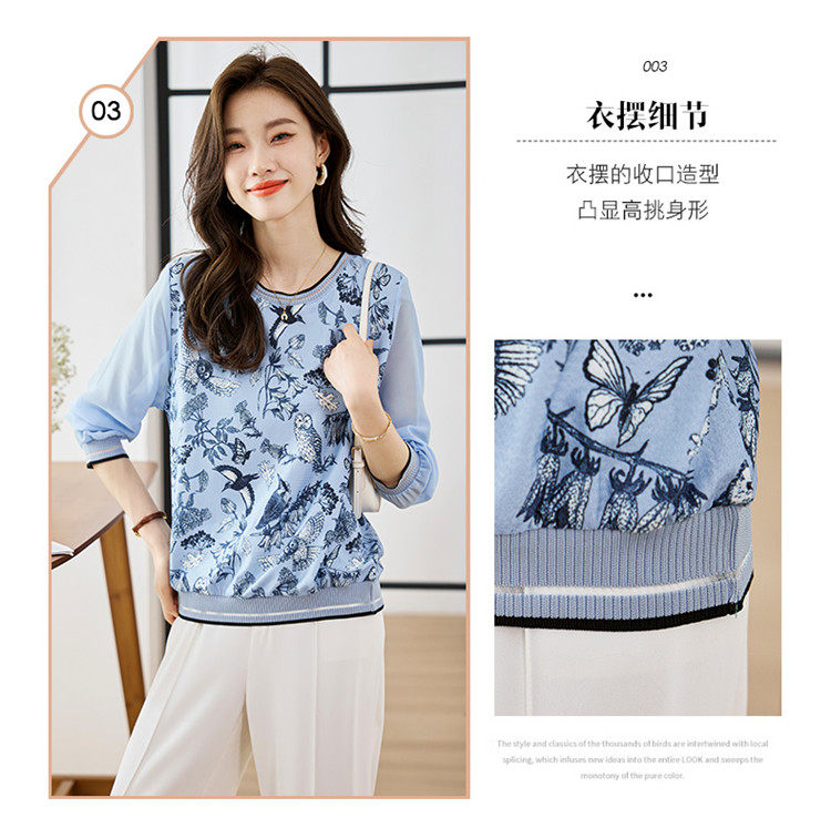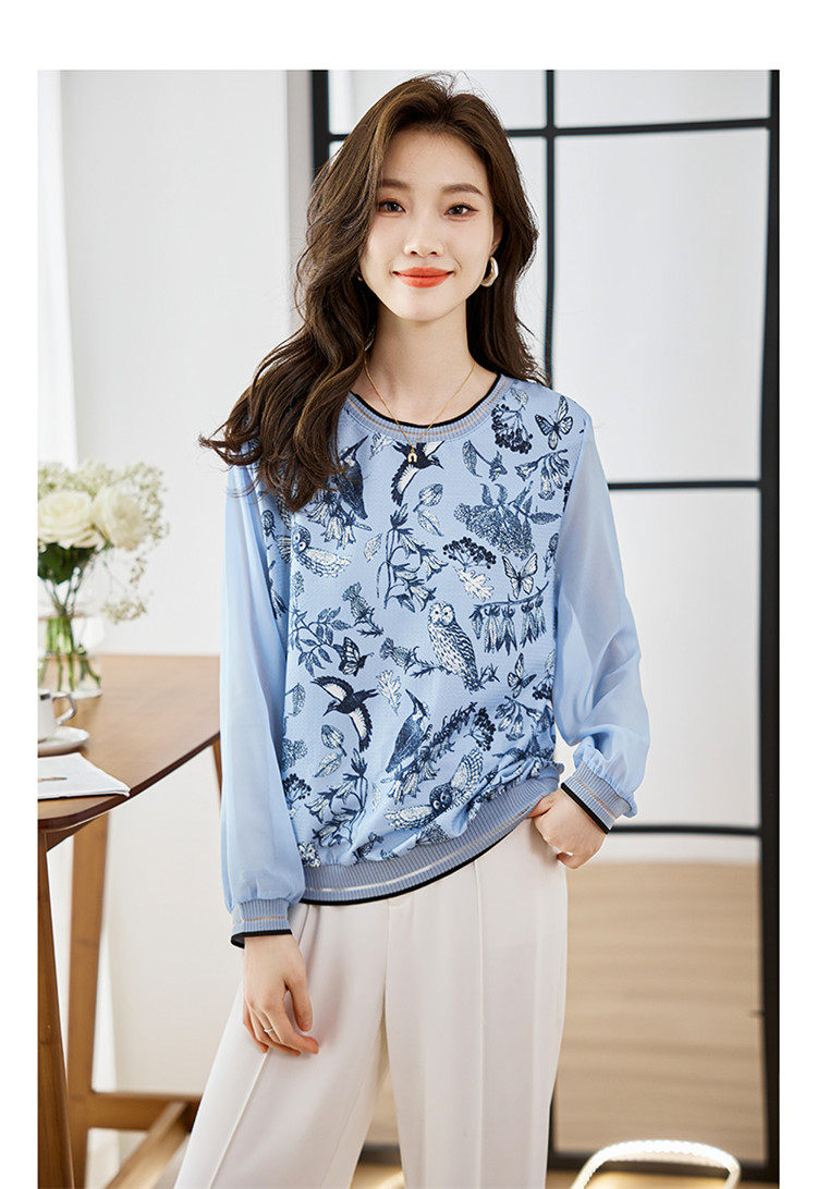 RM25959#新款高端数码针织提花皱长袖宽松拼接气质套头百搭上衣