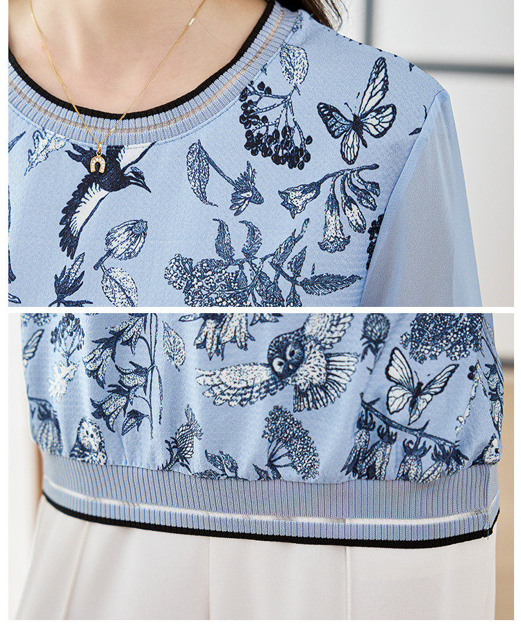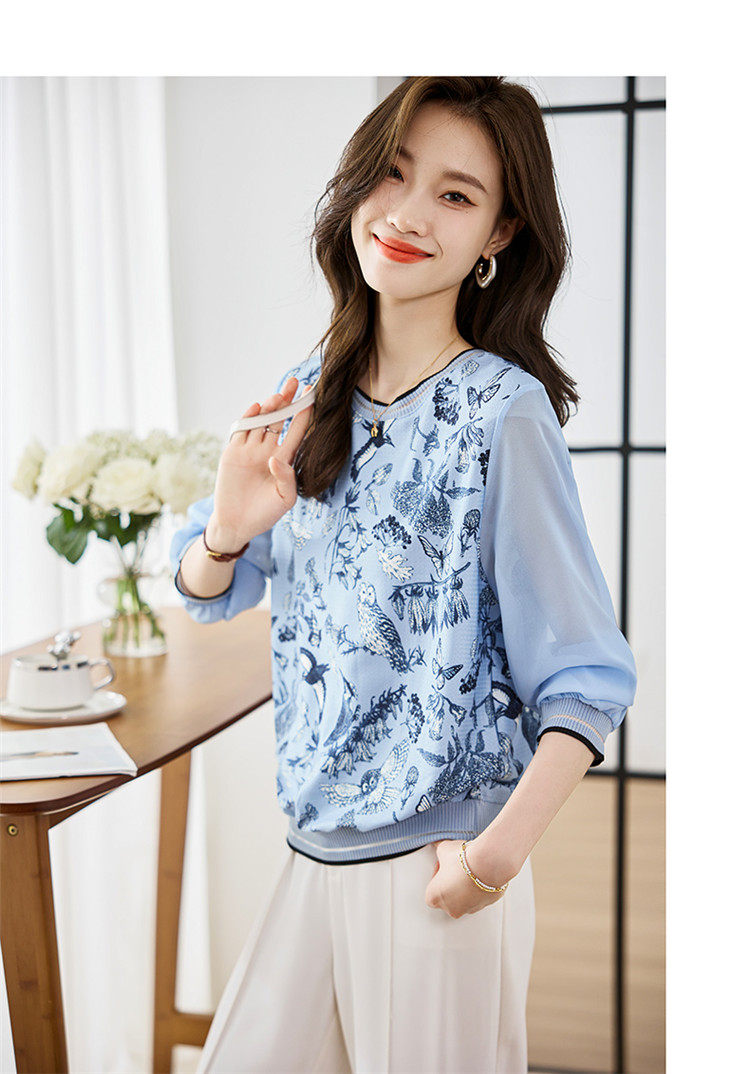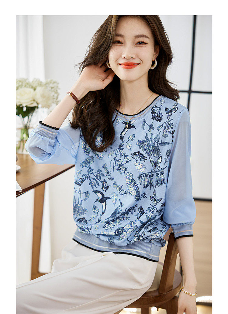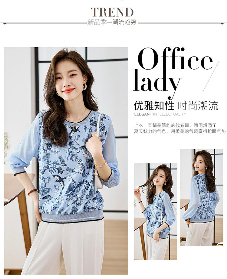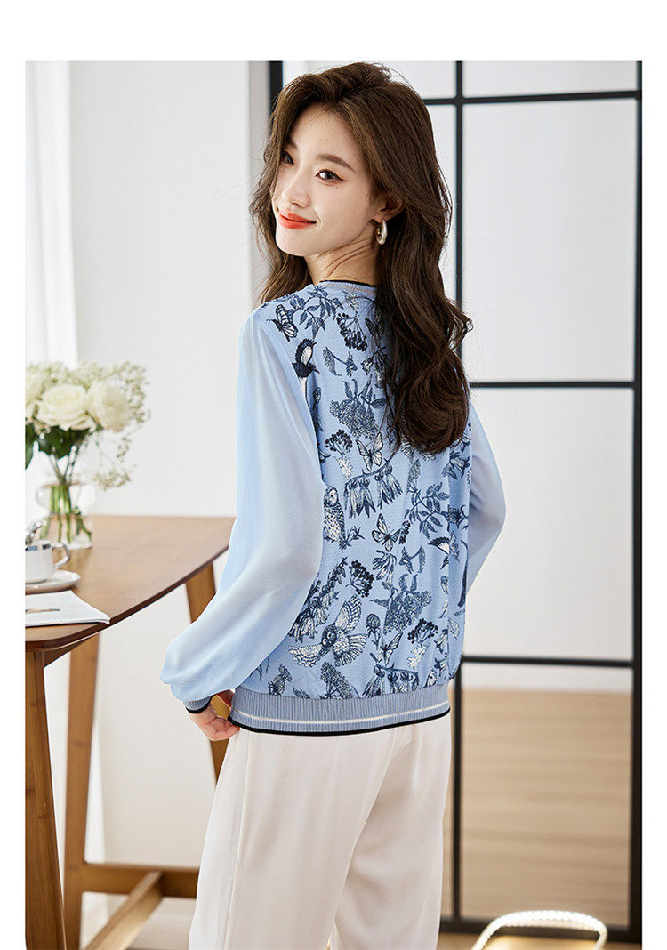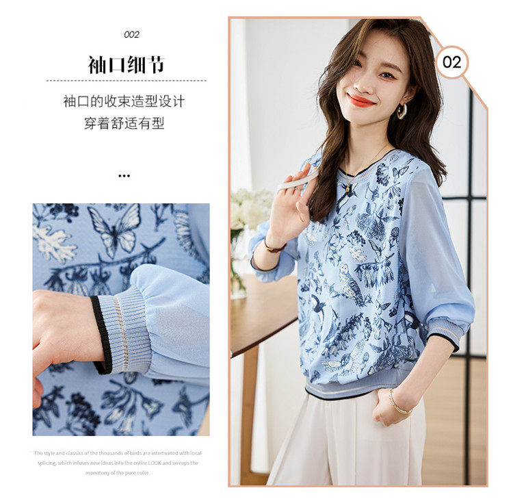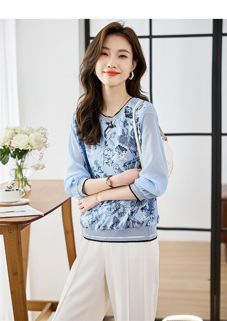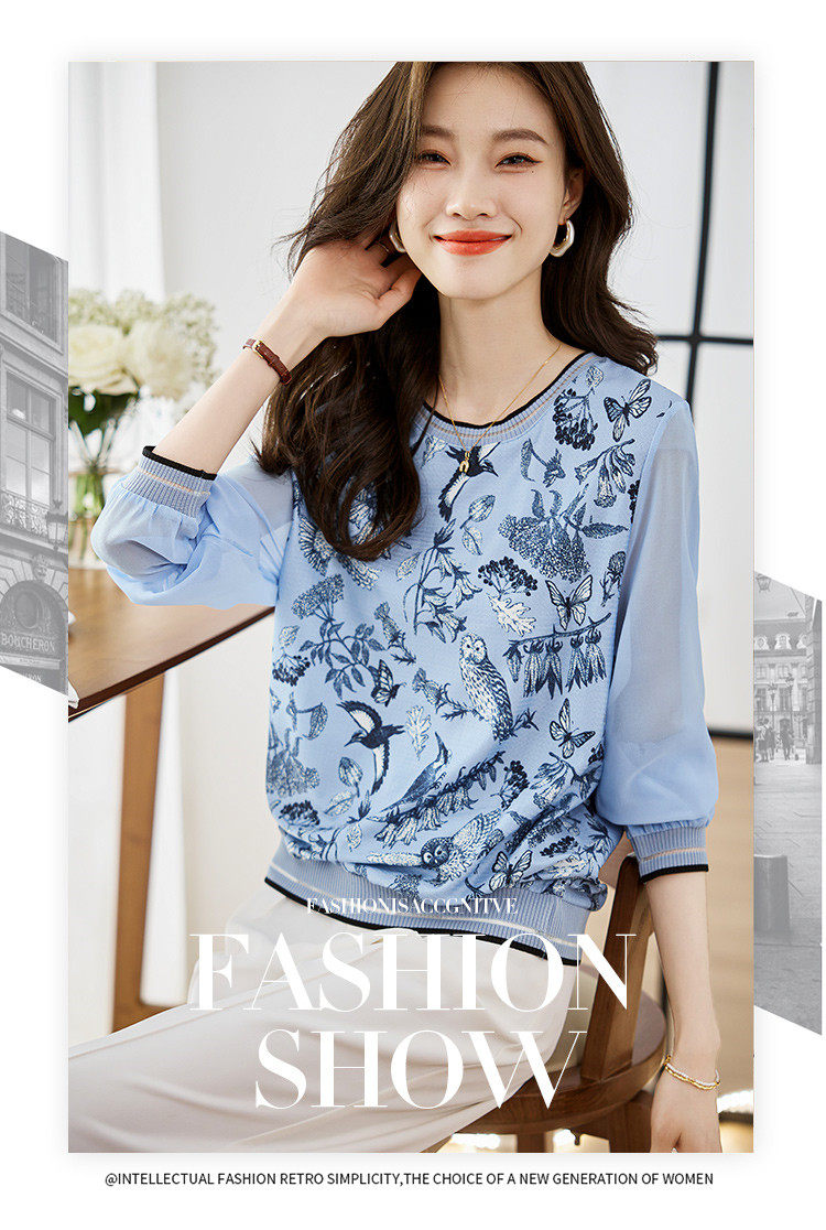 RM25959#新款高端数码针织提花皱长袖宽松拼接气质套头百搭上衣