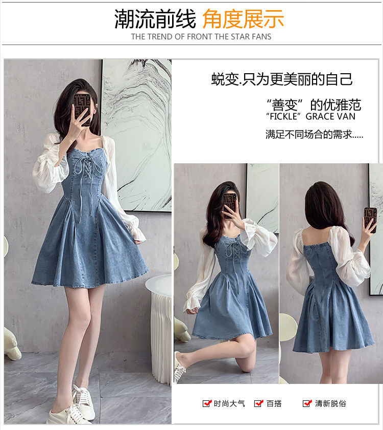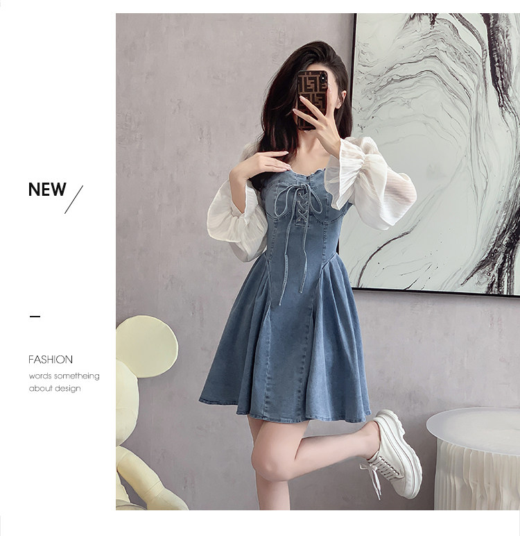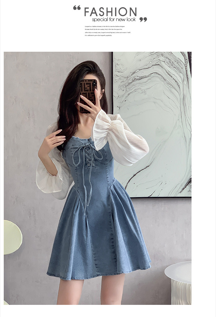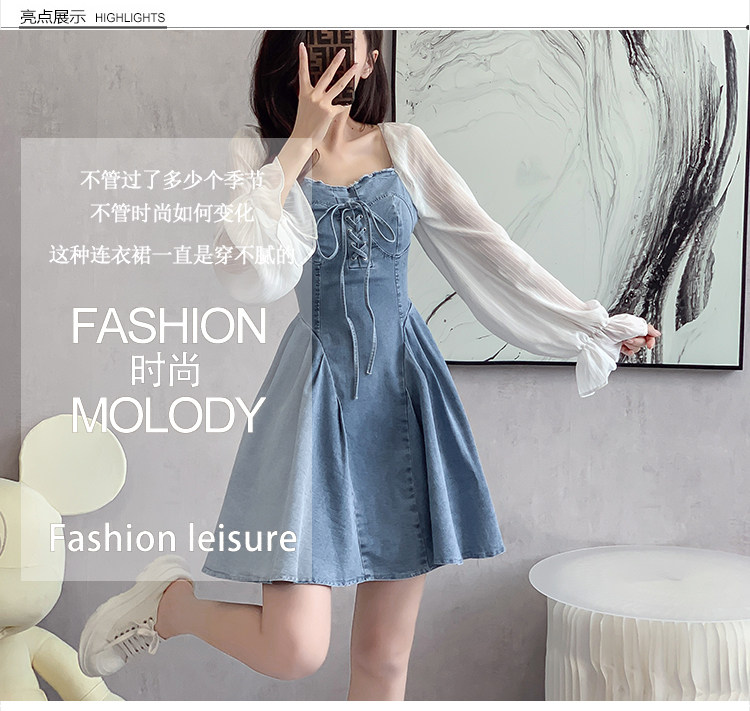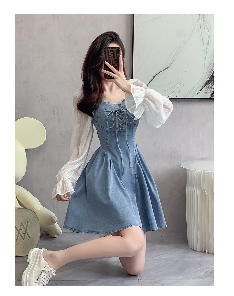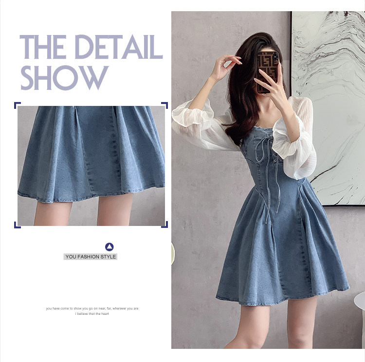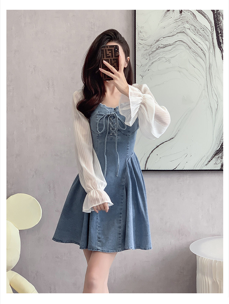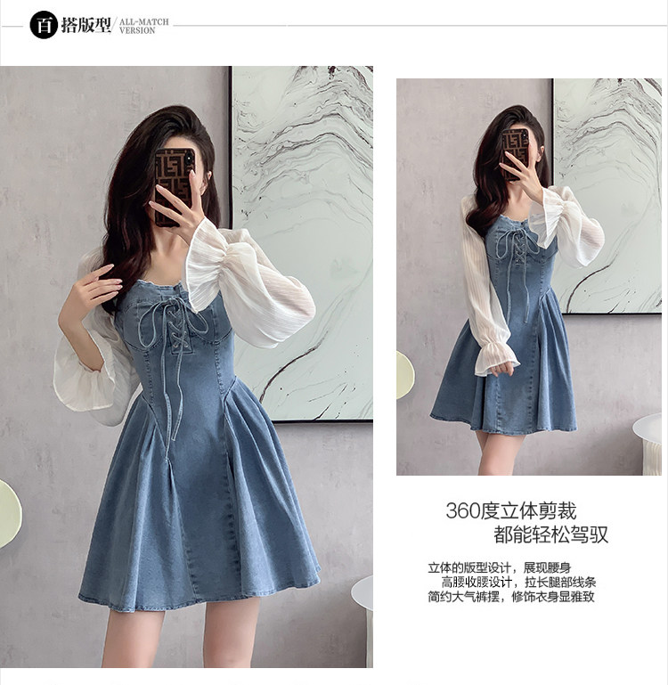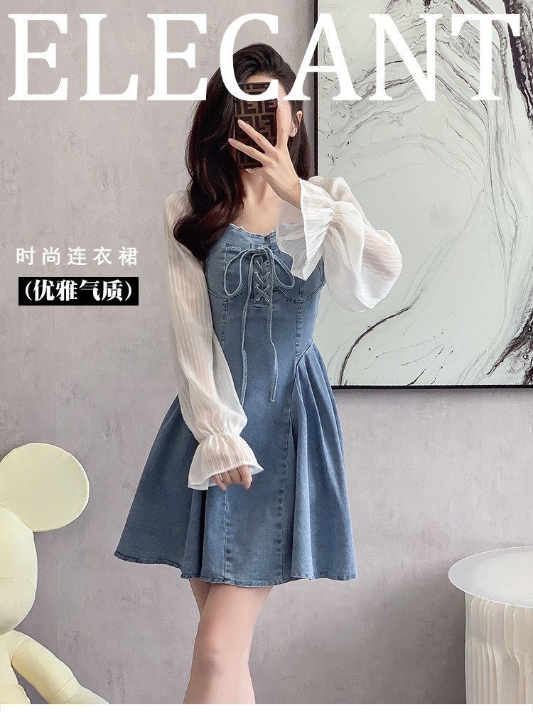 RM25962#法式高级感连衣裙女秋季小个子系带蝴蝶结短款牛仔裙子
