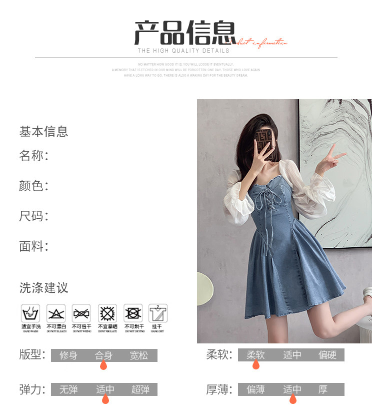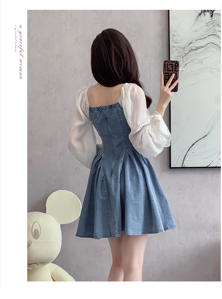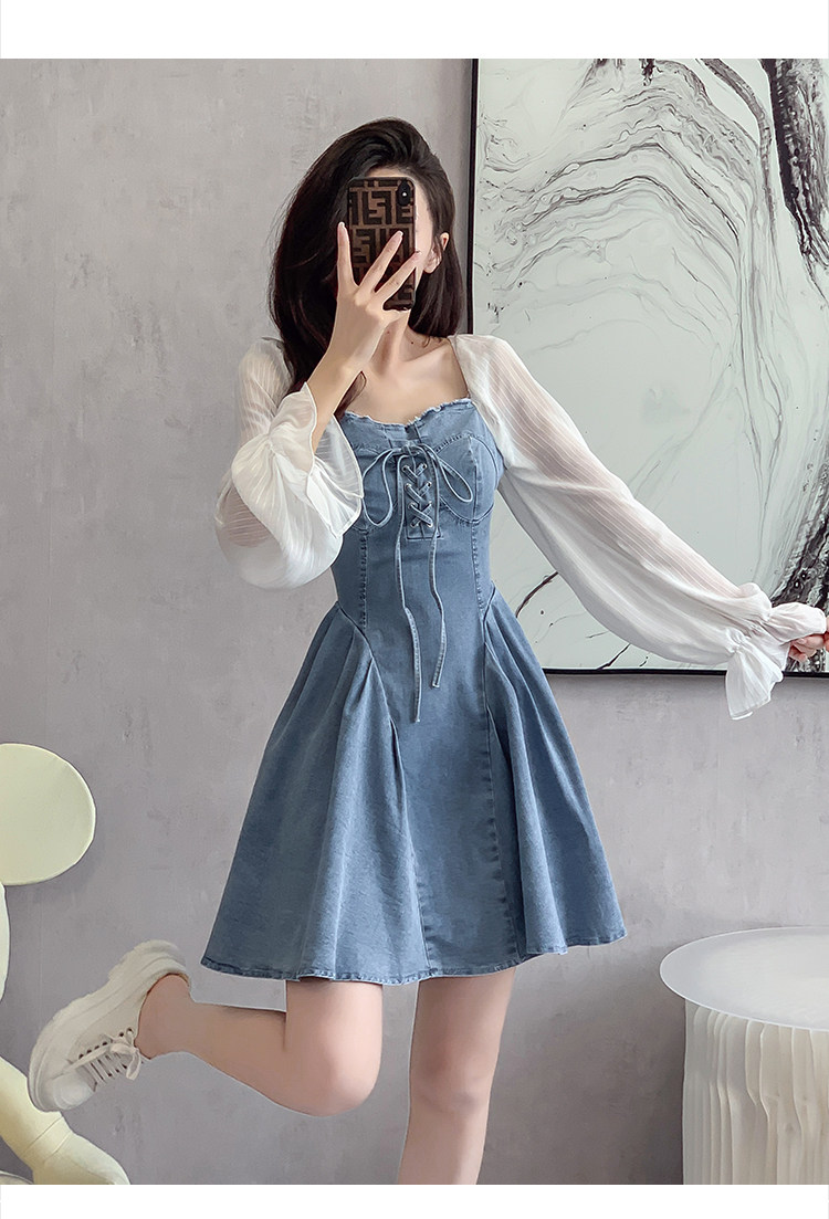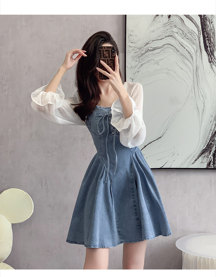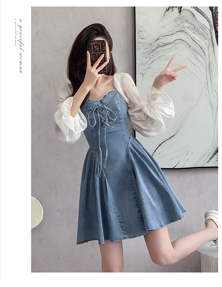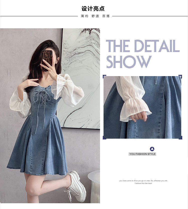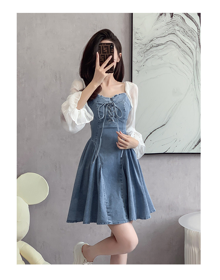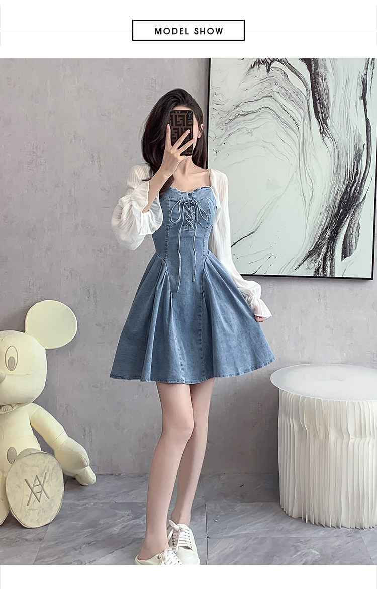 RM25962#法式高级感连衣裙女秋季小个子系带蝴蝶结短款牛仔裙子