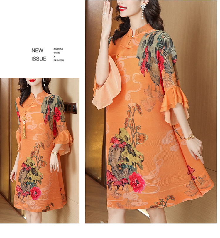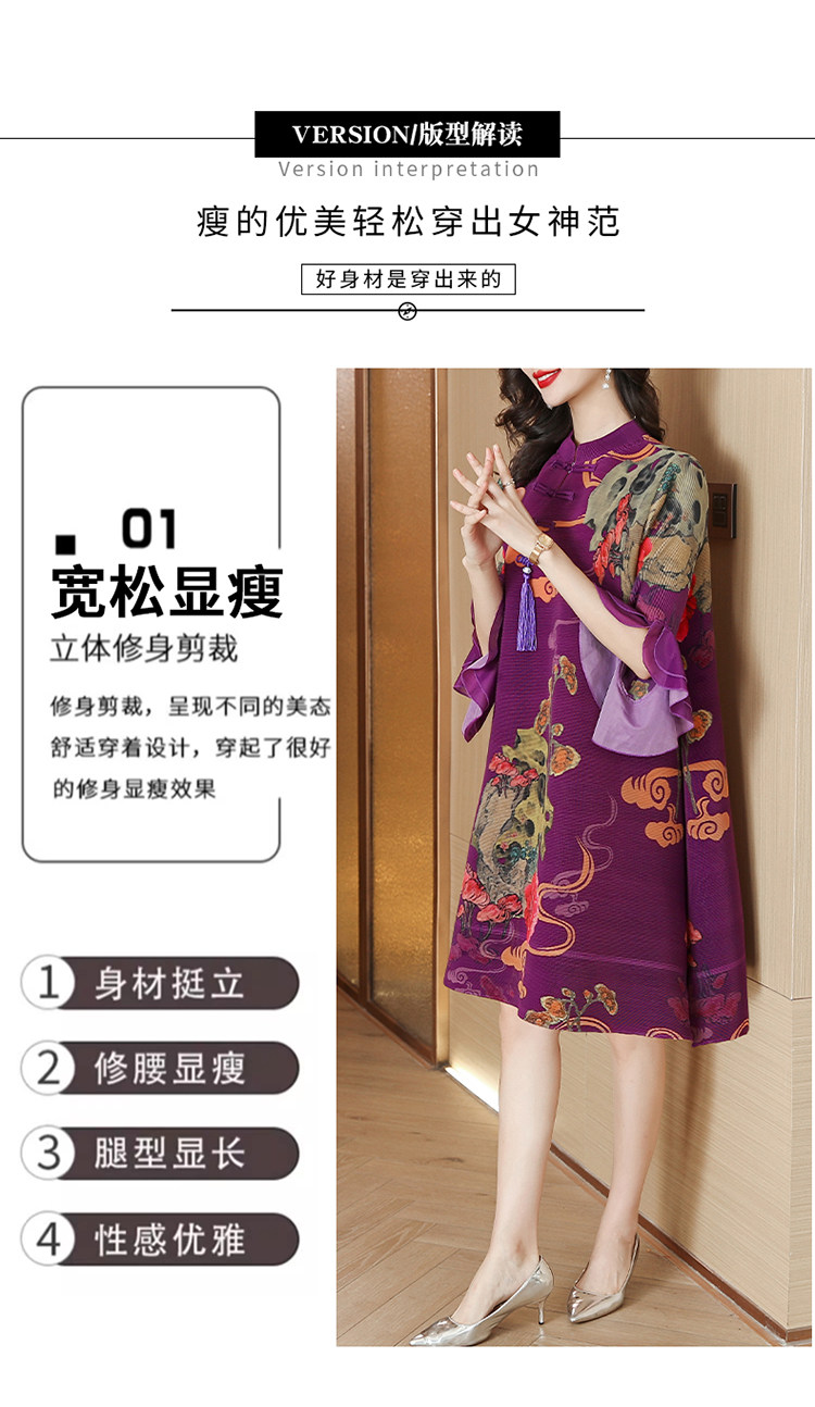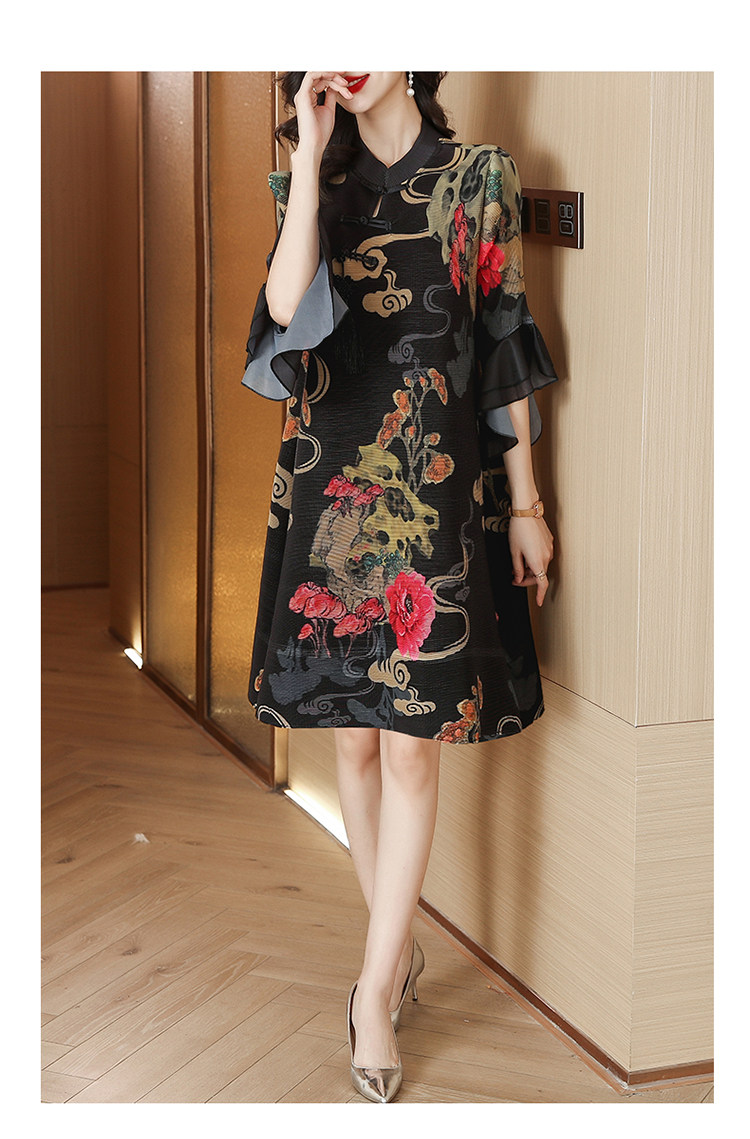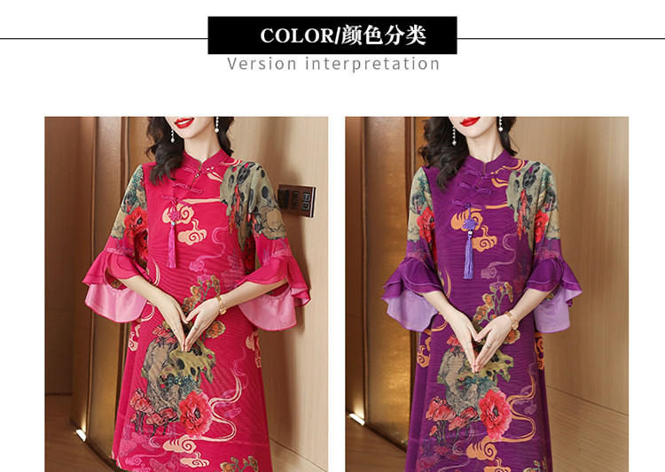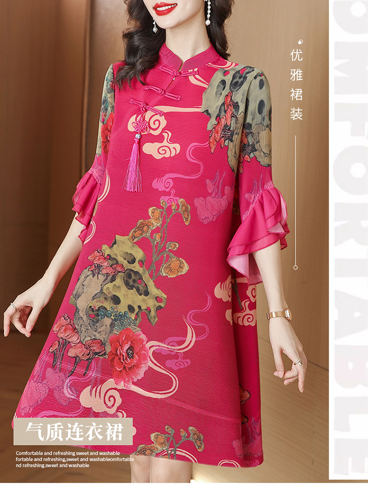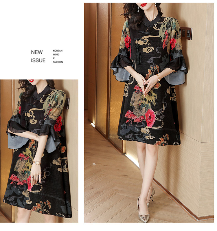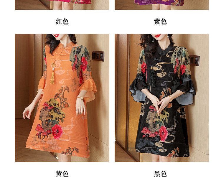RM25963#中式连衣裙新款减龄洋气中老年女装改良旗袍大码女装