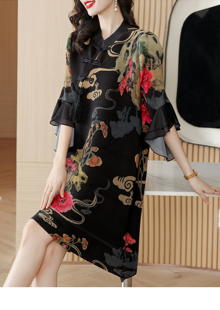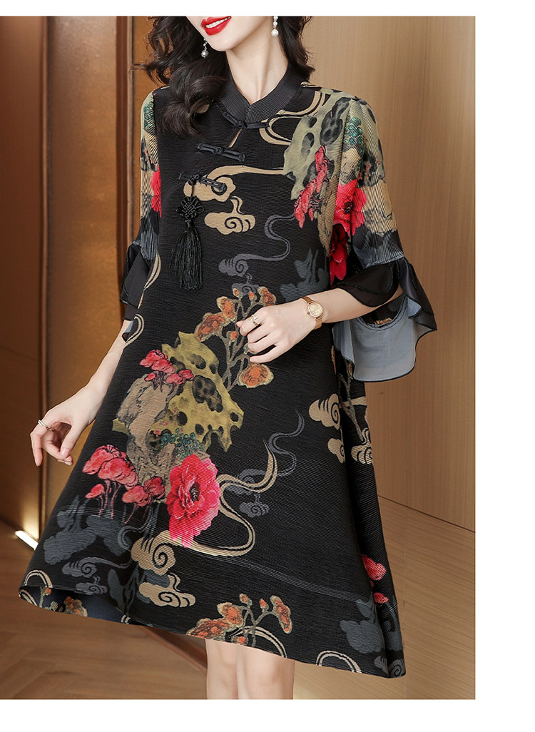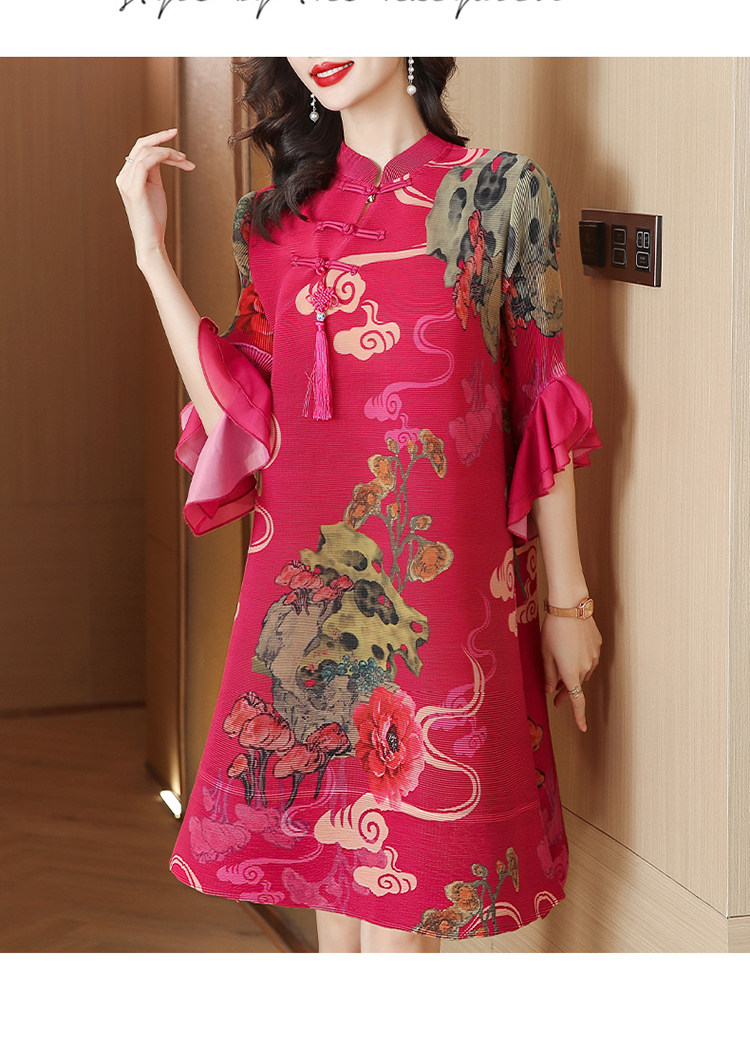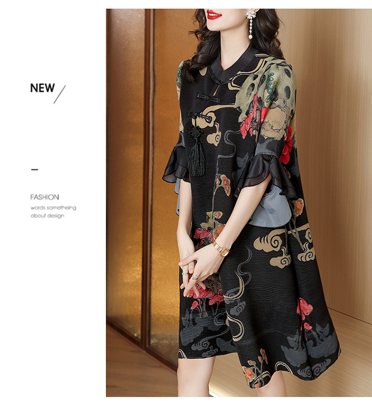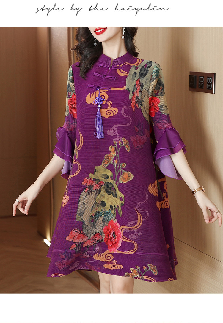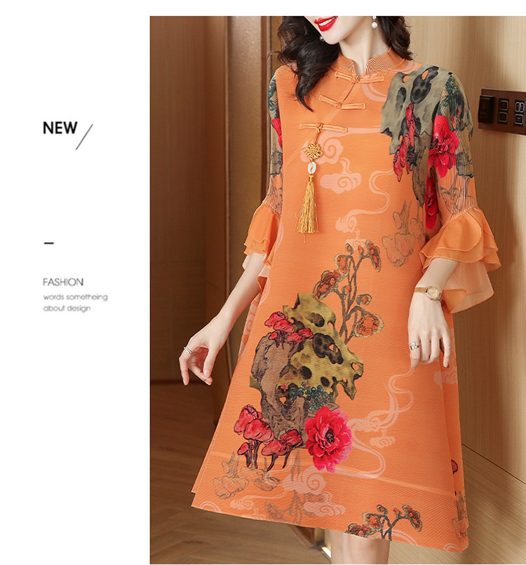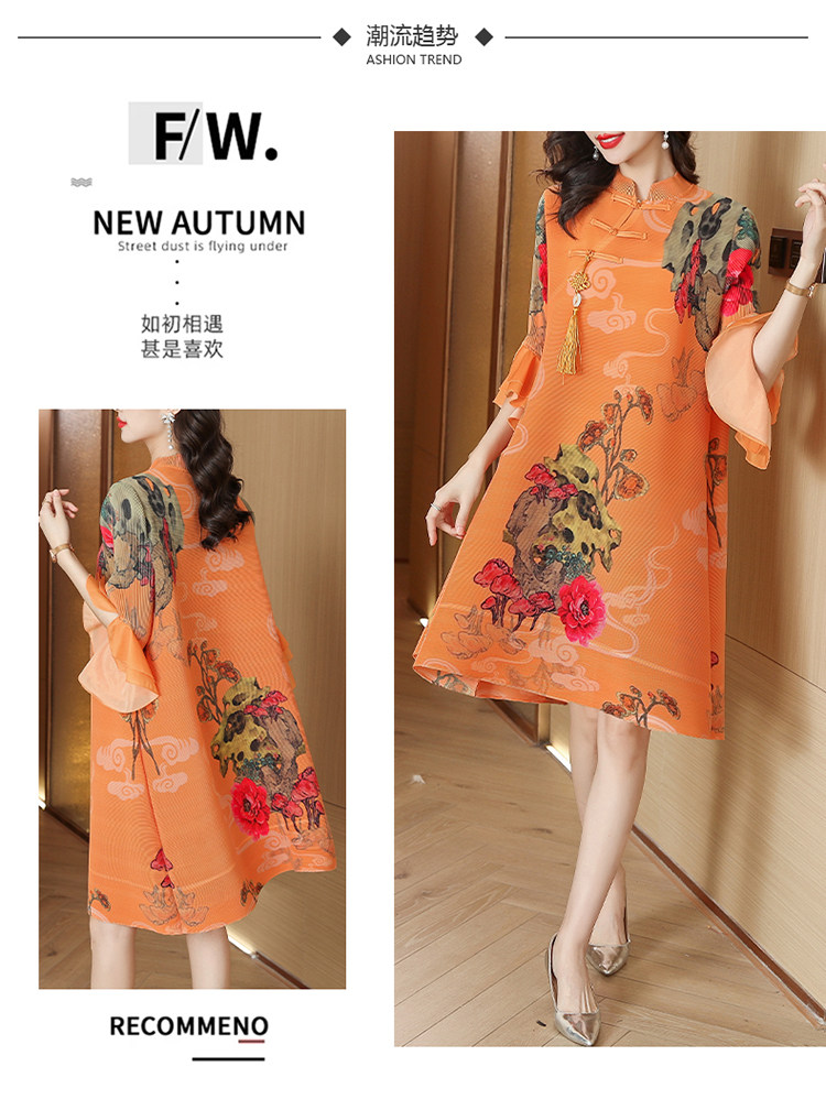 RM25963#中式连衣裙新款减龄洋气中老年女装改良旗袍大码女装