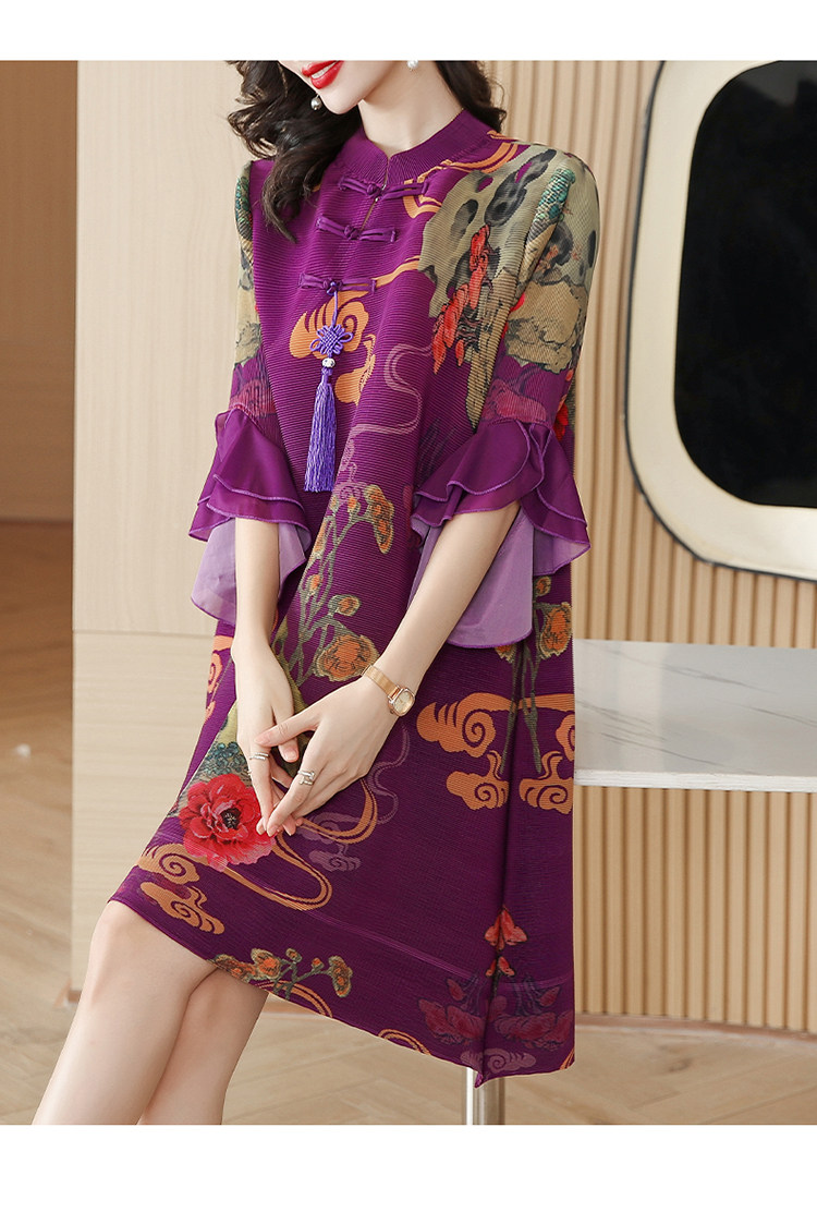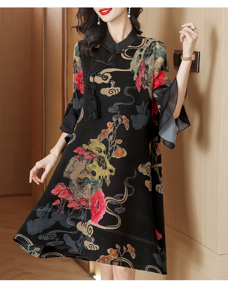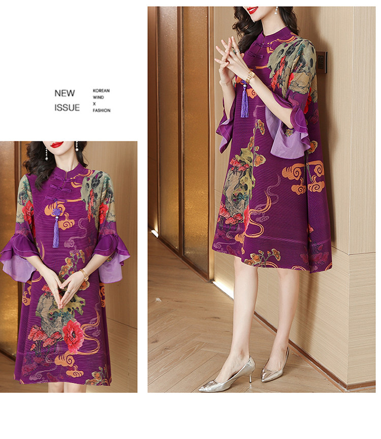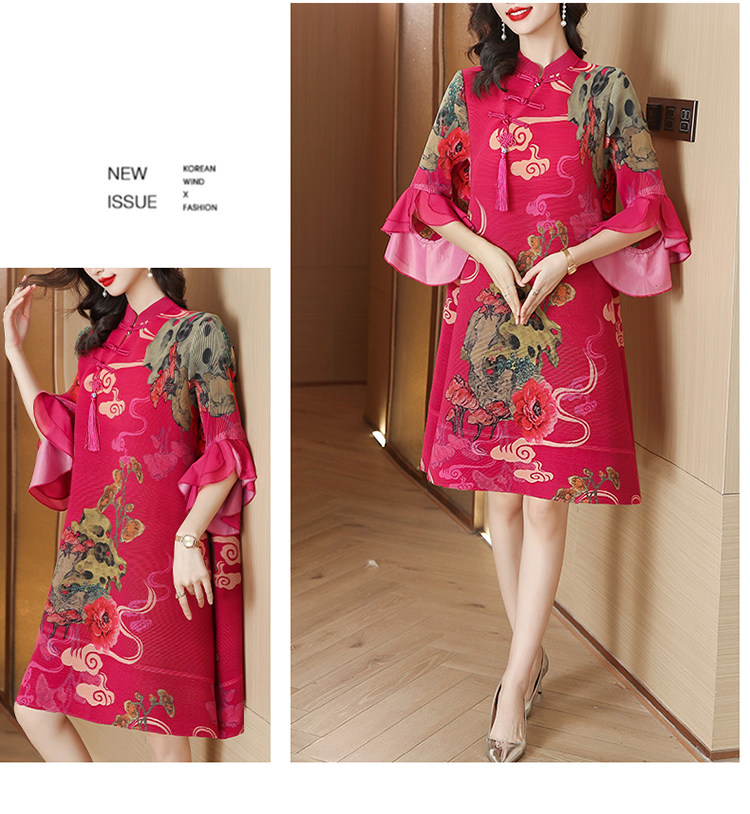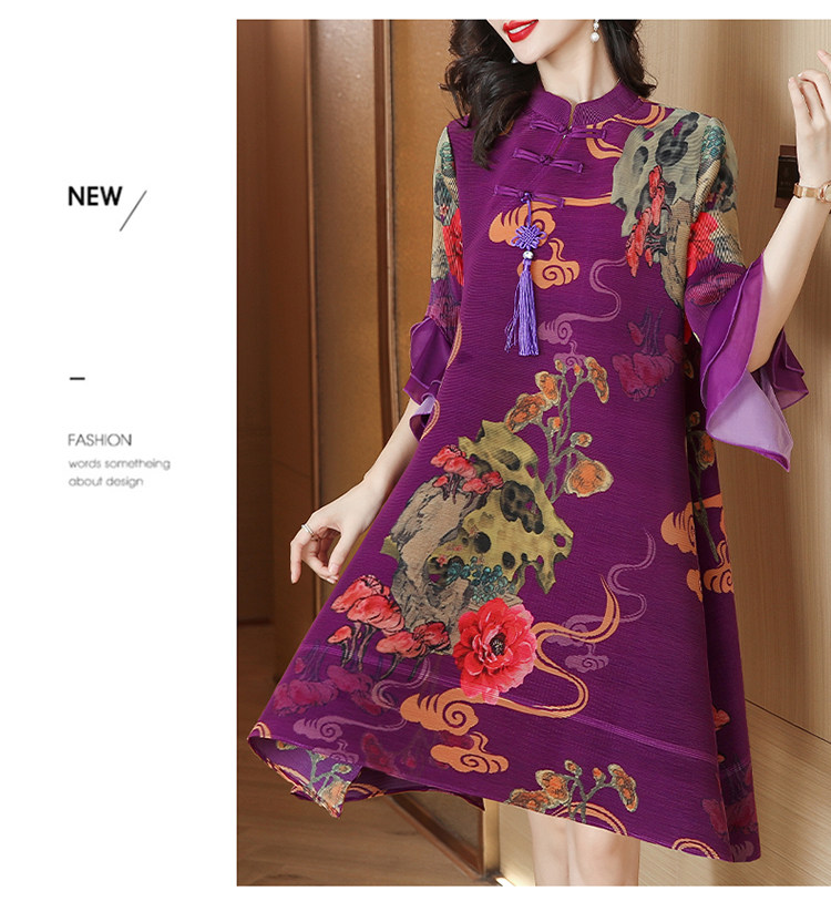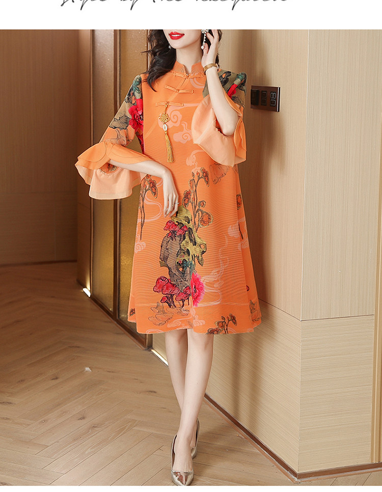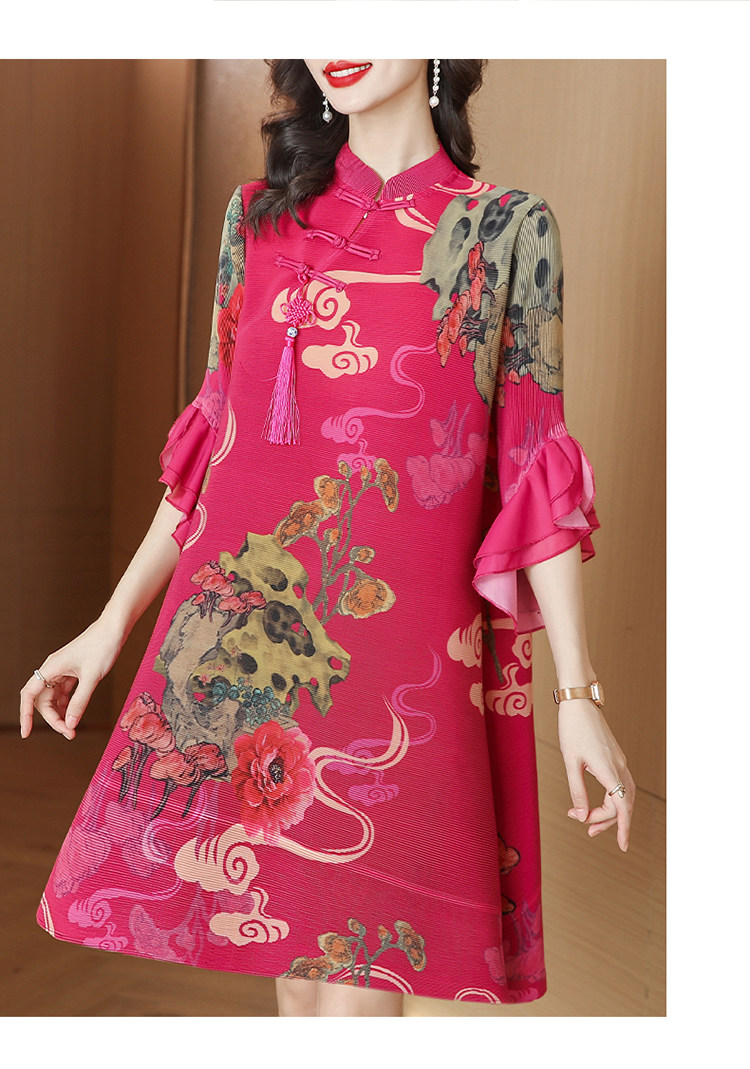 RM25963#中式连衣裙新款减龄洋气中老年女装改良旗袍大码女装