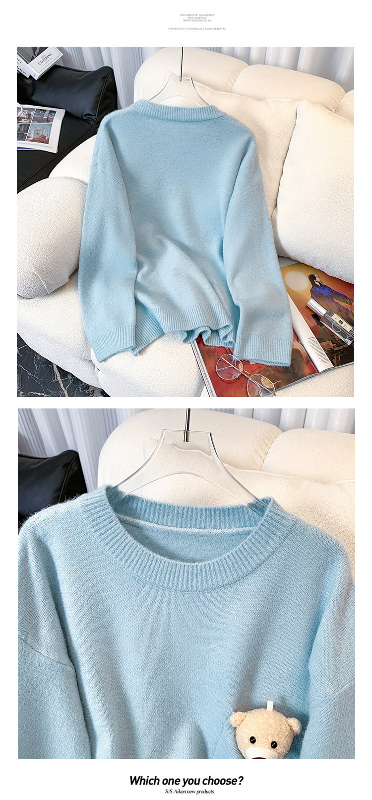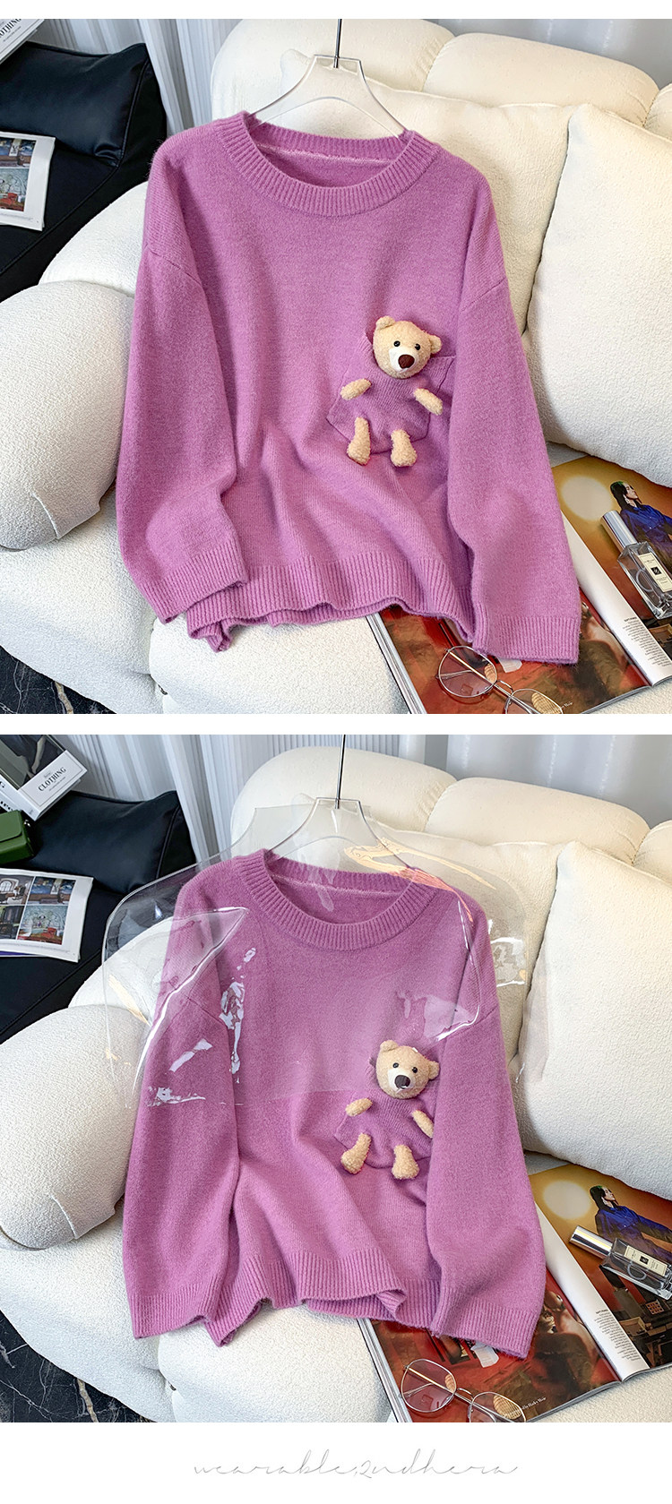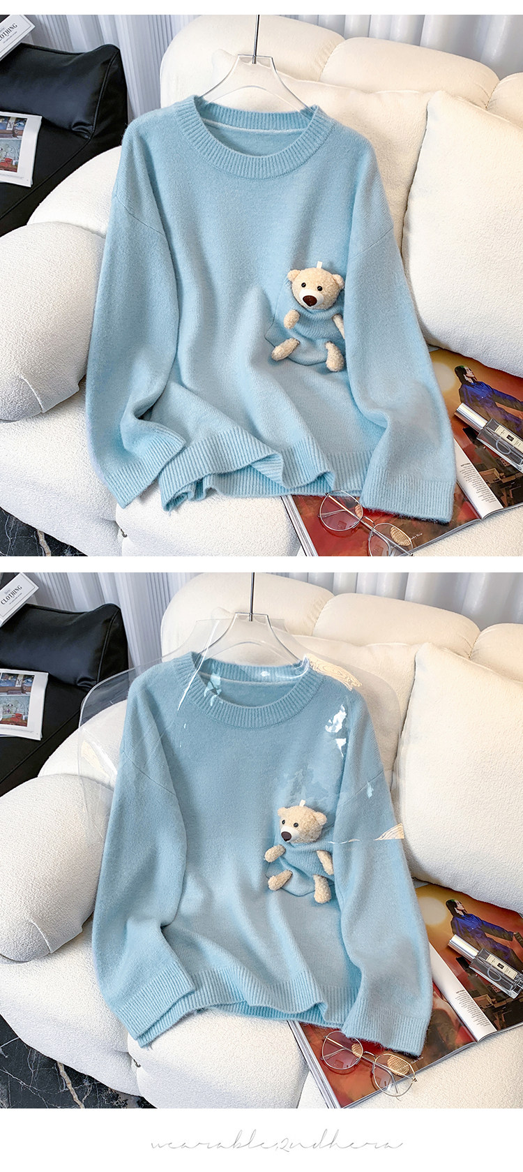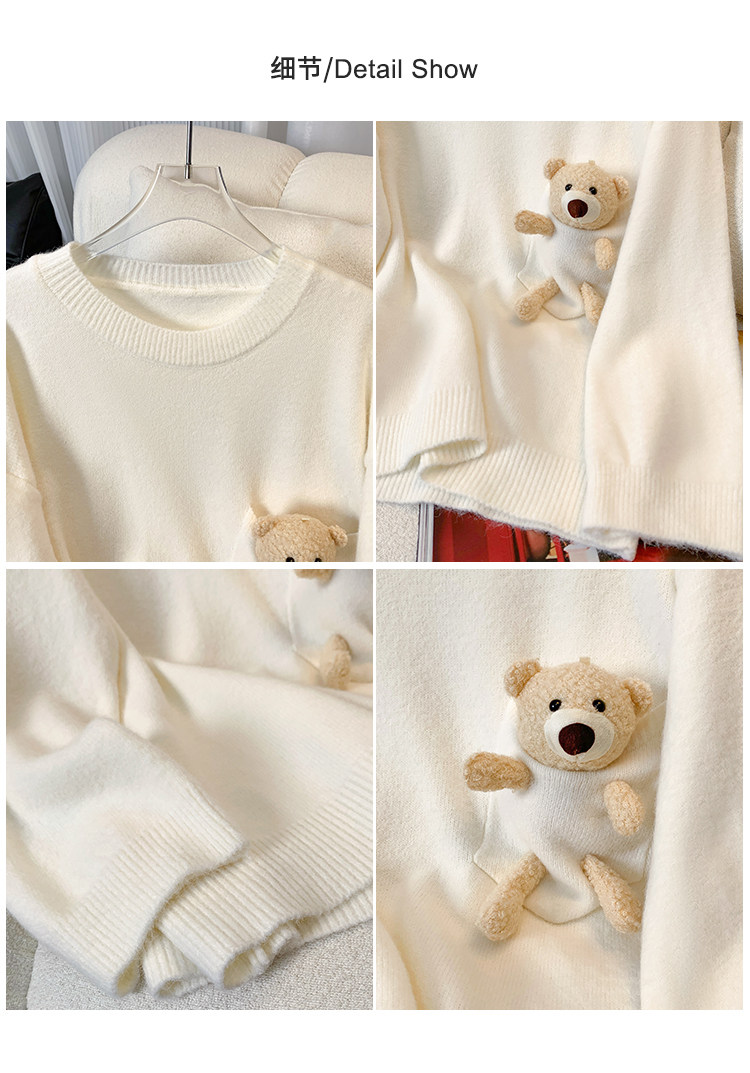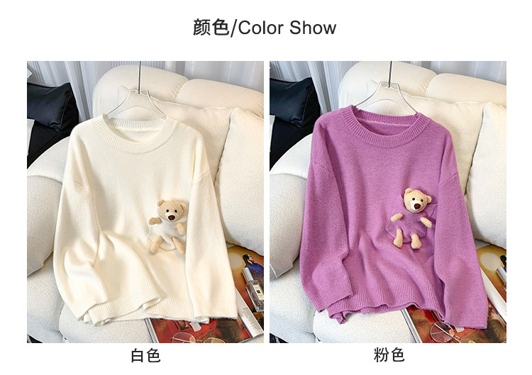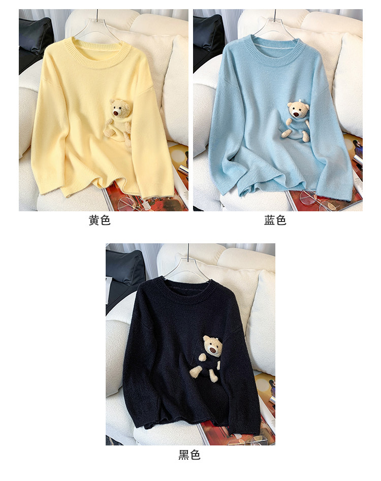 RM25964#韩版新款慵懒风针织套头小熊针织毛衣