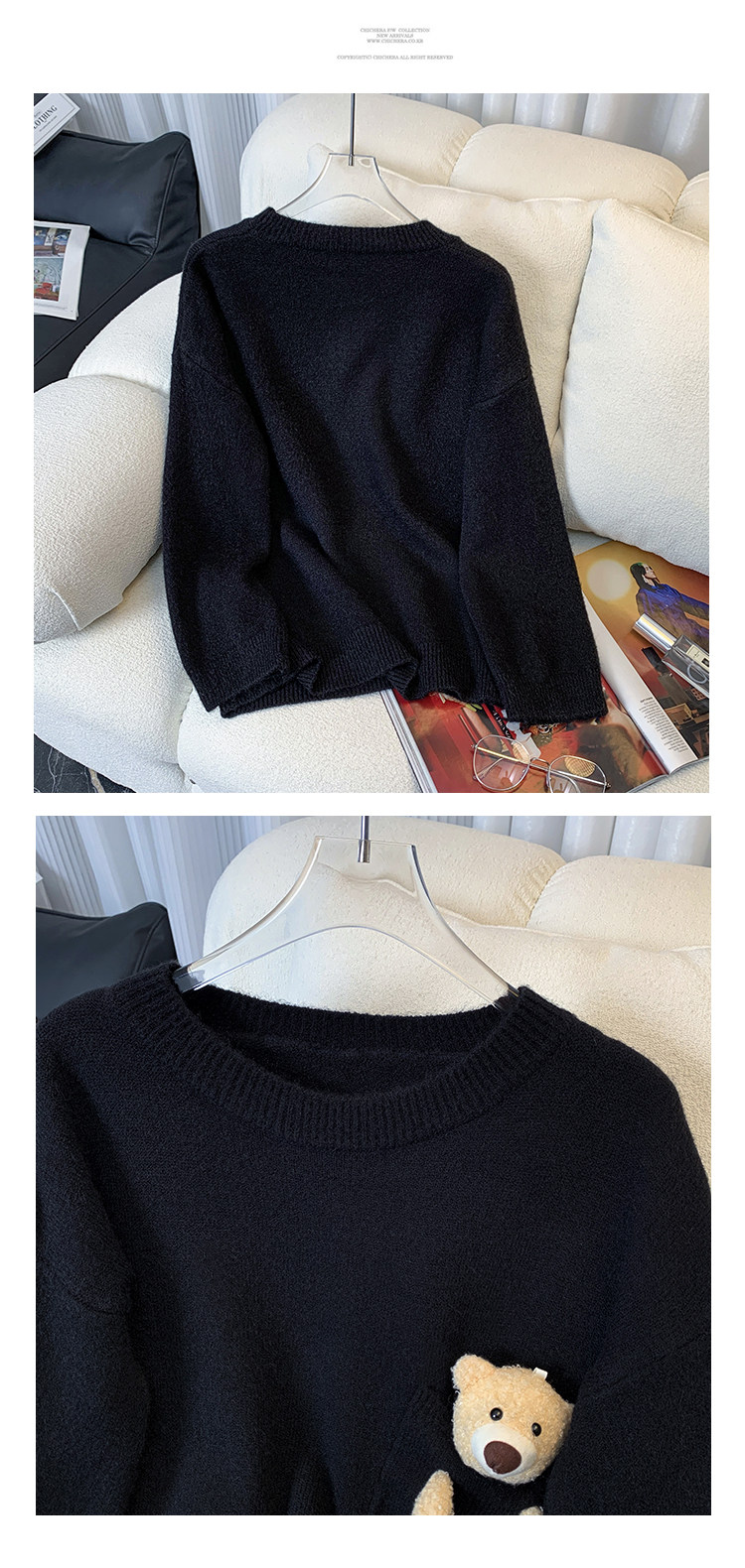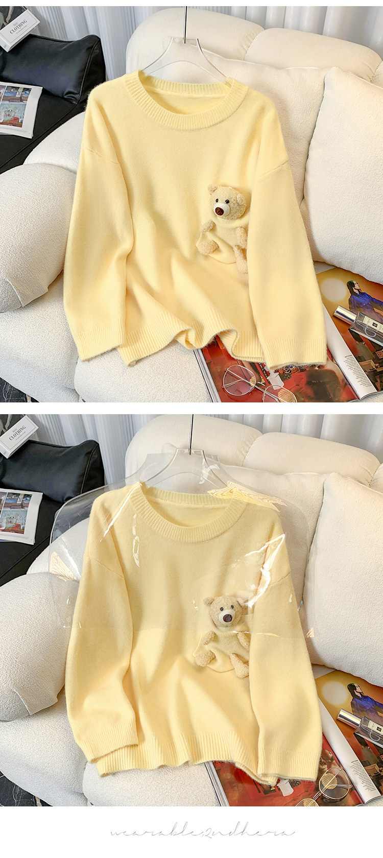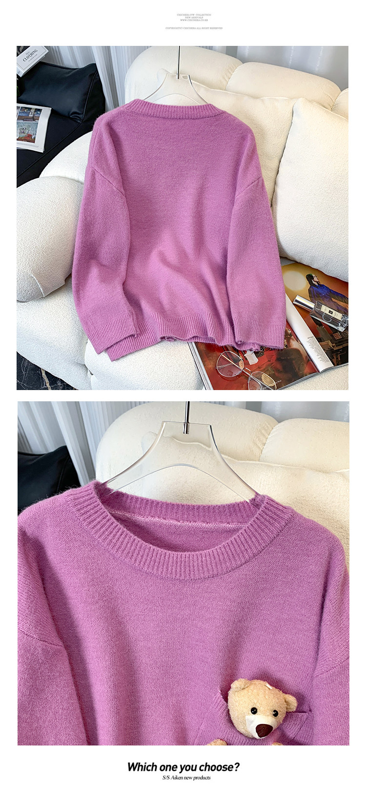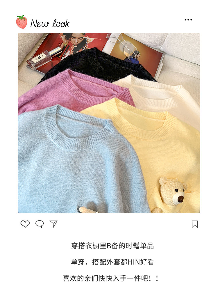 RM25964#韩版新款慵懒风针织套头小熊针织毛衣