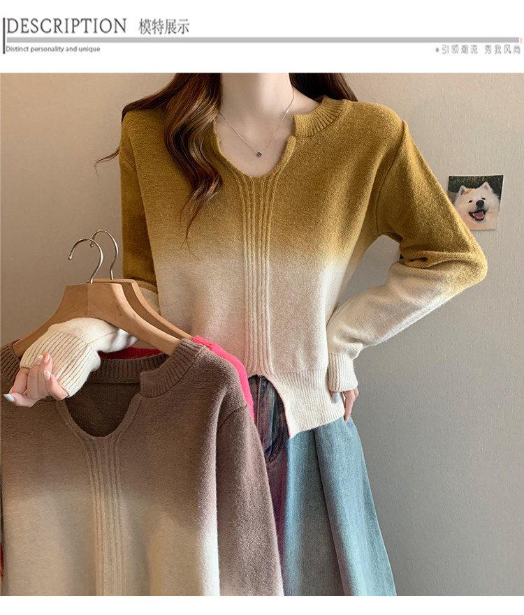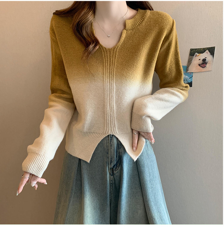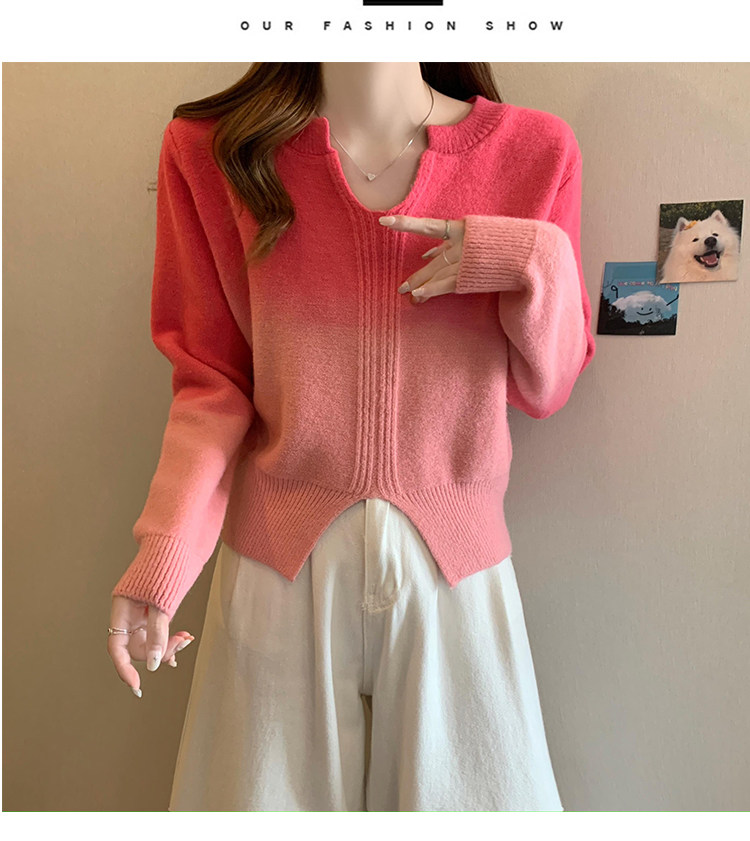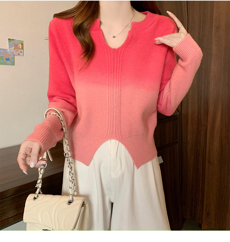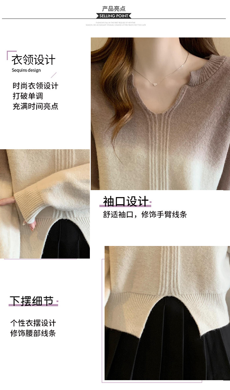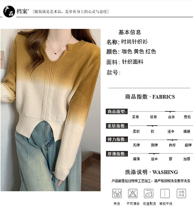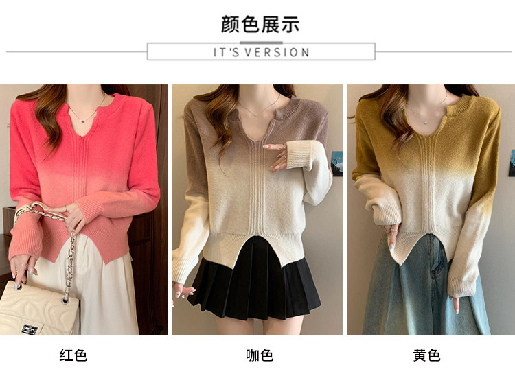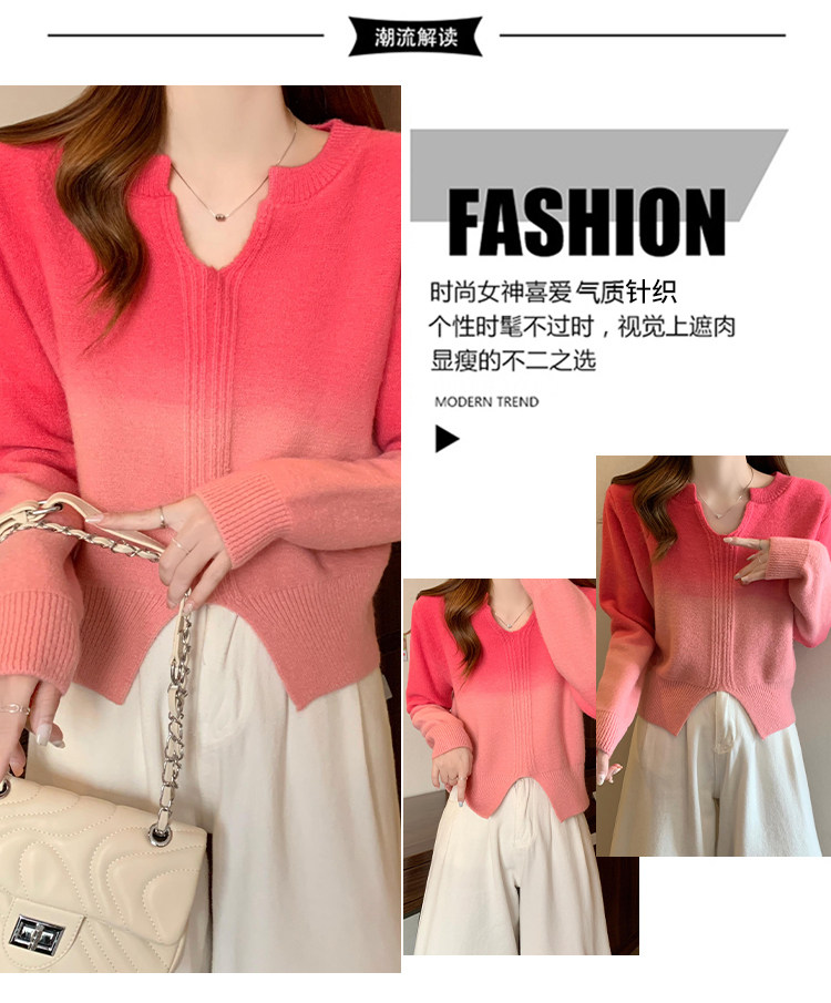 RM25973#大码女装冬季新款胖mm韩版渐变色设计感显瘦V领针织衫