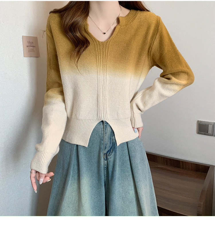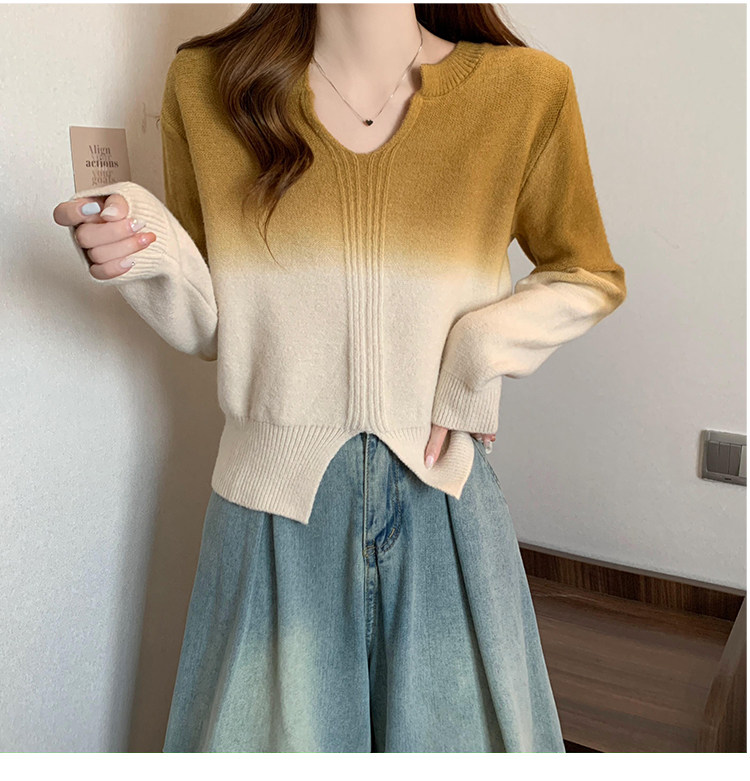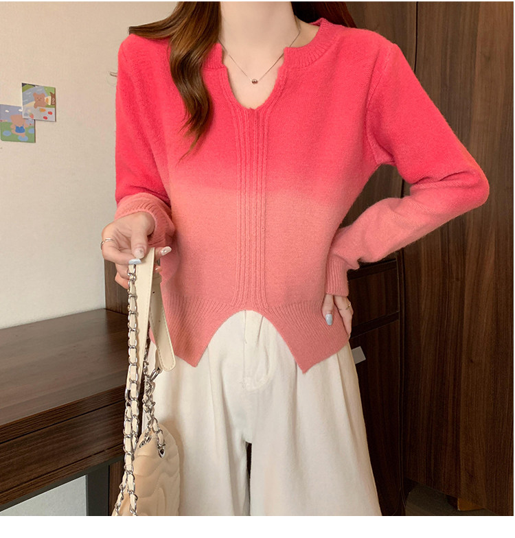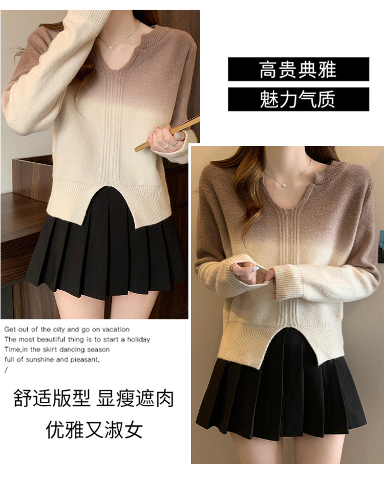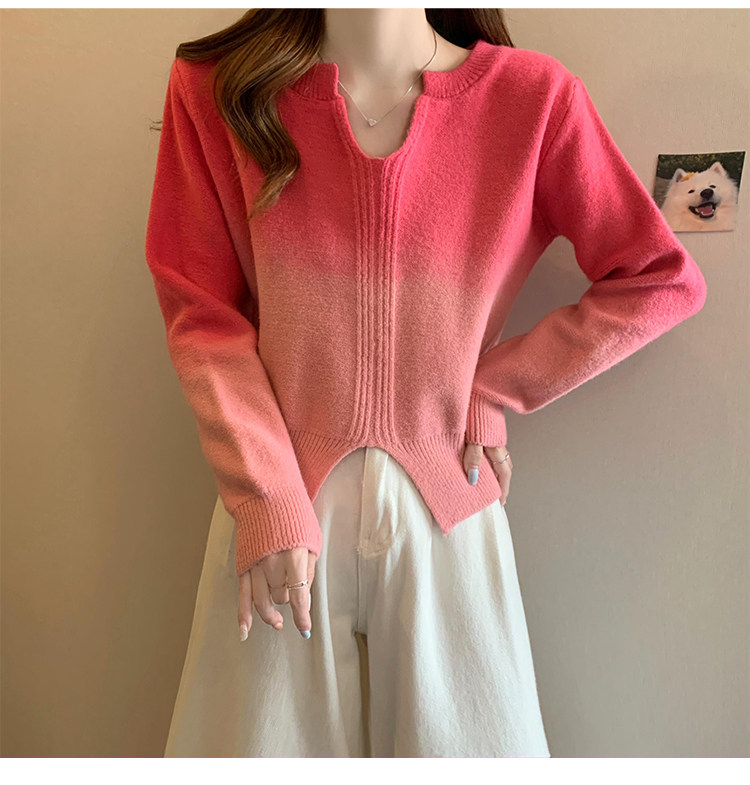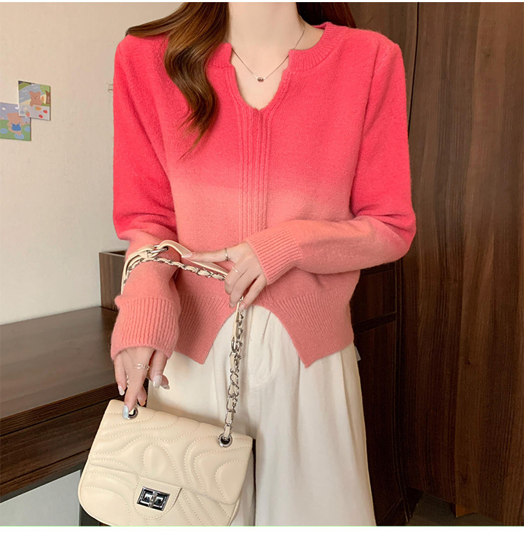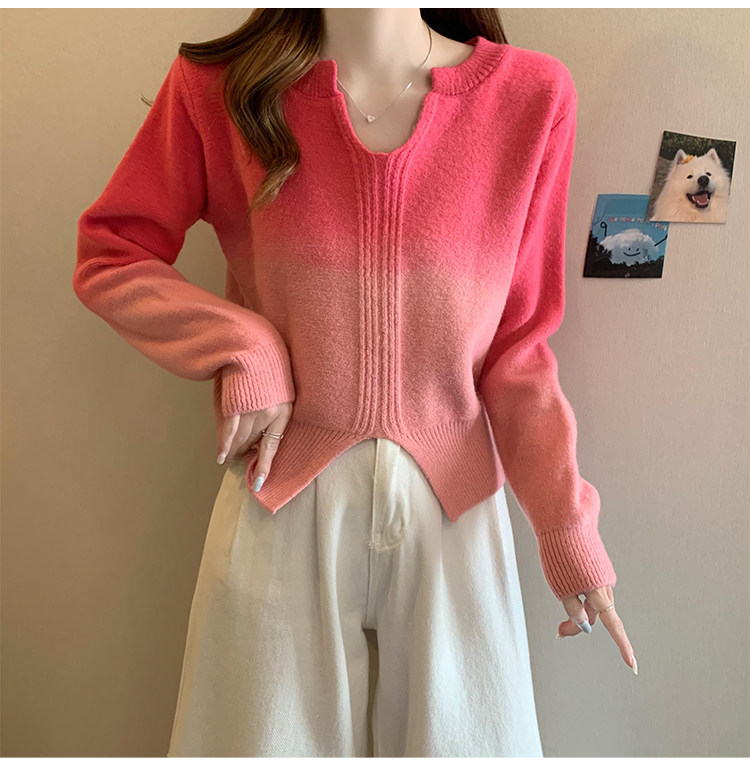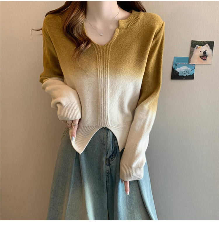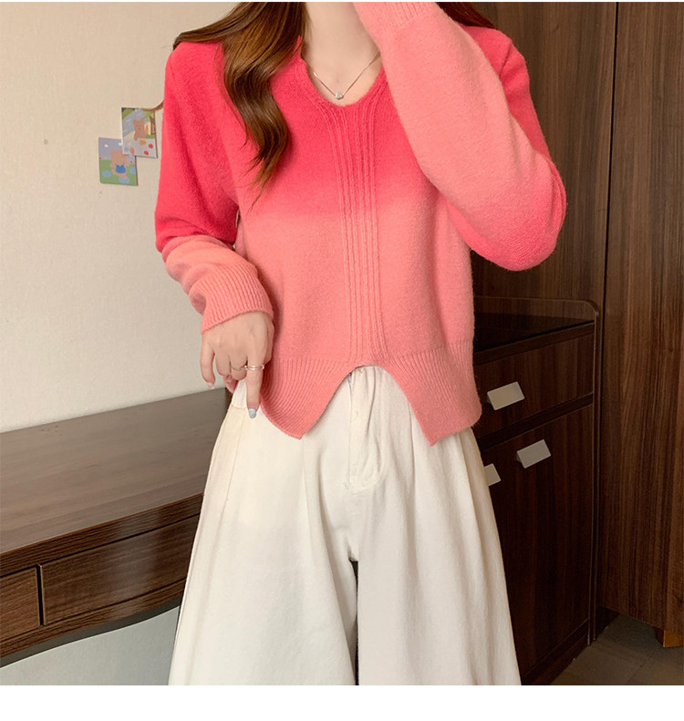 RM25973#大码女装冬季新款胖mm韩版渐变色设计感显瘦V领针织衫