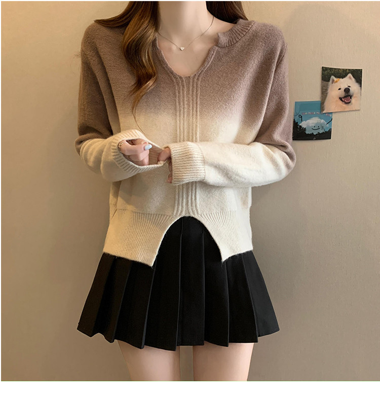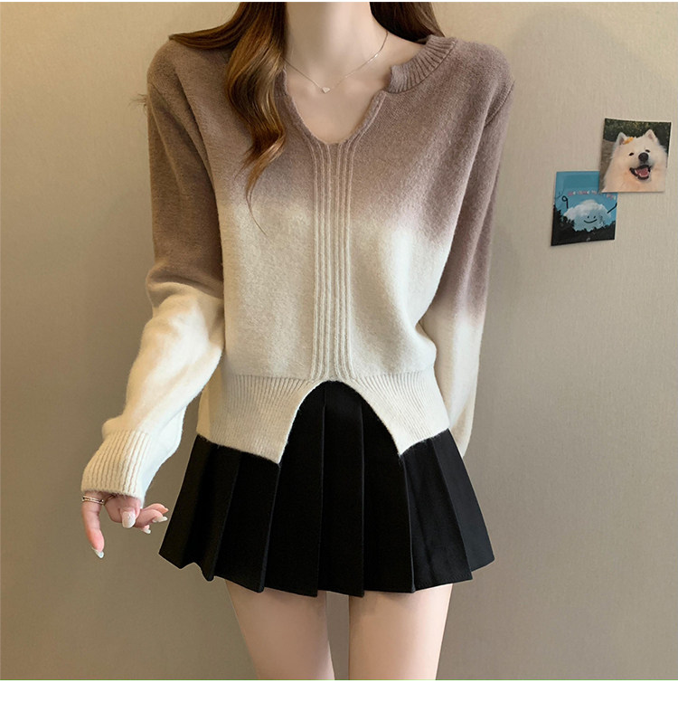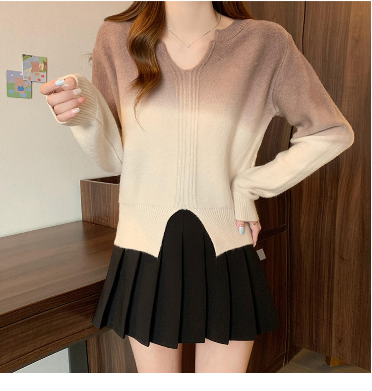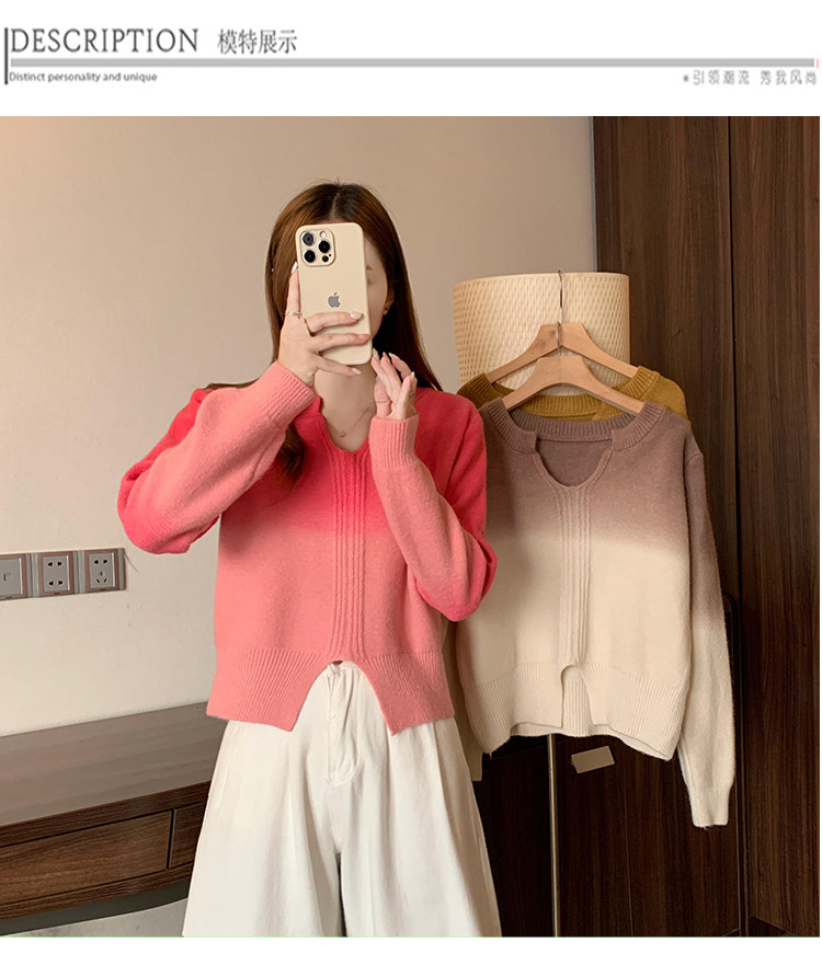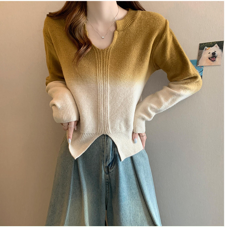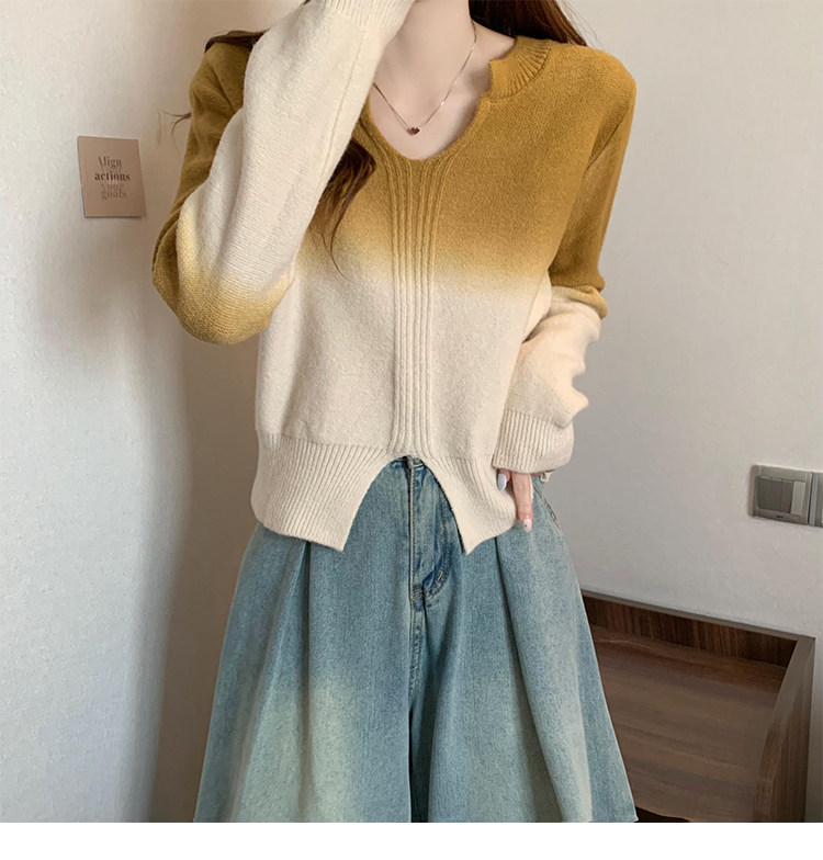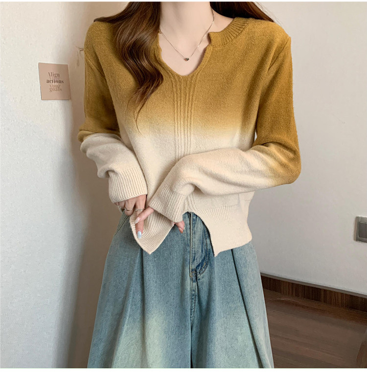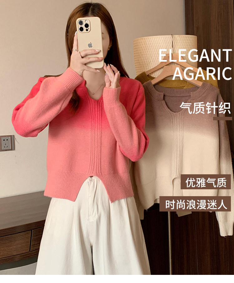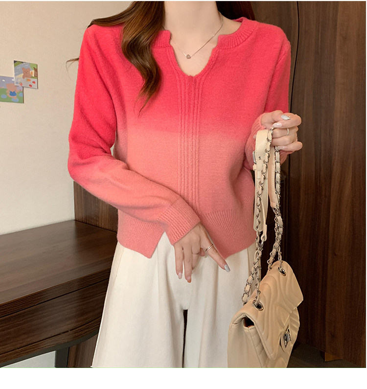 RM25973#大码女装冬季新款胖mm韩版渐变色设计感显瘦V领针织衫