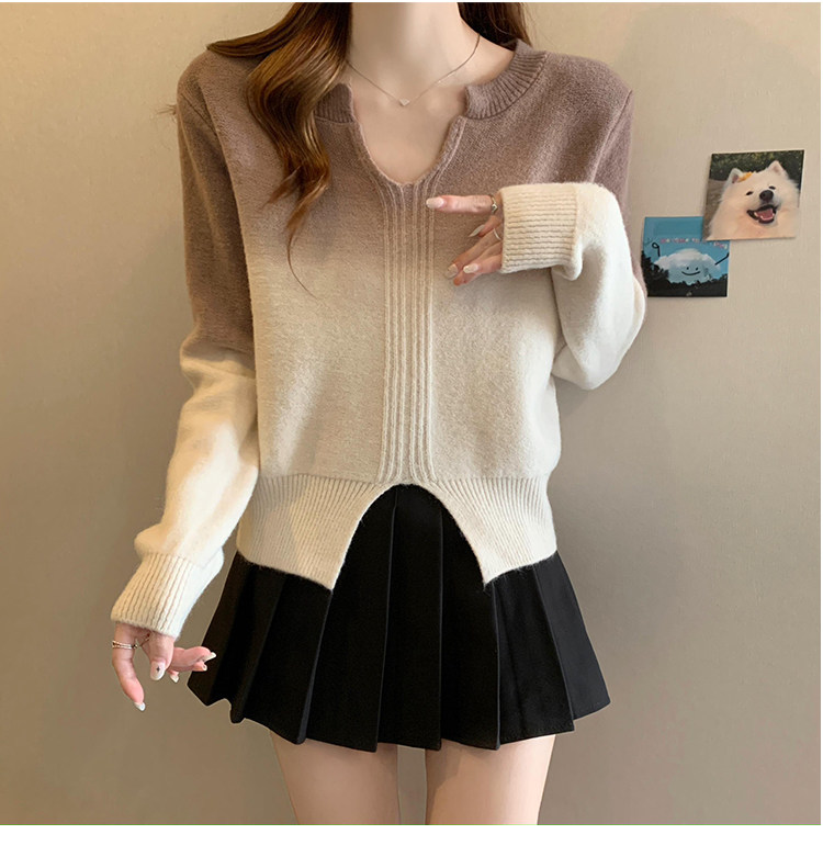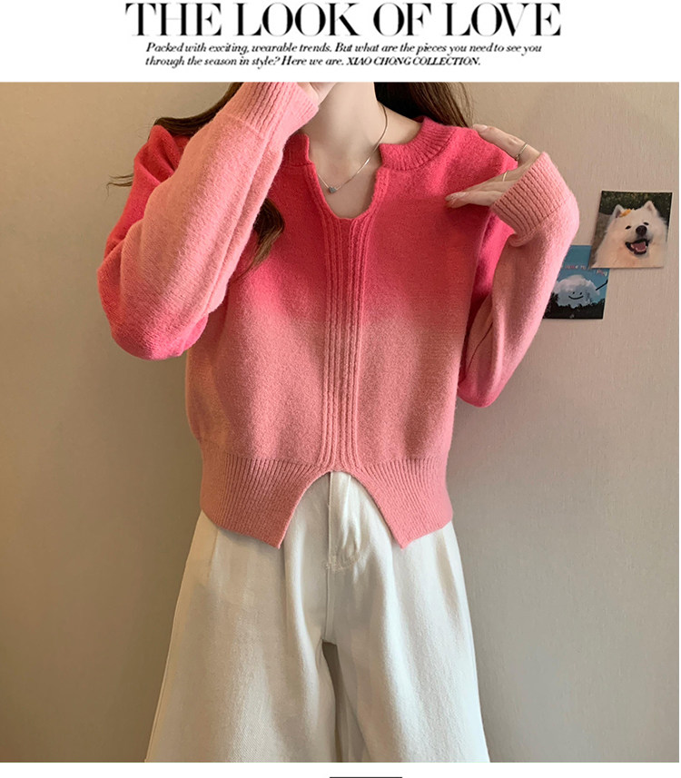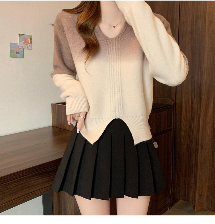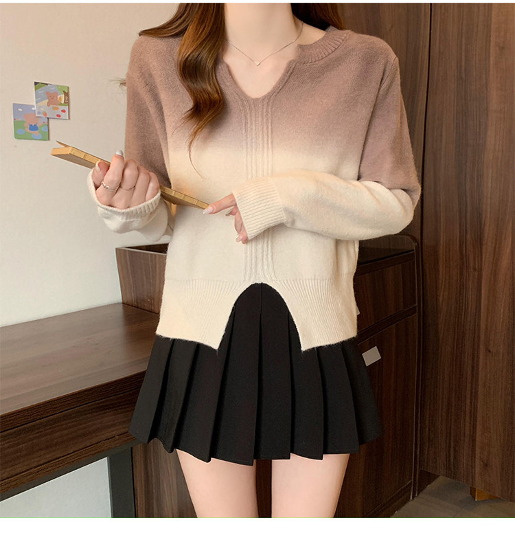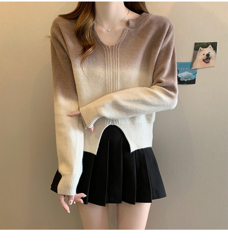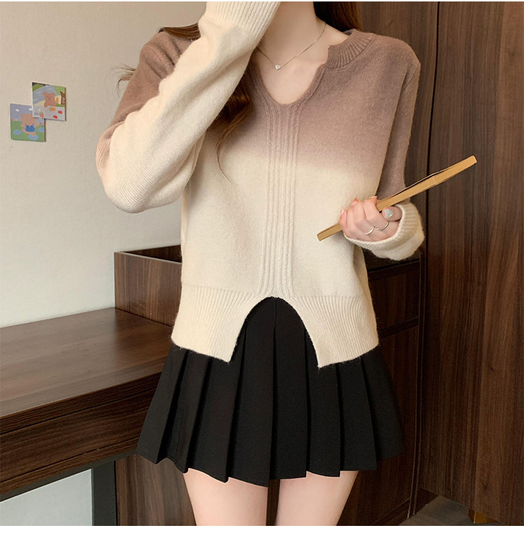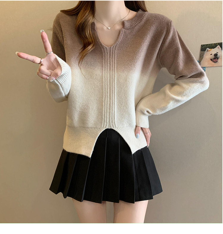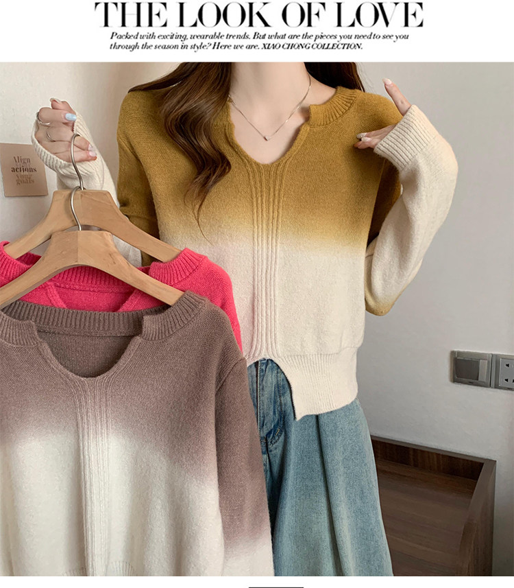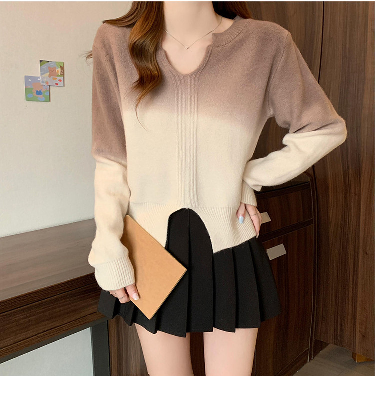 RM25973#大码女装冬季新款胖mm韩版渐变色设计感显瘦V领针织衫