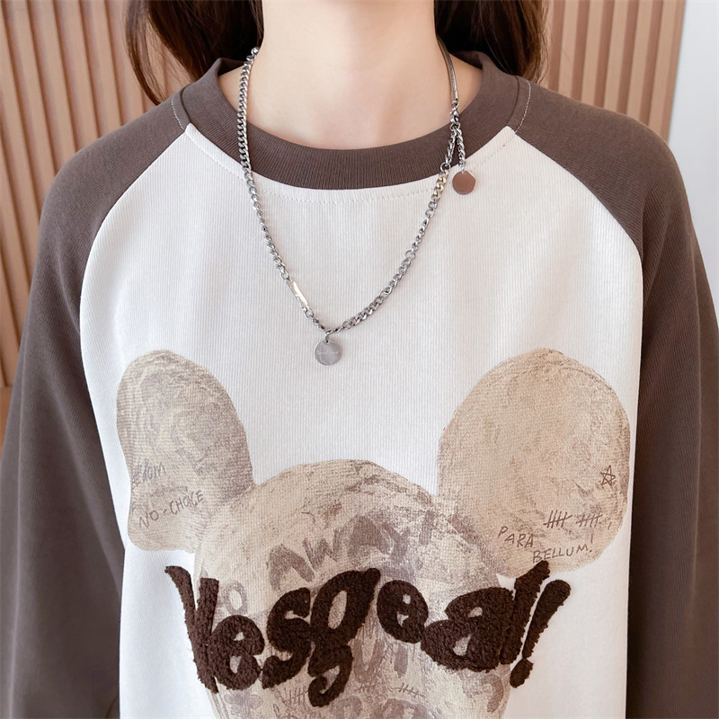 RM25980#包领双面德绒 2023新款圆领拼接加绒打底衫