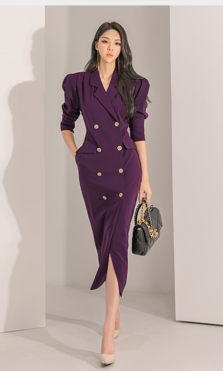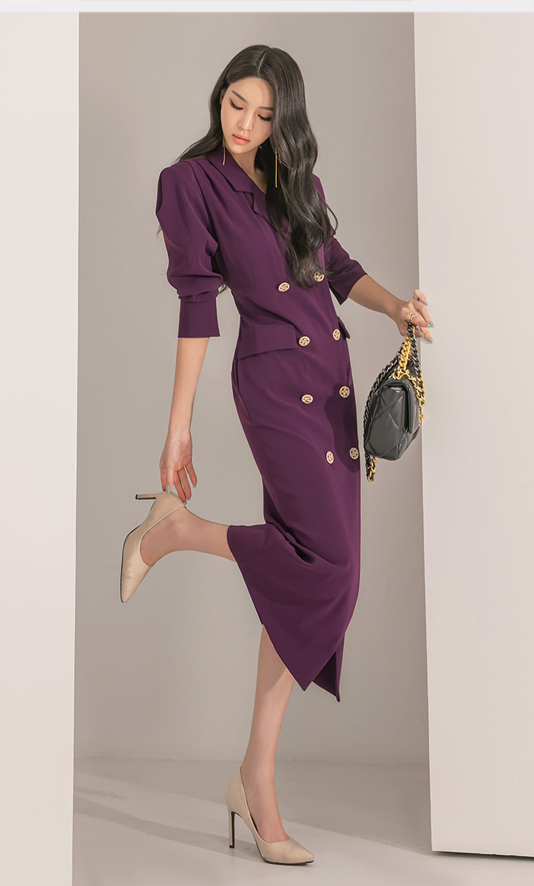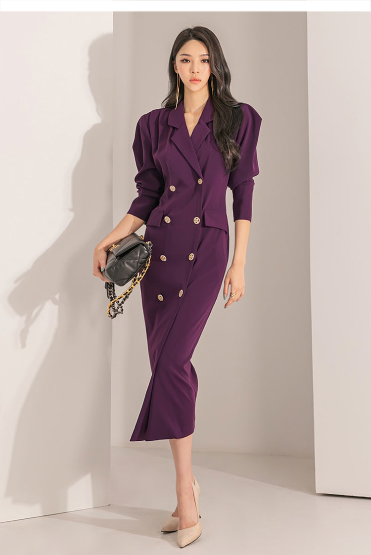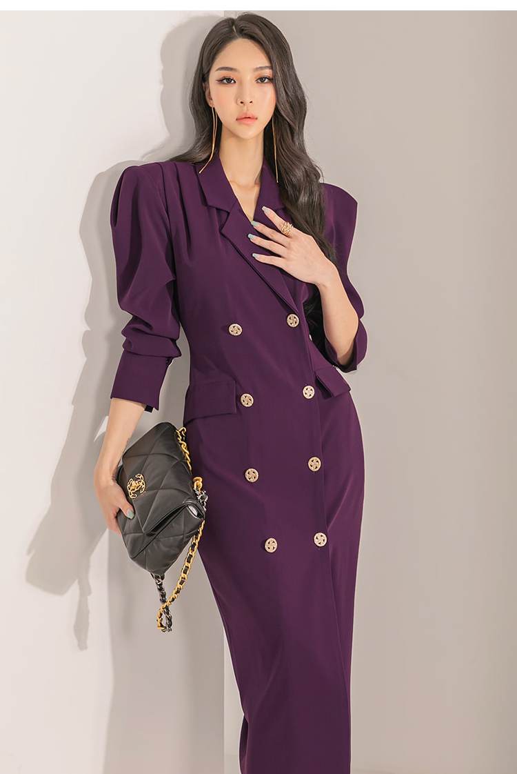 RM25982#新款韩版时尚气质修身显瘦轻奢高级感长款双排扣西装裙
