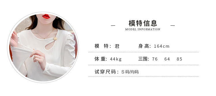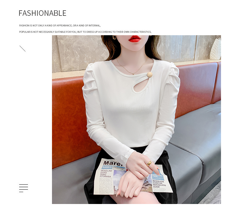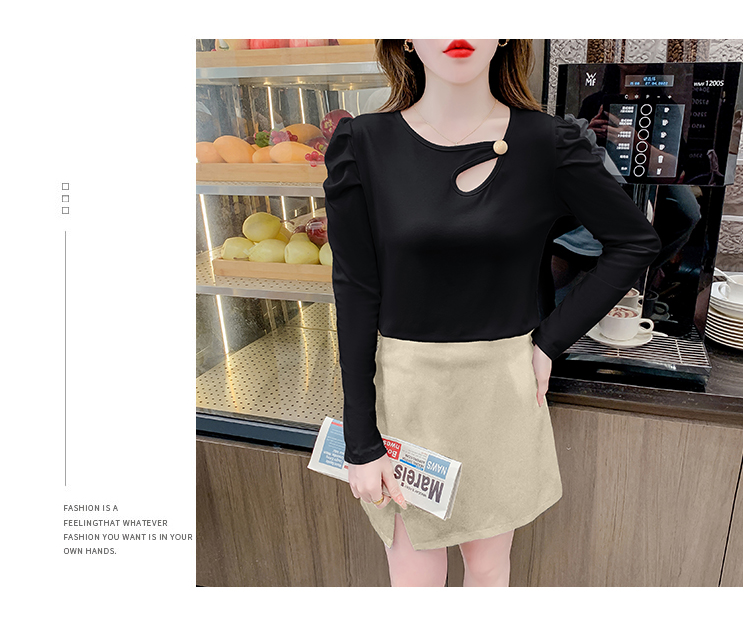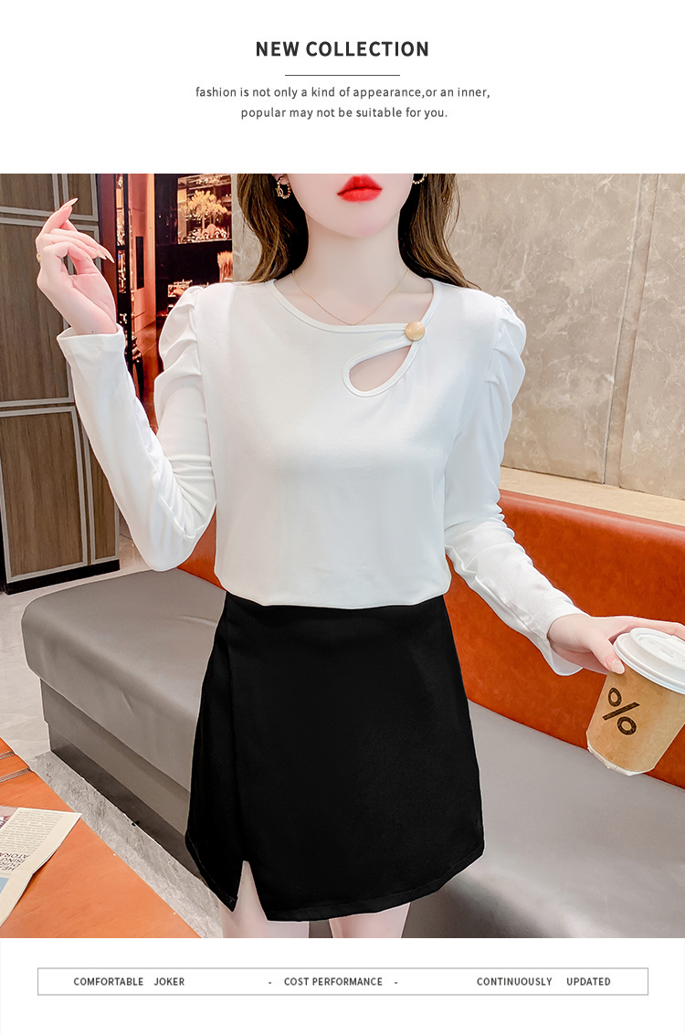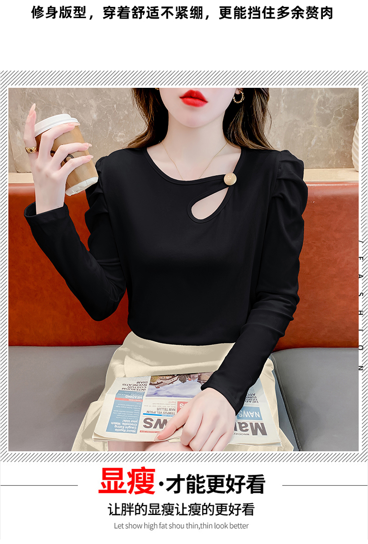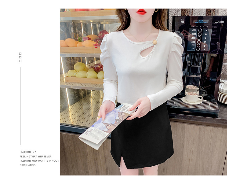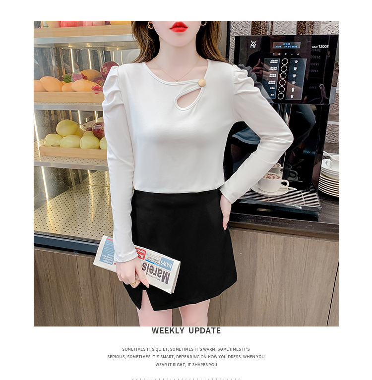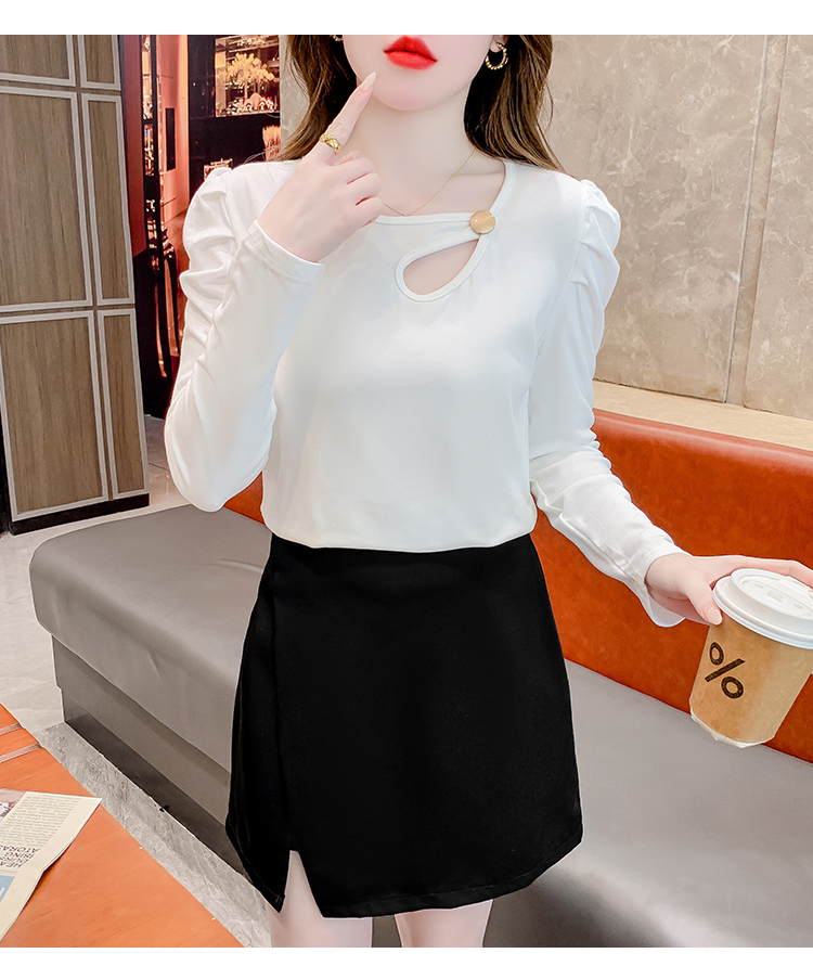 RM25987#韩版金属扣镂空泡泡袖打底衫女2023秋季新款时尚百搭修身上衣小衫