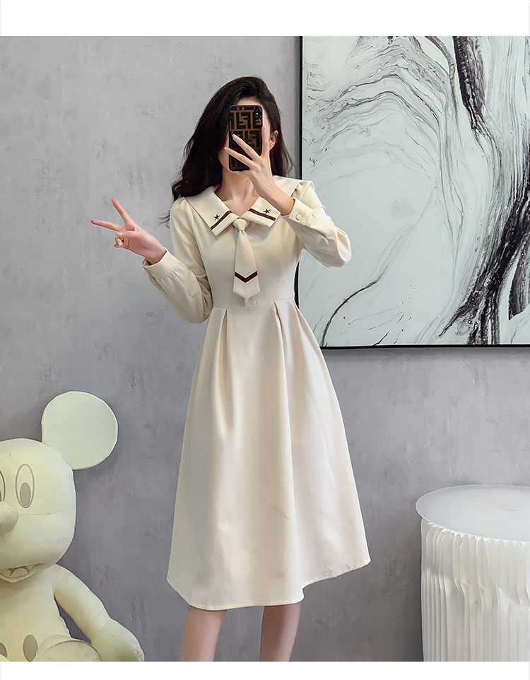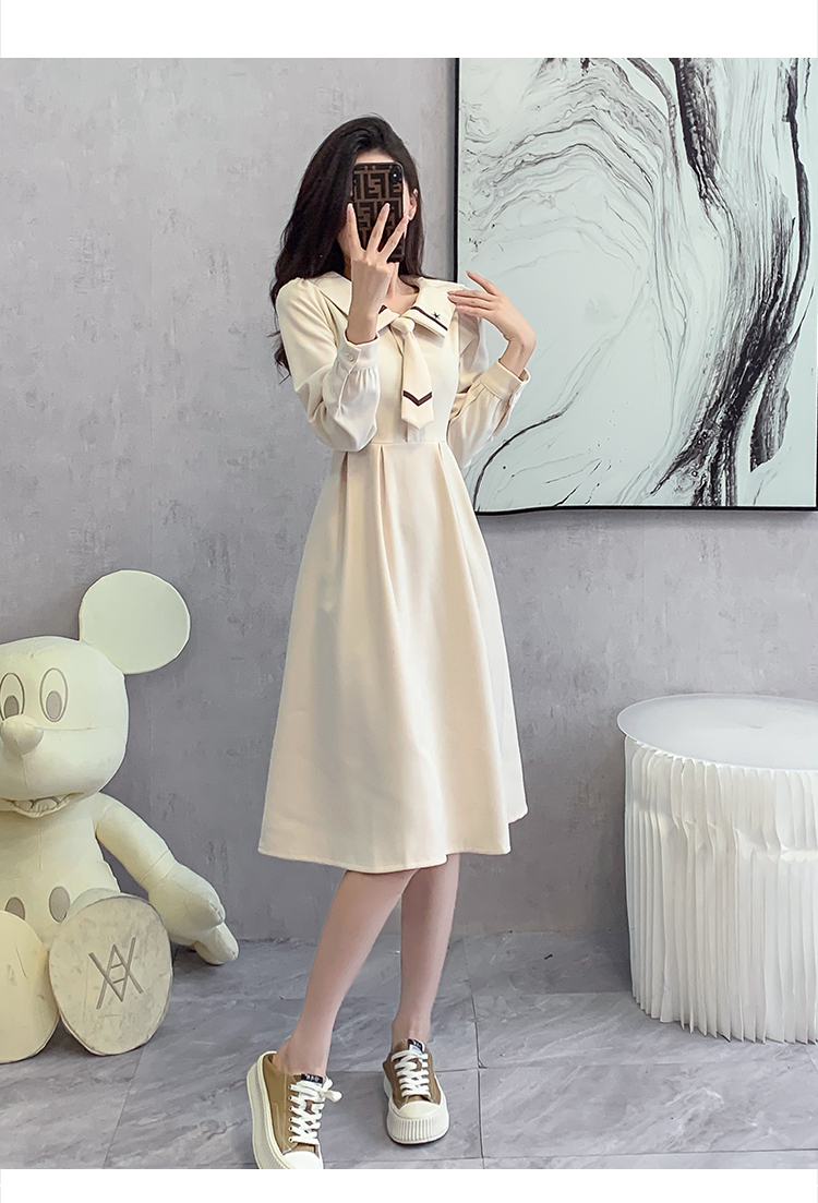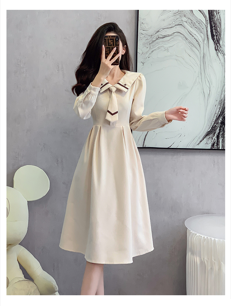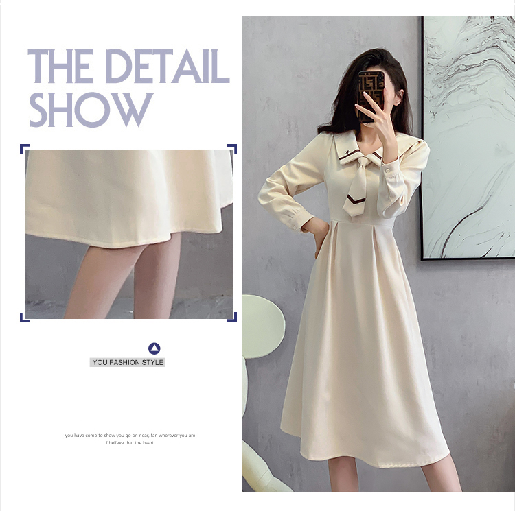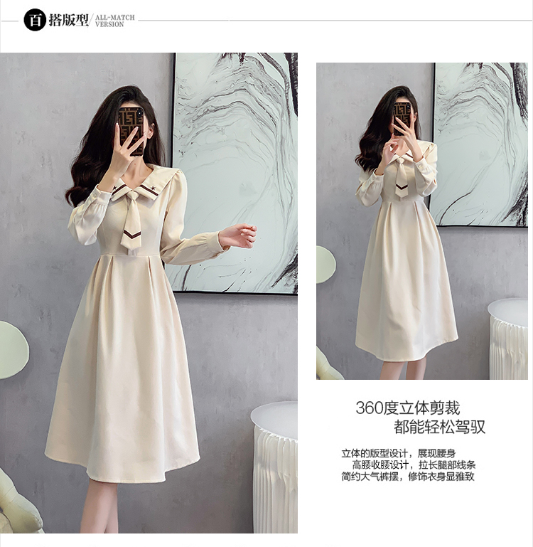 RM25992#新款内搭裙子长裙学院风海军领法式打底连衣裙秋冬季小个子