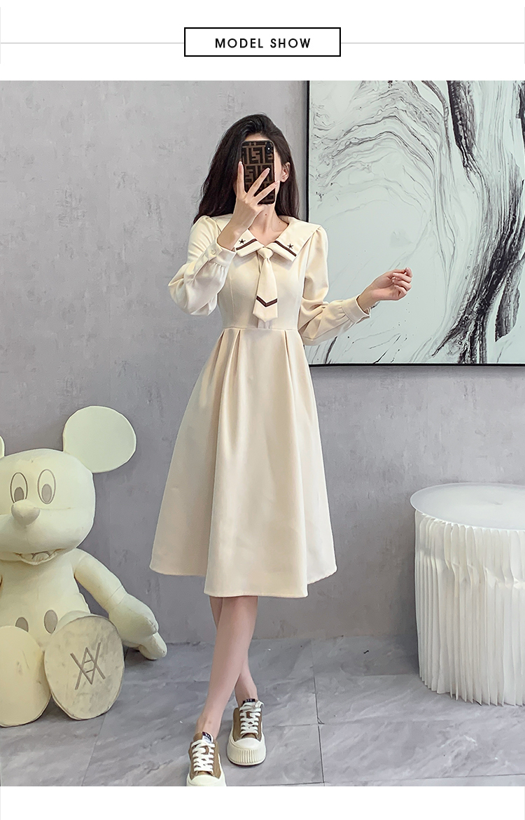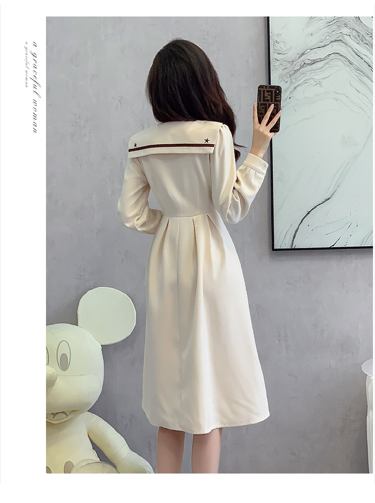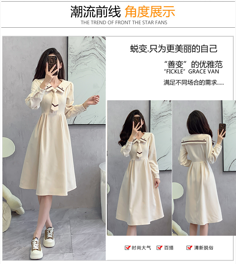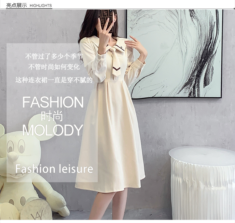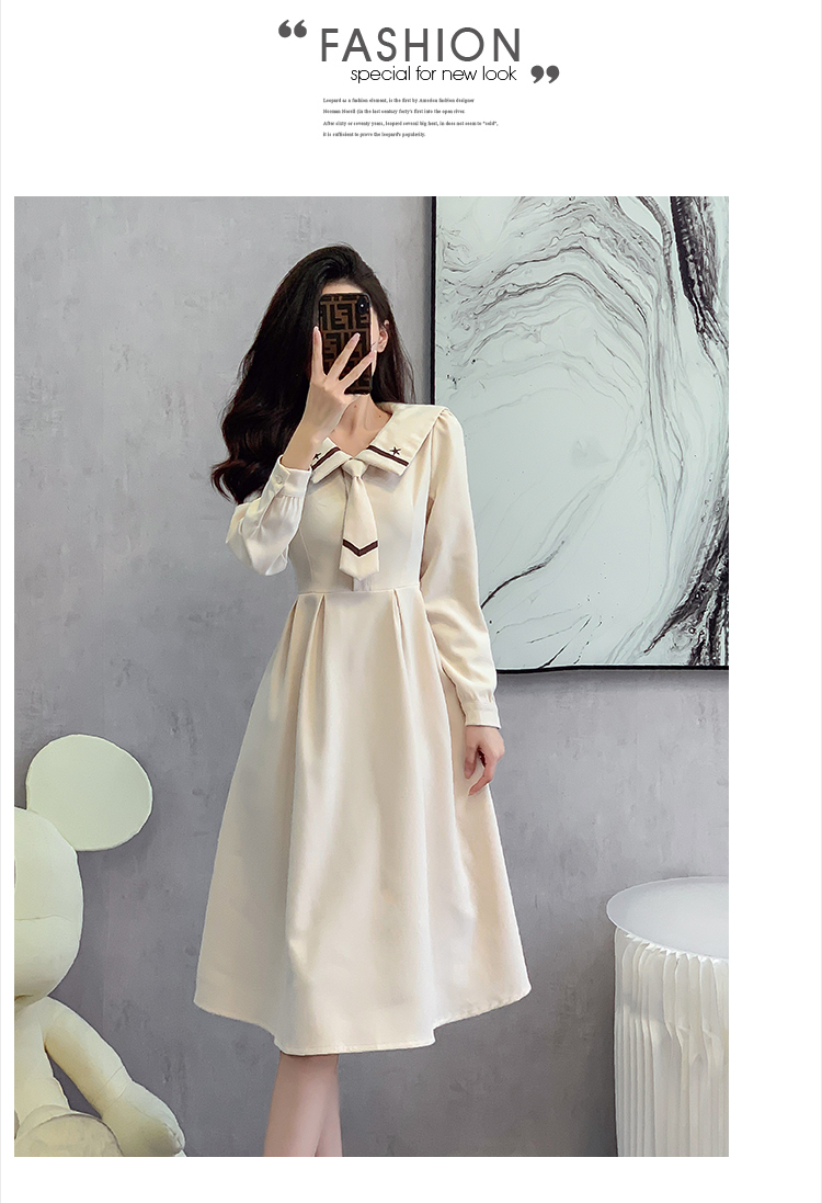 RM25992#新款内搭裙子长裙学院风海军领法式打底连衣裙秋冬季小个子