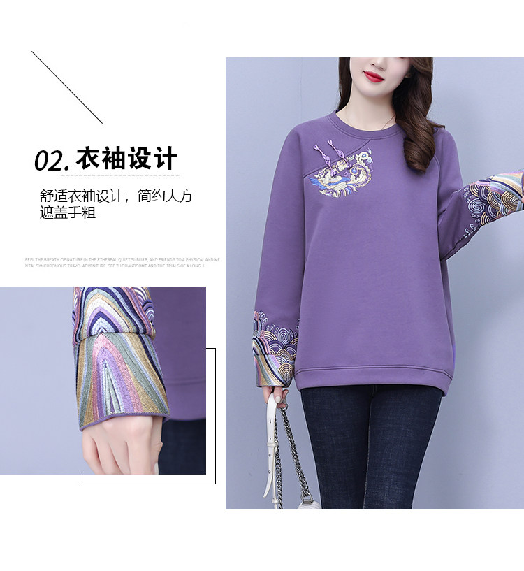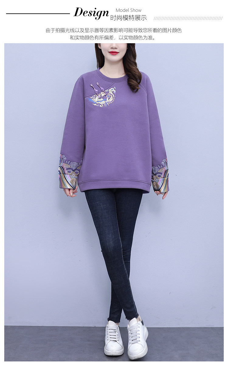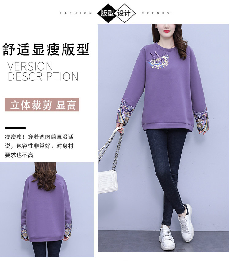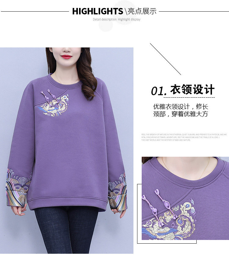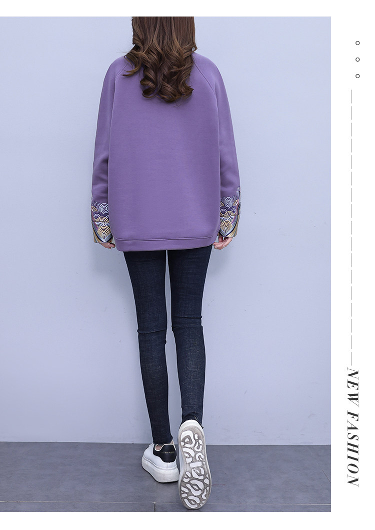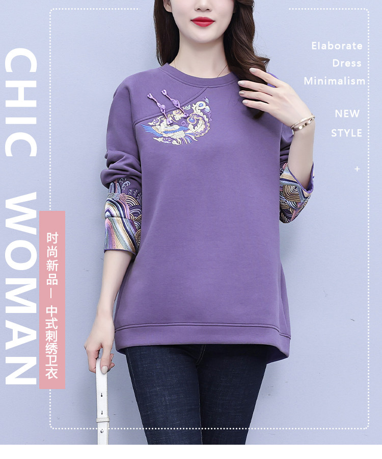 RM25994#新款民族风听凤鸣国风花朵刺绣百搭宽松显瘦长袖卫衣女