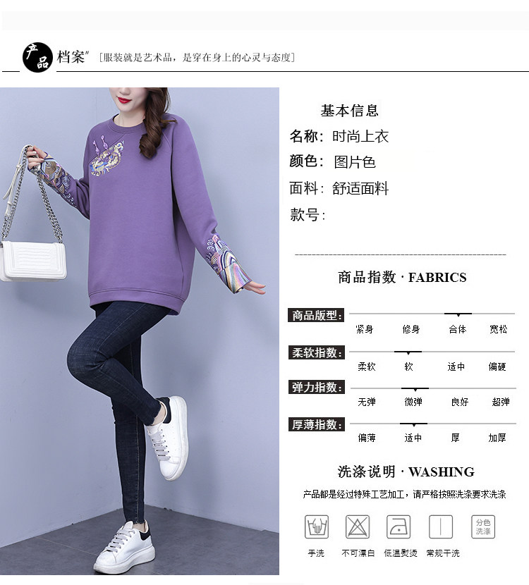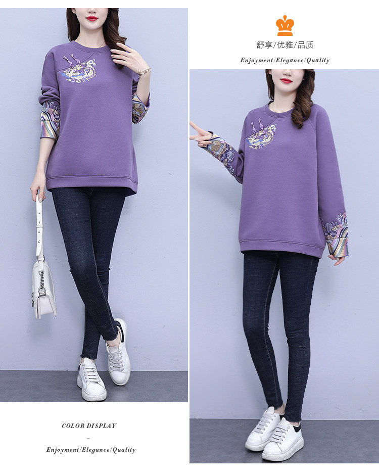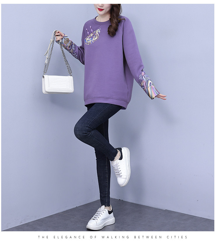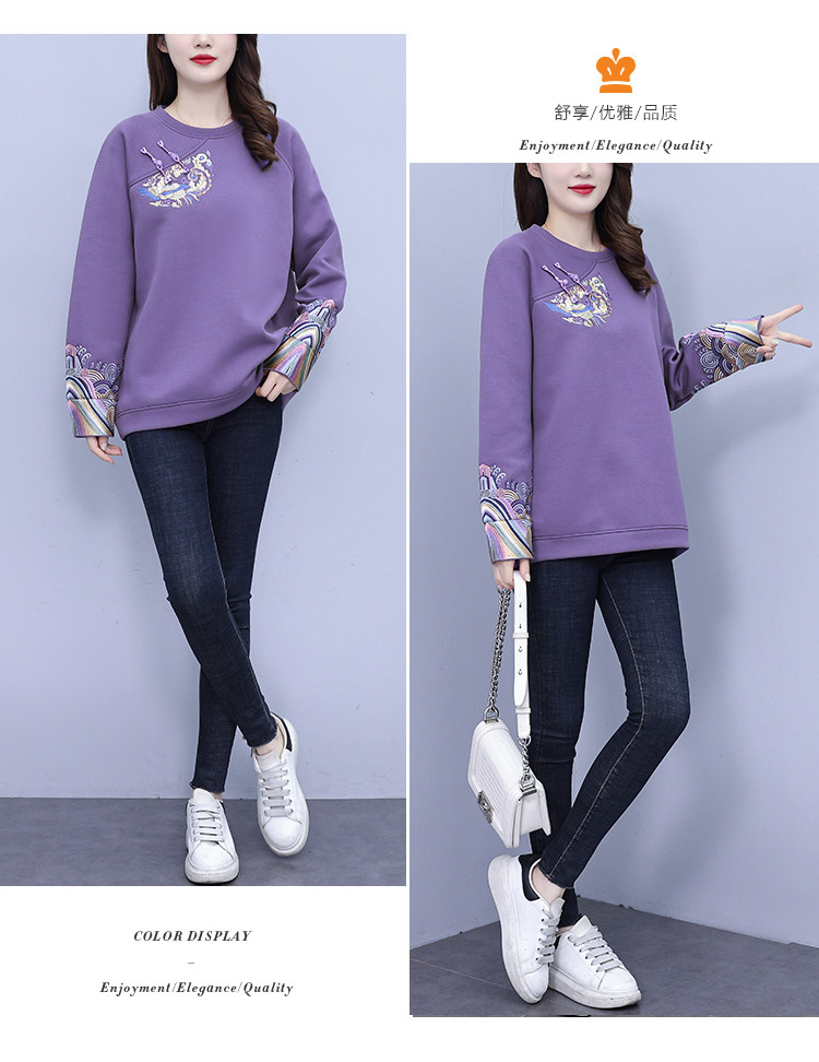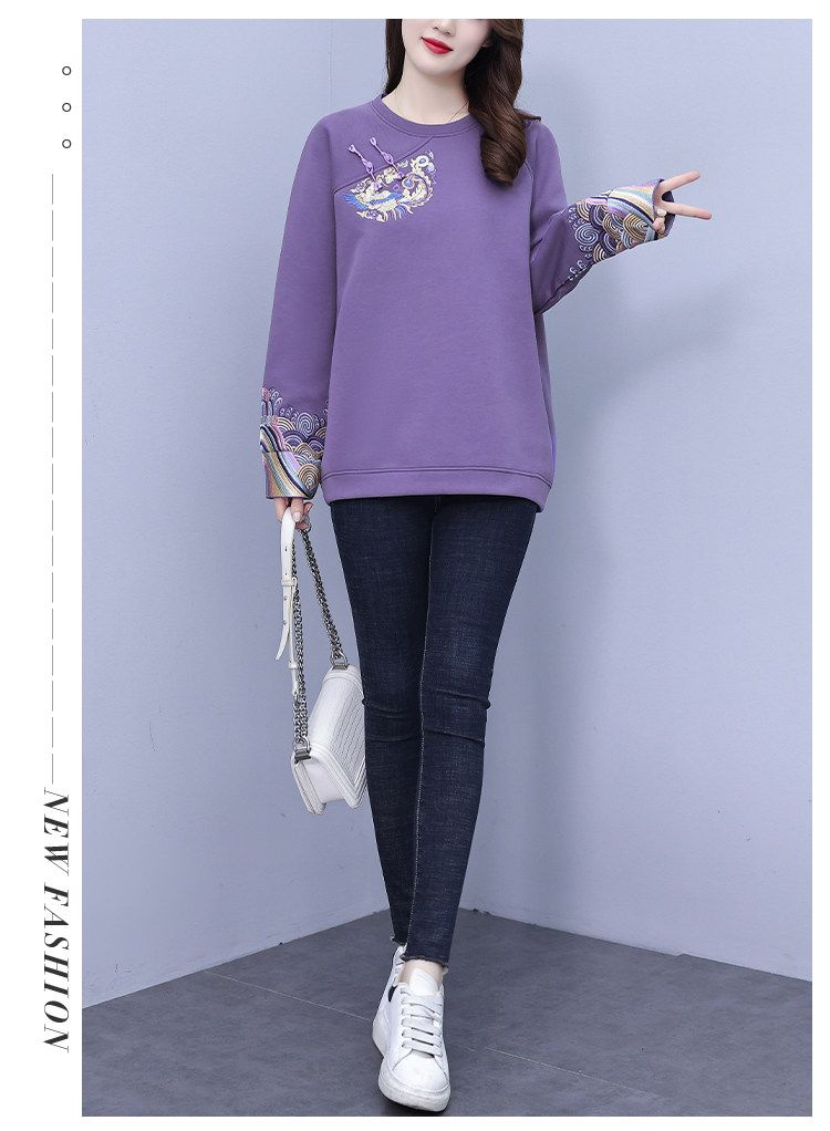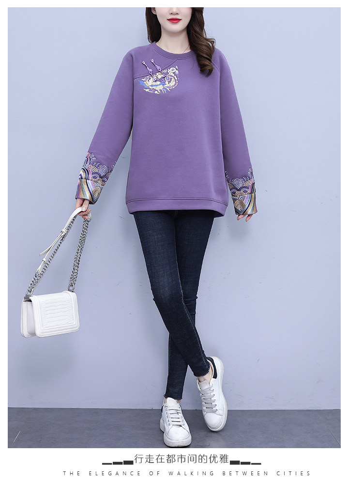RM25994#新款民族风听凤鸣国风花朵刺绣百搭宽松显瘦长袖卫衣女