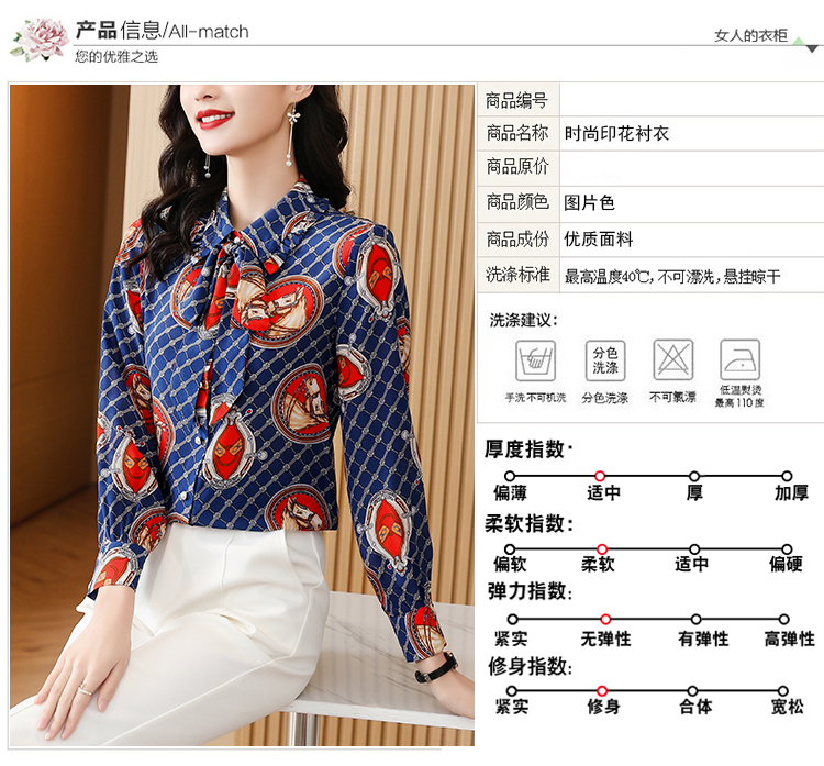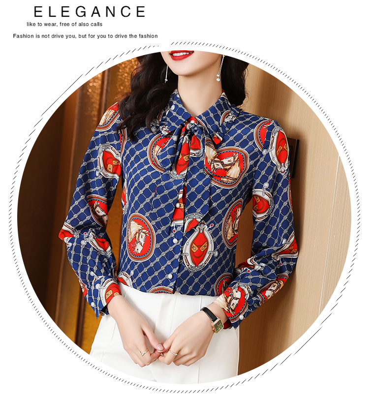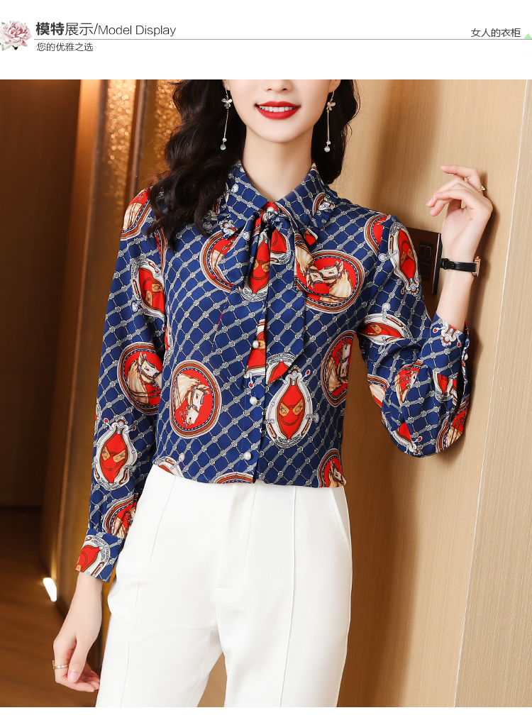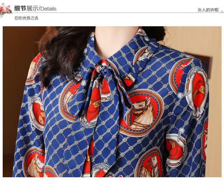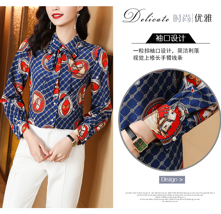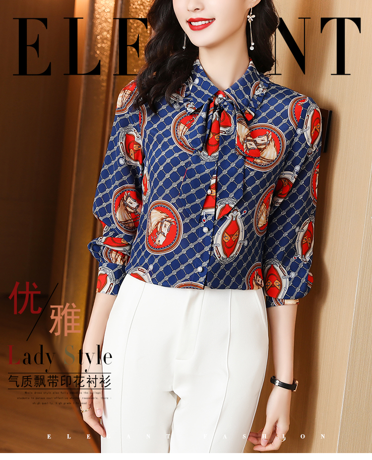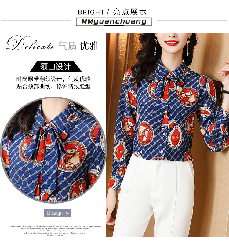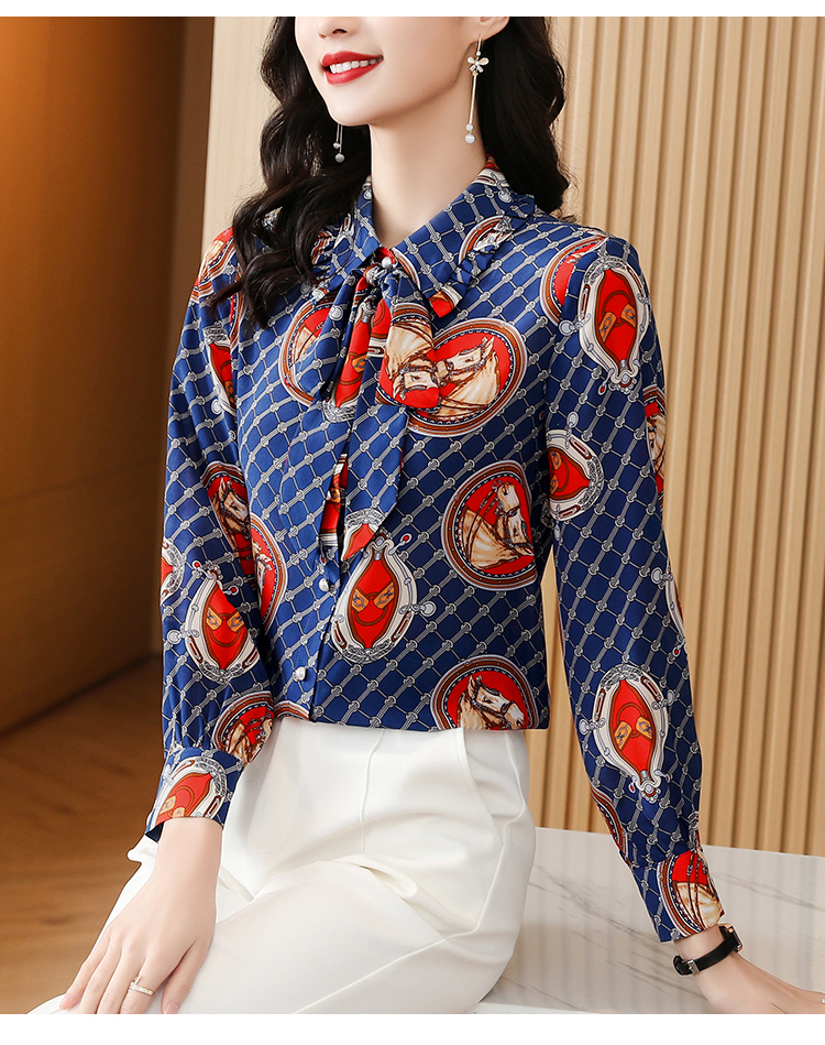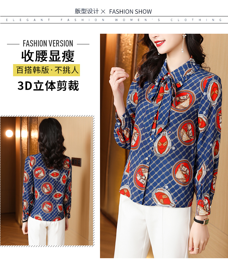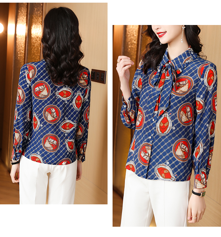 RM25995#真丝衬衫2023秋季新款高端桑蚕丝蝴蝶结法式衬衣时尚印花气质上衣