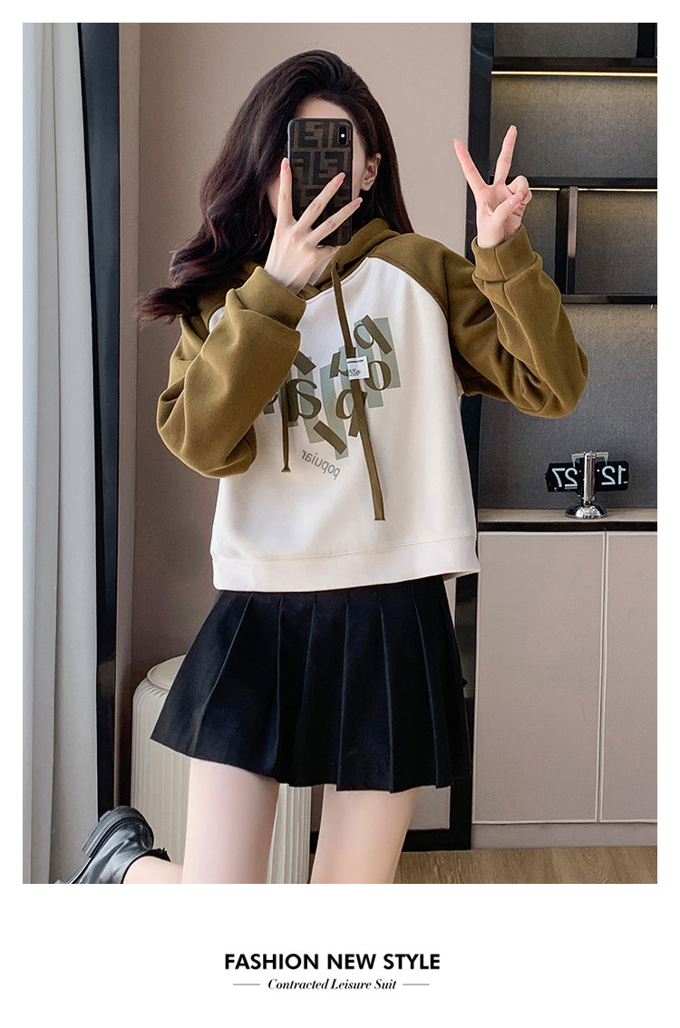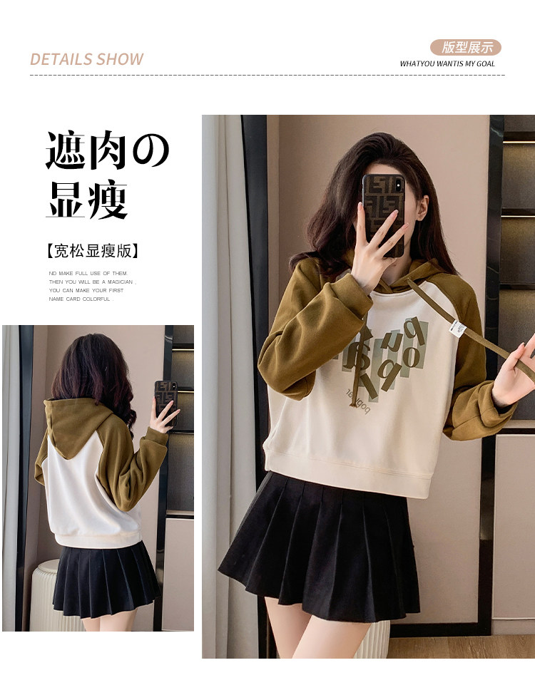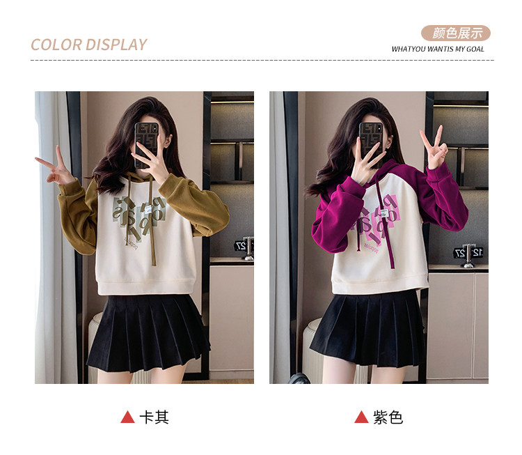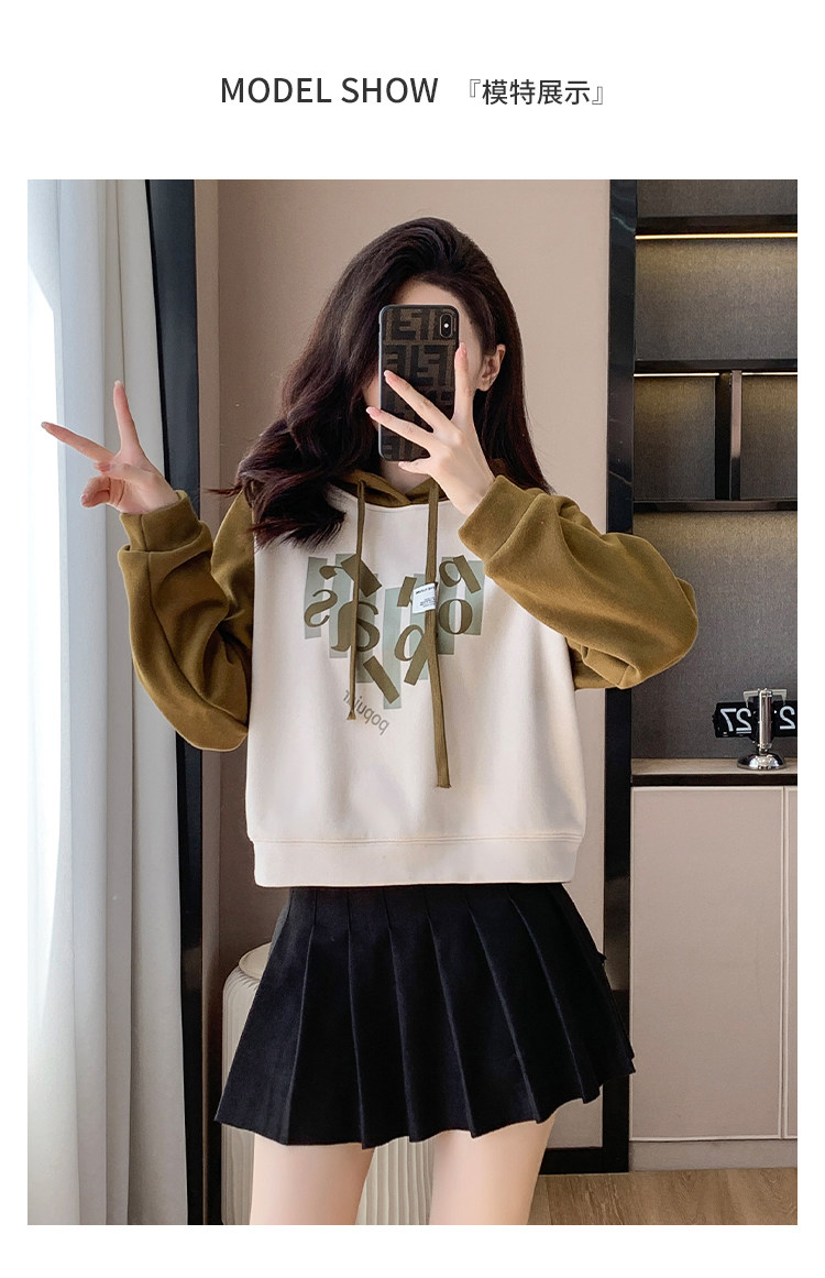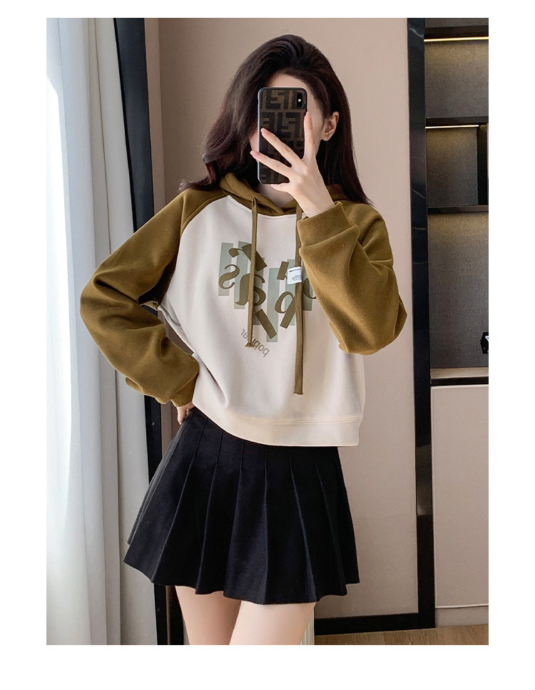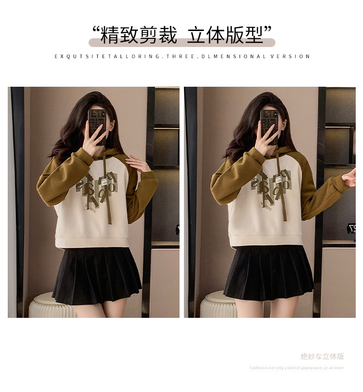 RM25996#插肩袖加绒加厚卫衣女冬季新款复古印花宽松短款百搭连帽上衣