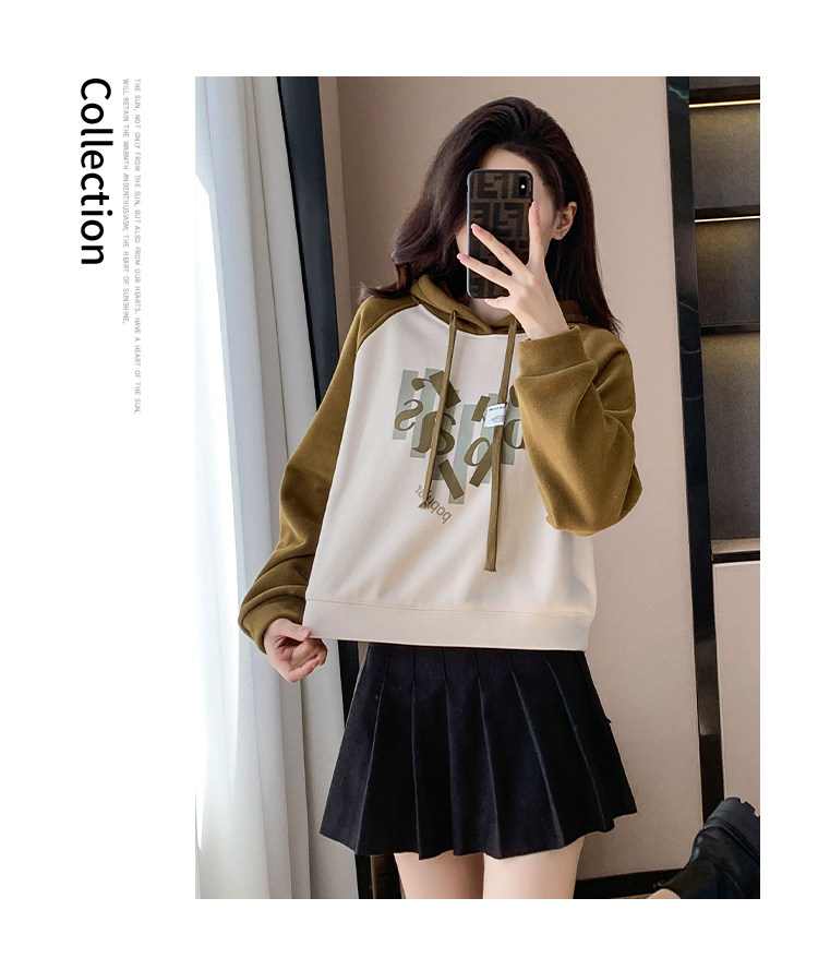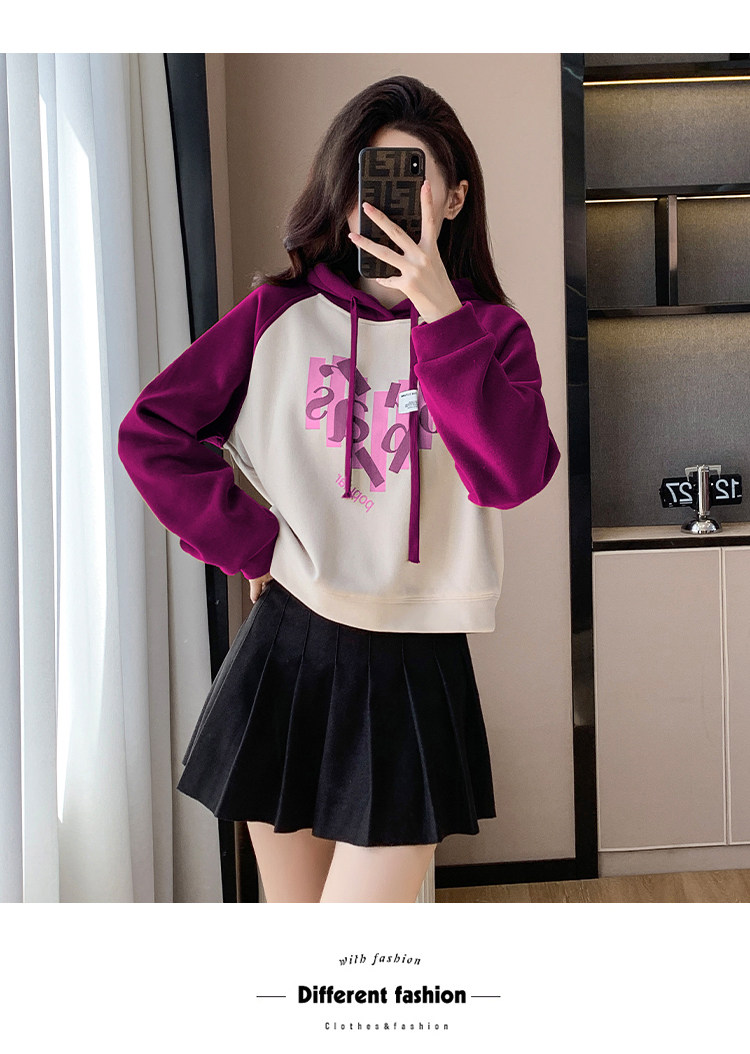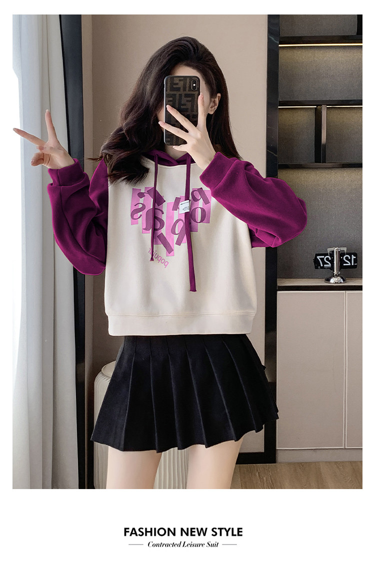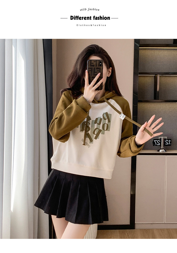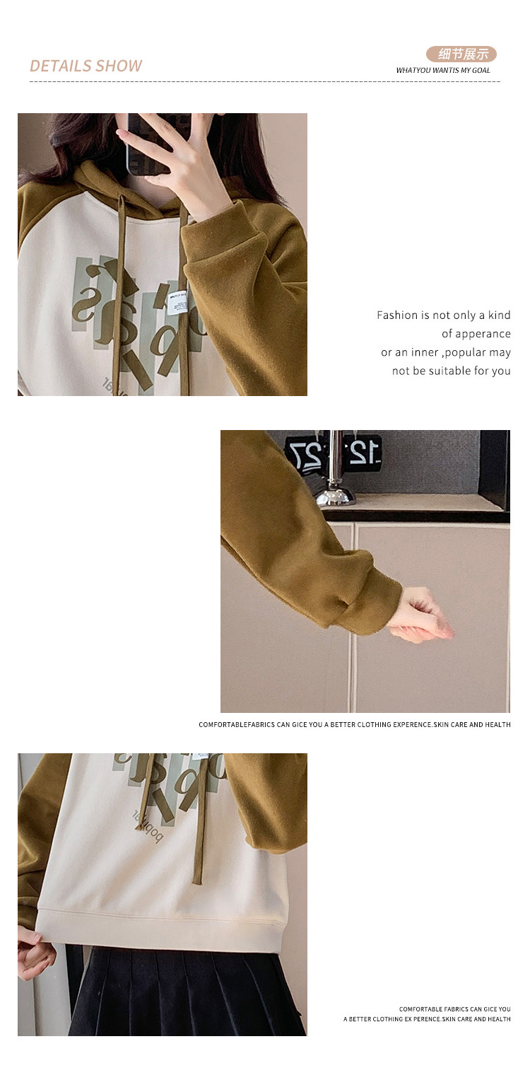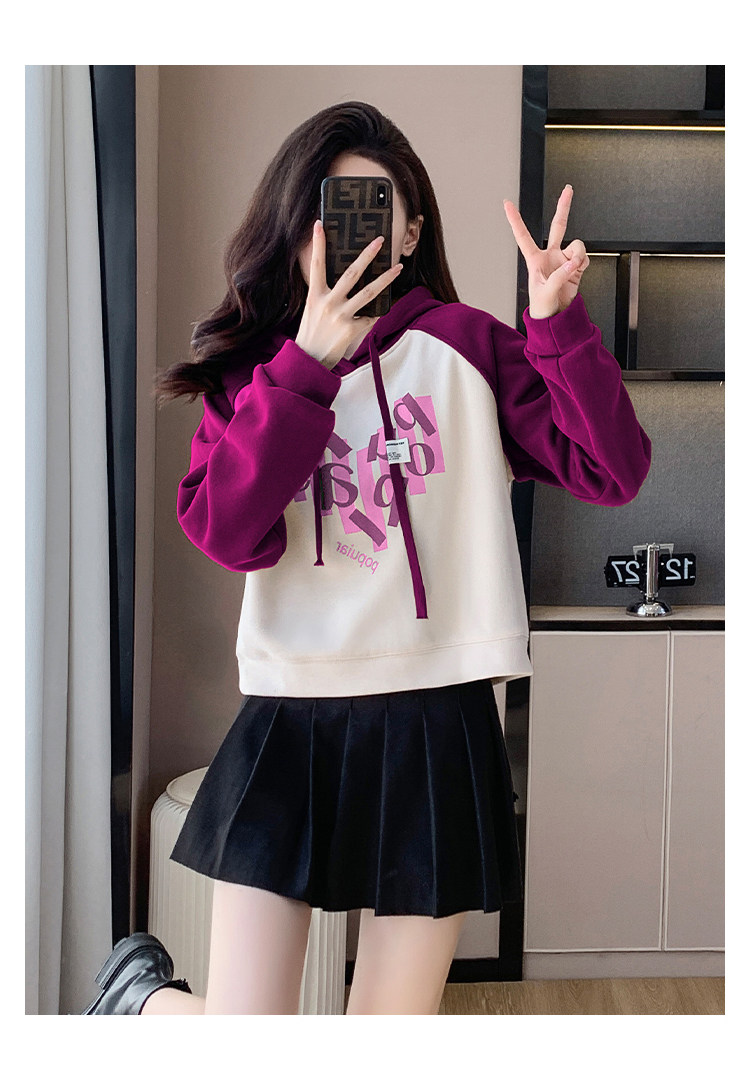 RM25996#插肩袖加绒加厚卫衣女冬季新款复古印花宽松短款百搭连帽上衣