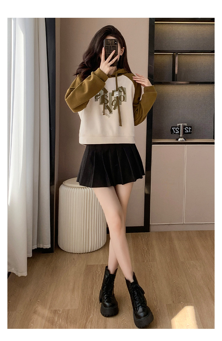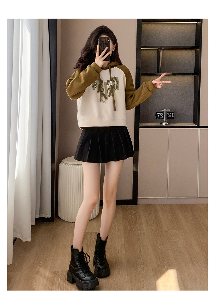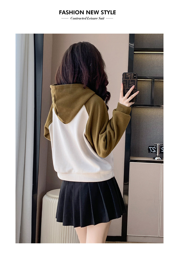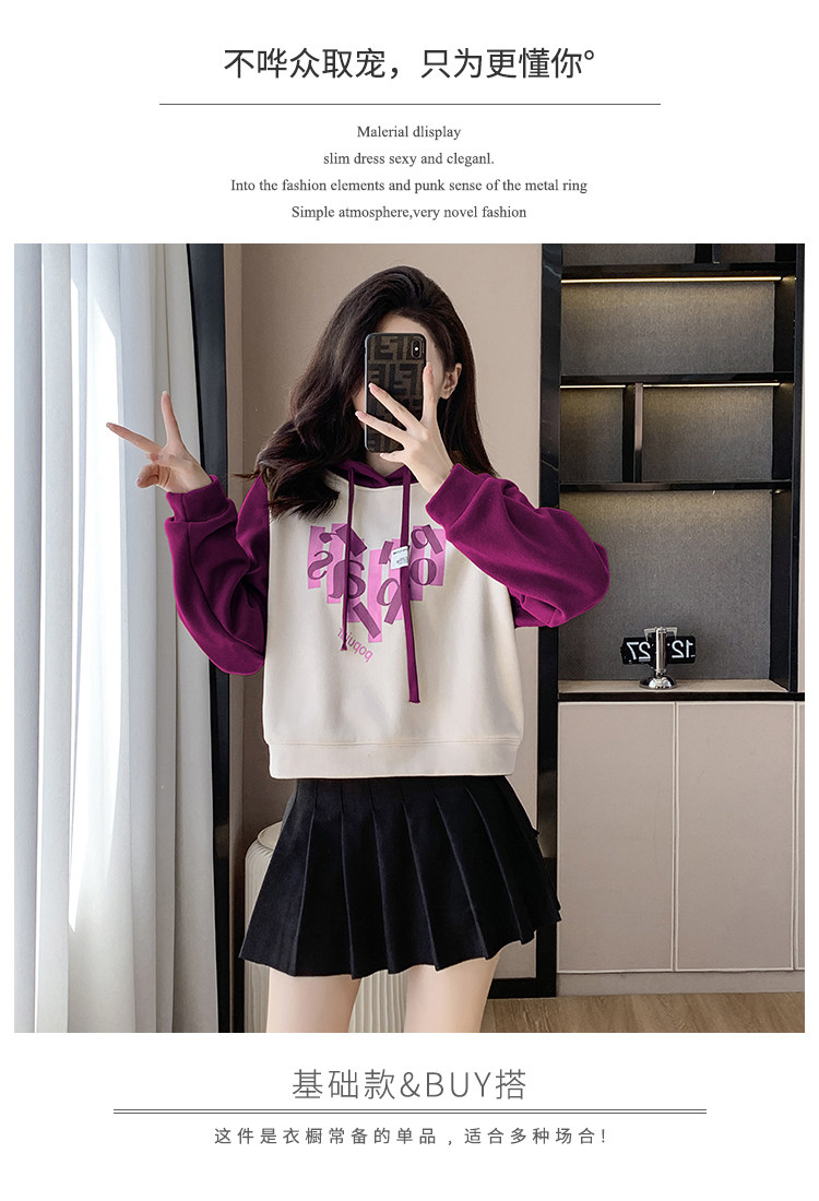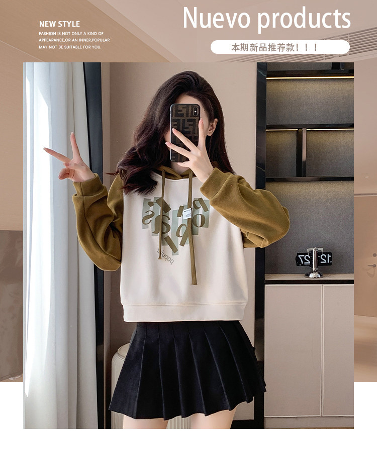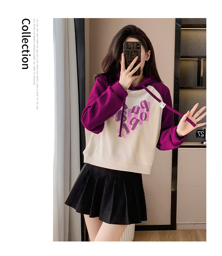 RM25996#插肩袖加绒加厚卫衣女冬季新款复古印花宽松短款百搭连帽上衣