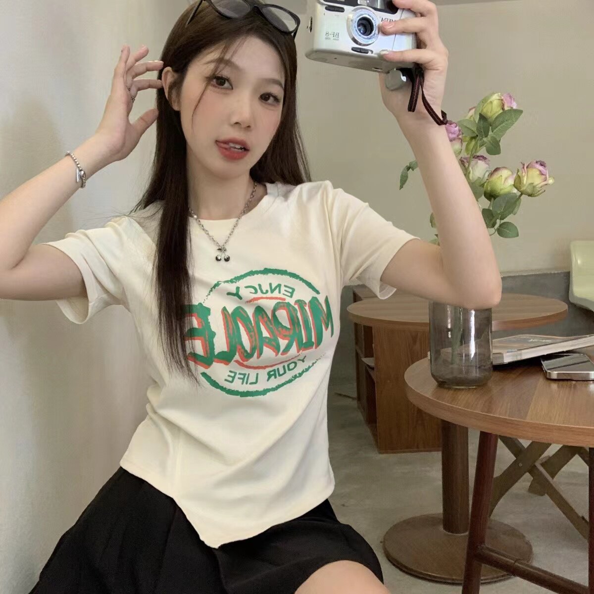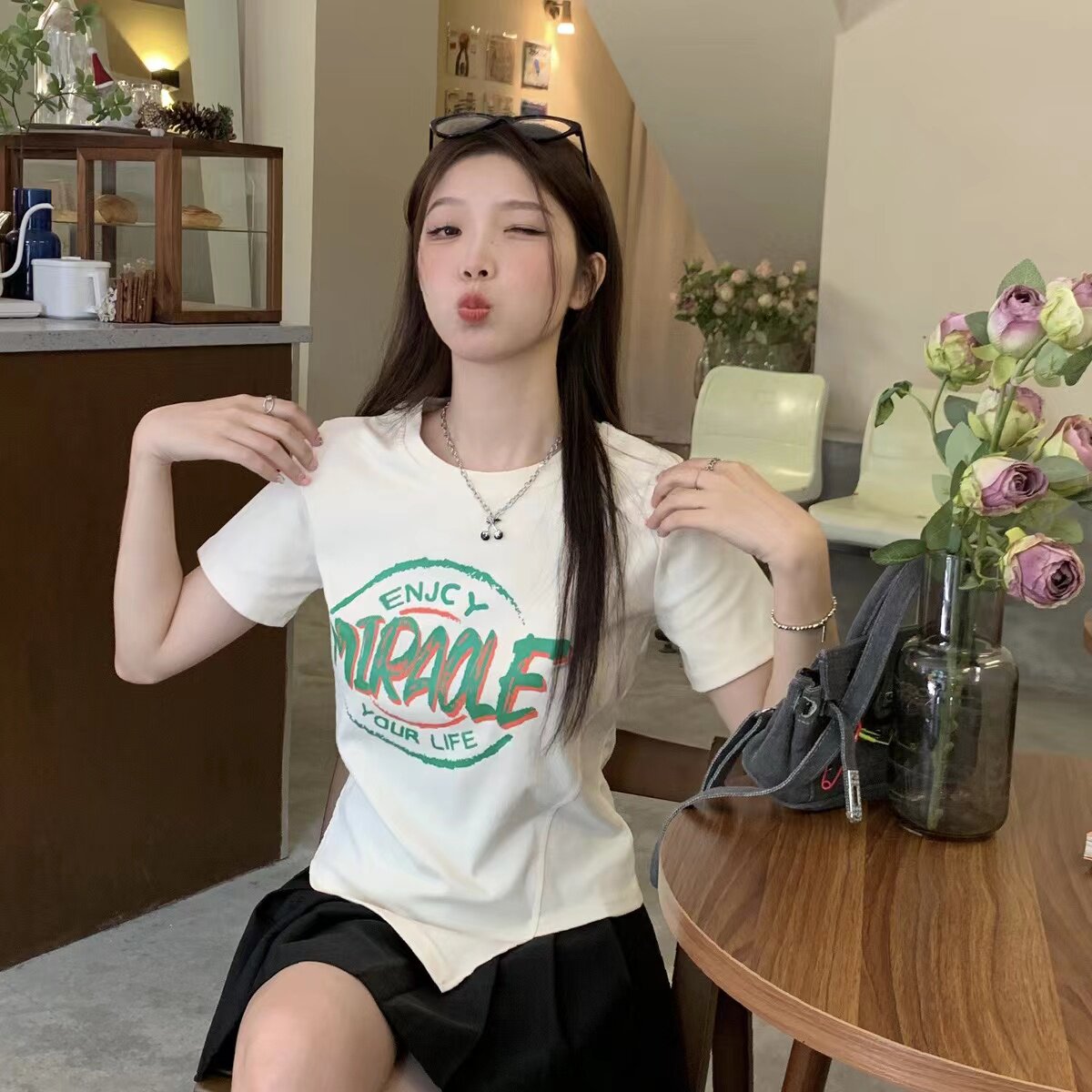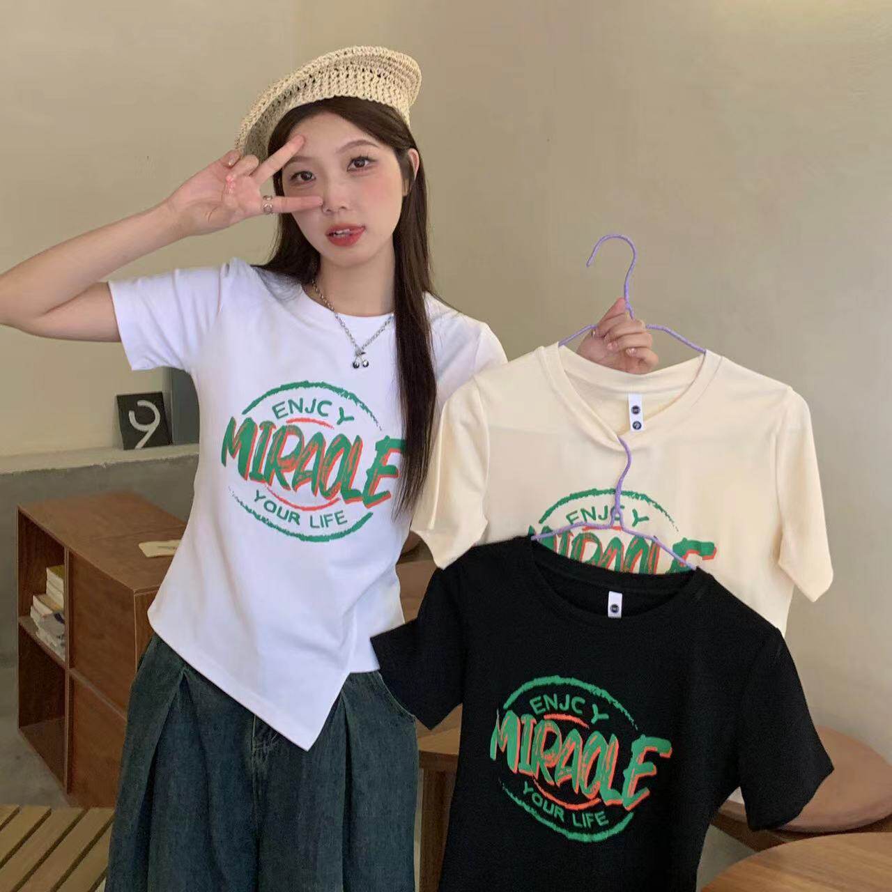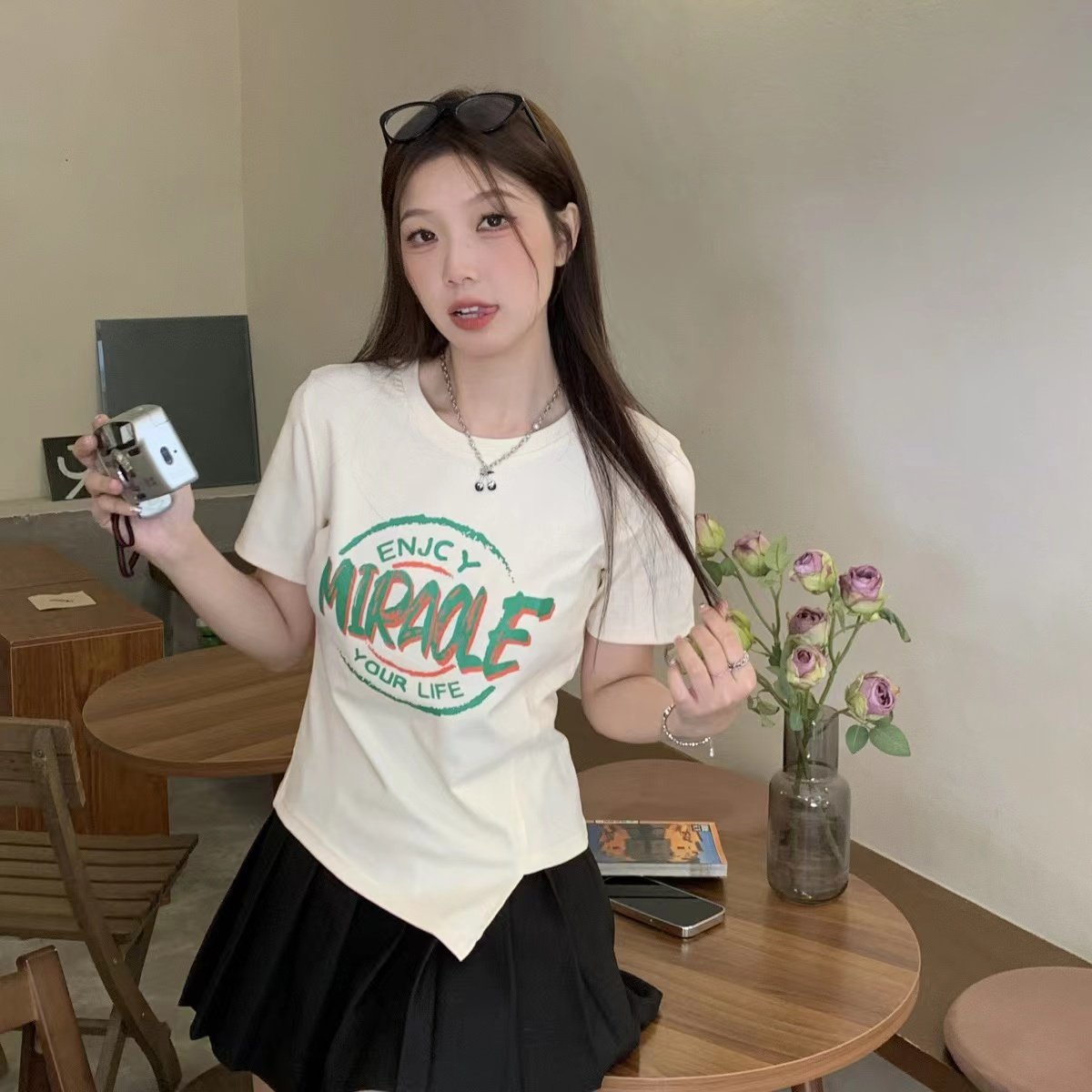 RM25997#大码新款胖MMt恤女夏季不规则设计感印花显瘦上衣