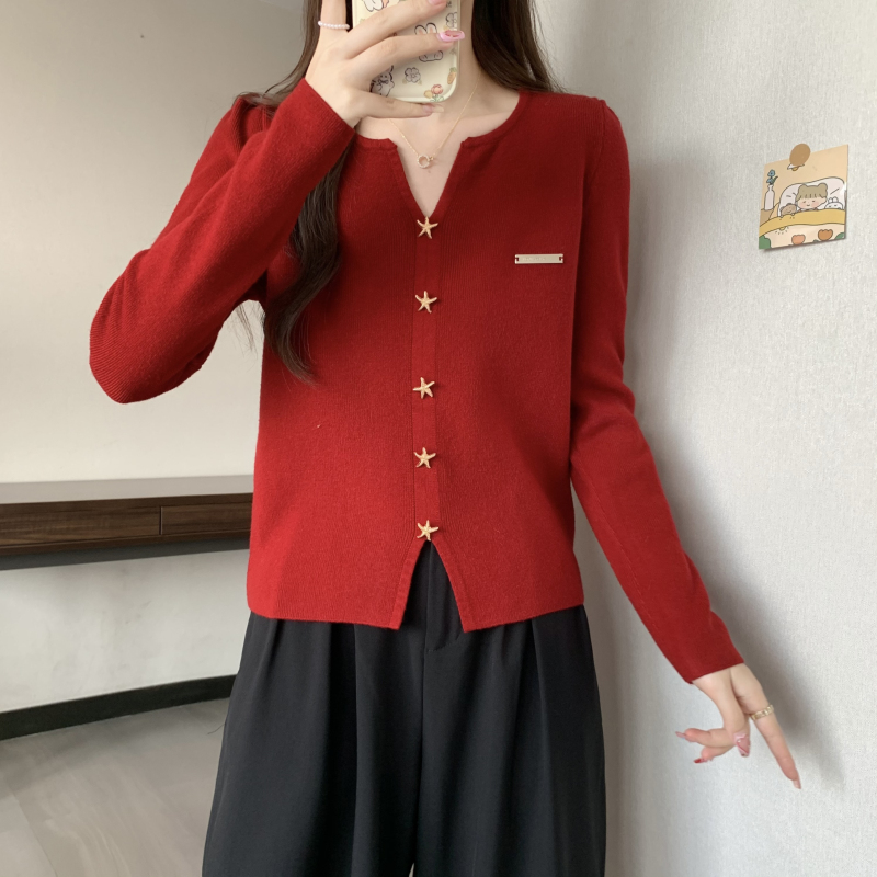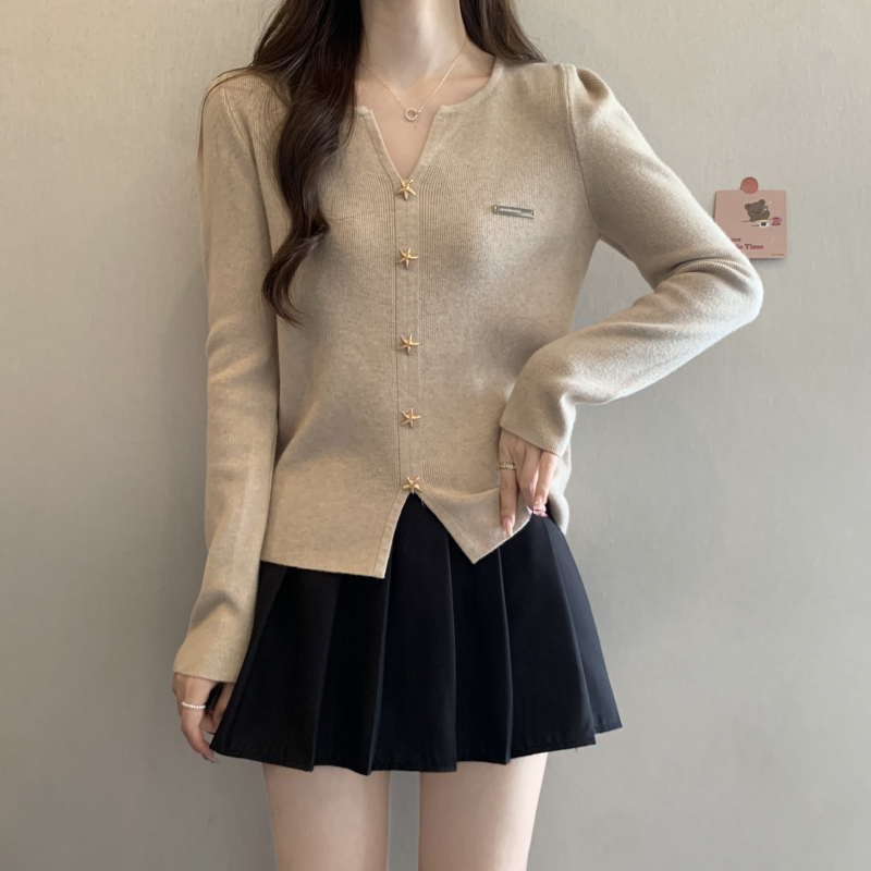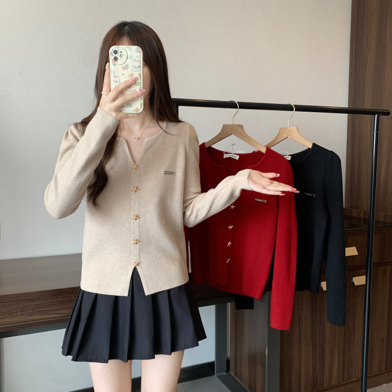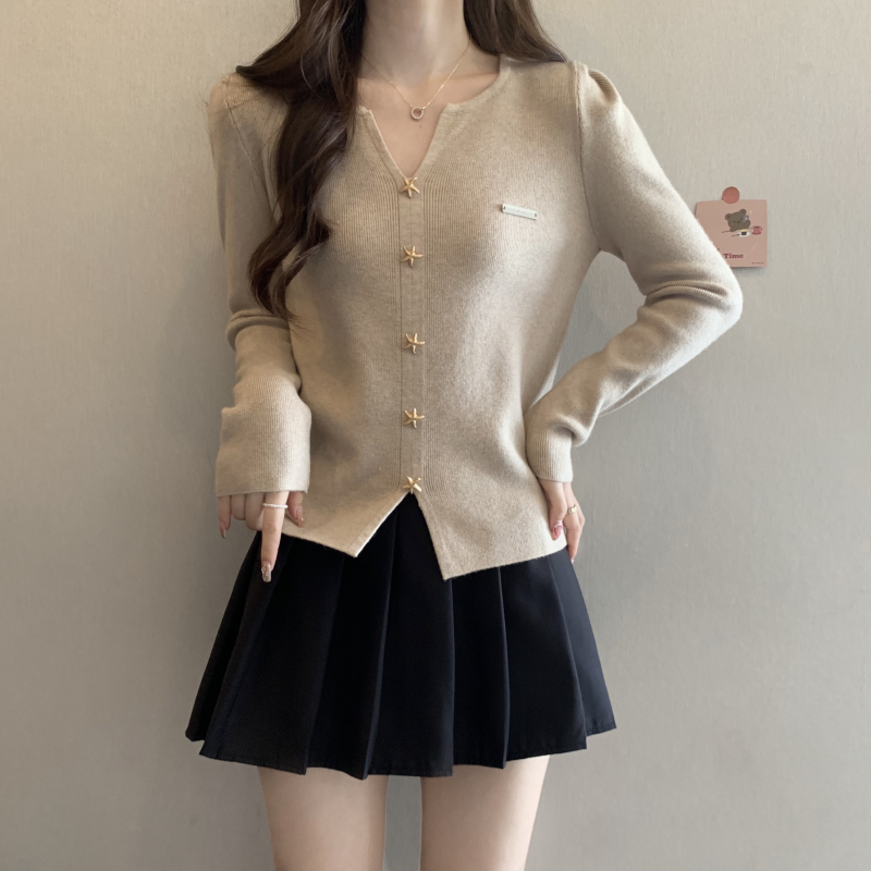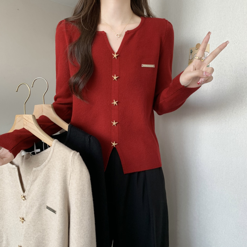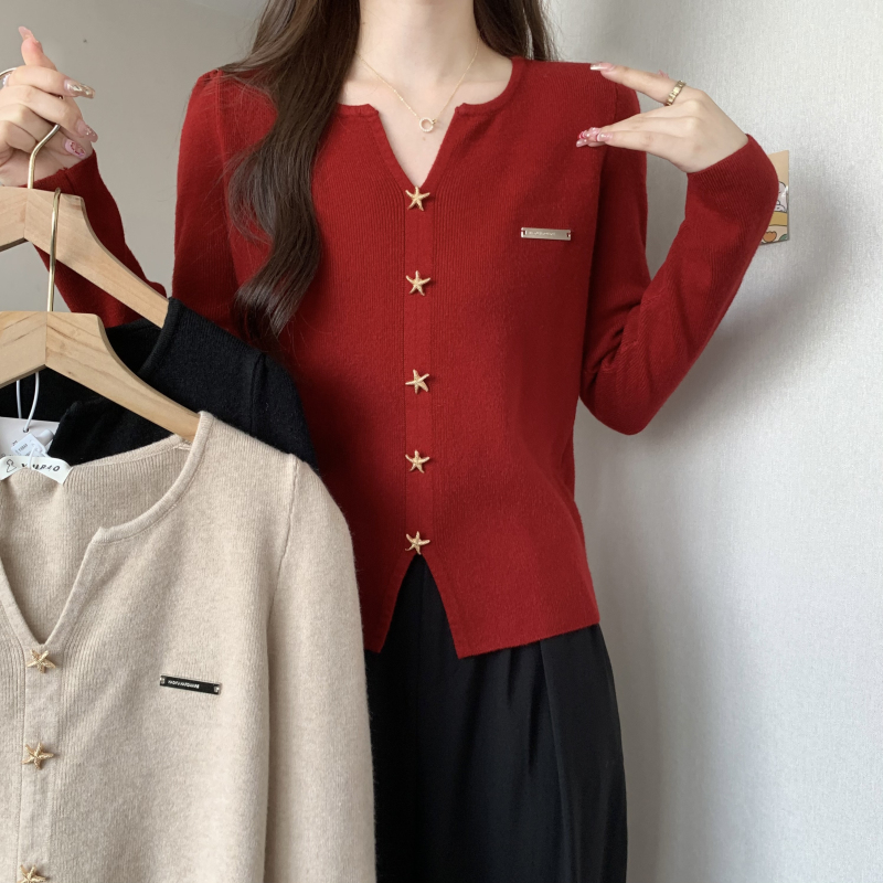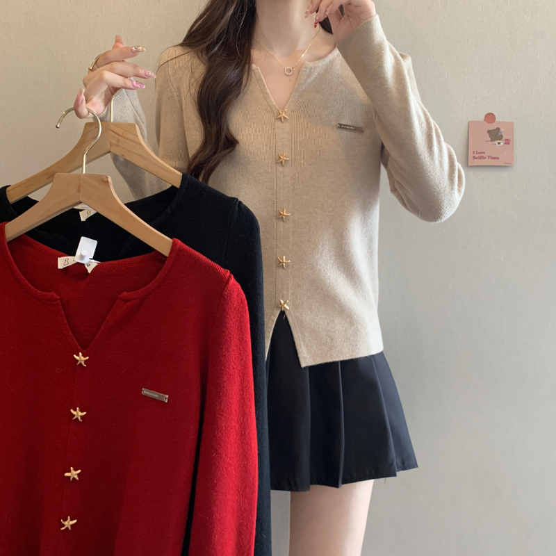 RM25999#大码女装2023秋冬新款针织V领打底衫胖MM显瘦不规则开叉毛衣