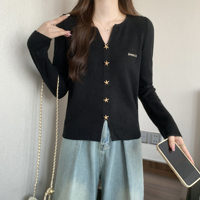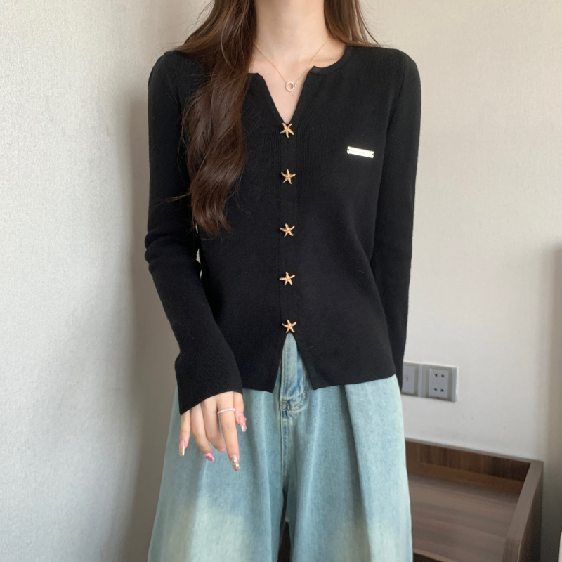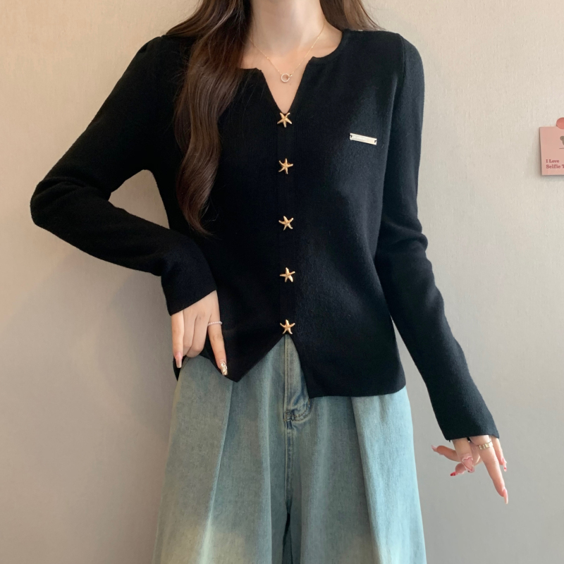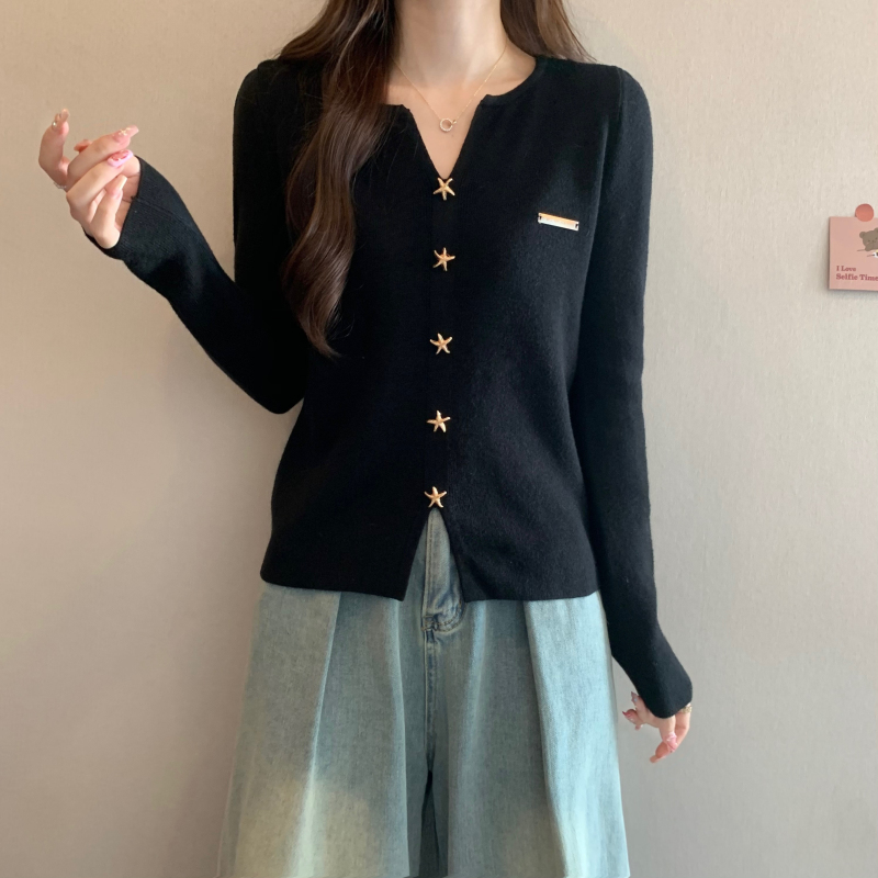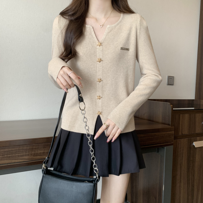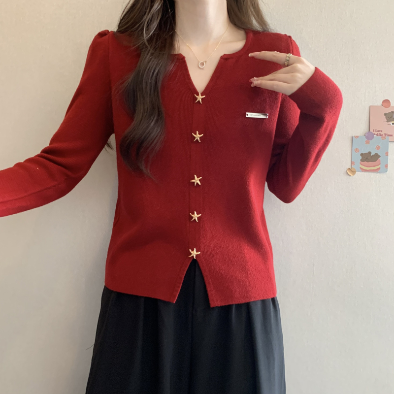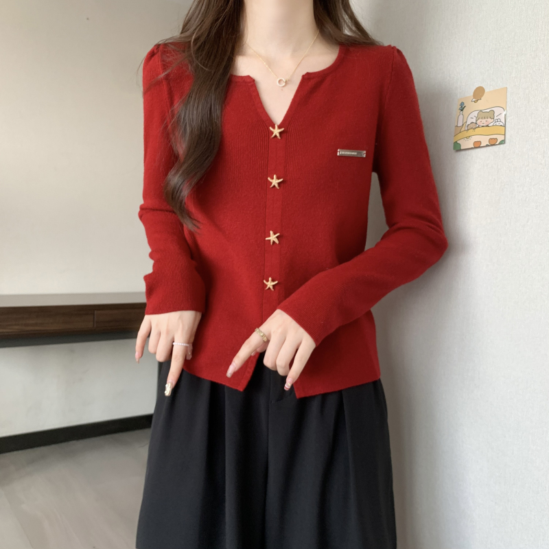RM25999#大码女装2023秋冬新款针织V领打底衫胖MM显瘦不规则开叉毛衣