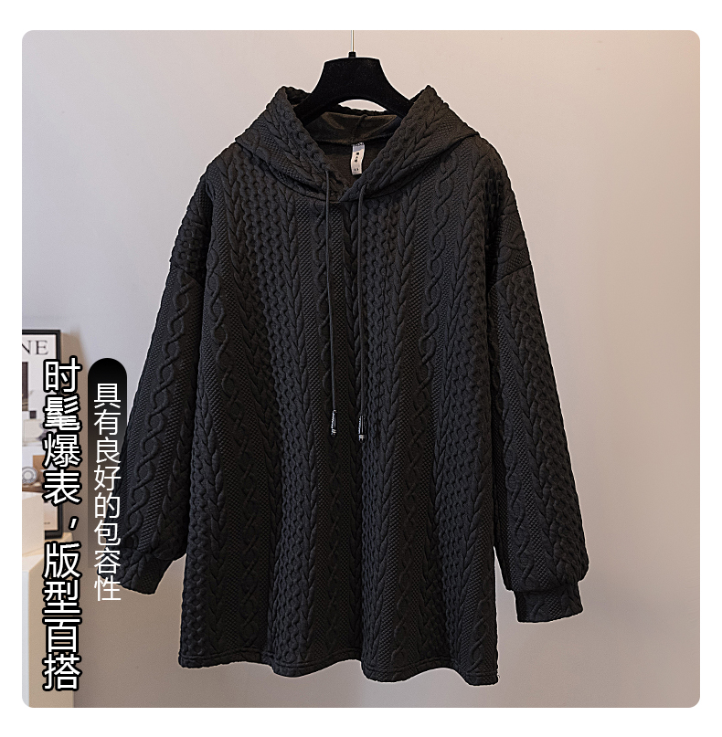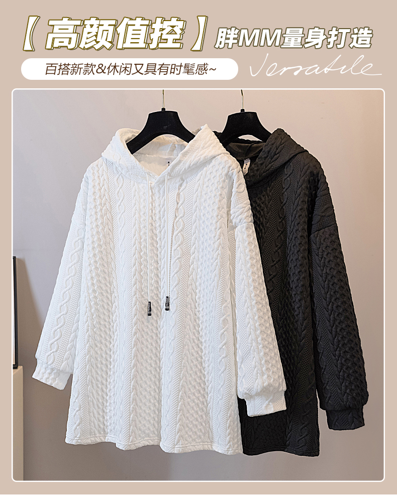 RM26001#大码2023秋冬季长袖连帽卫衣女胖mm宽松休闲减龄超质感T